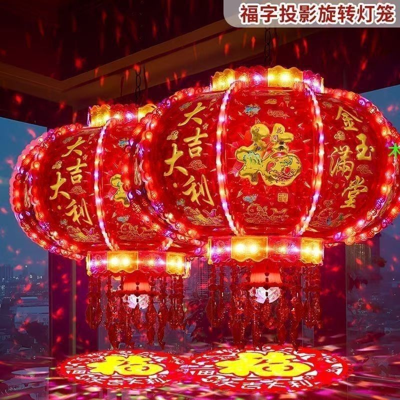 新年发光灯笼旋转走马灯过年LED大门口一对春节2026新款七彩阳台