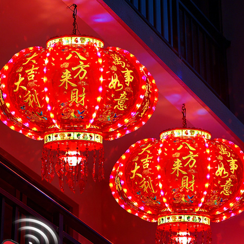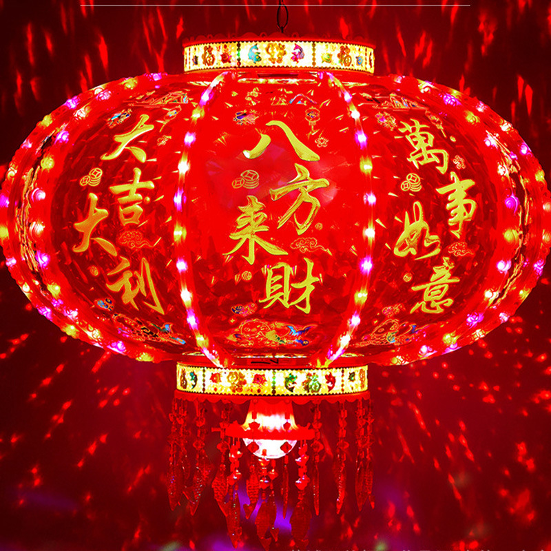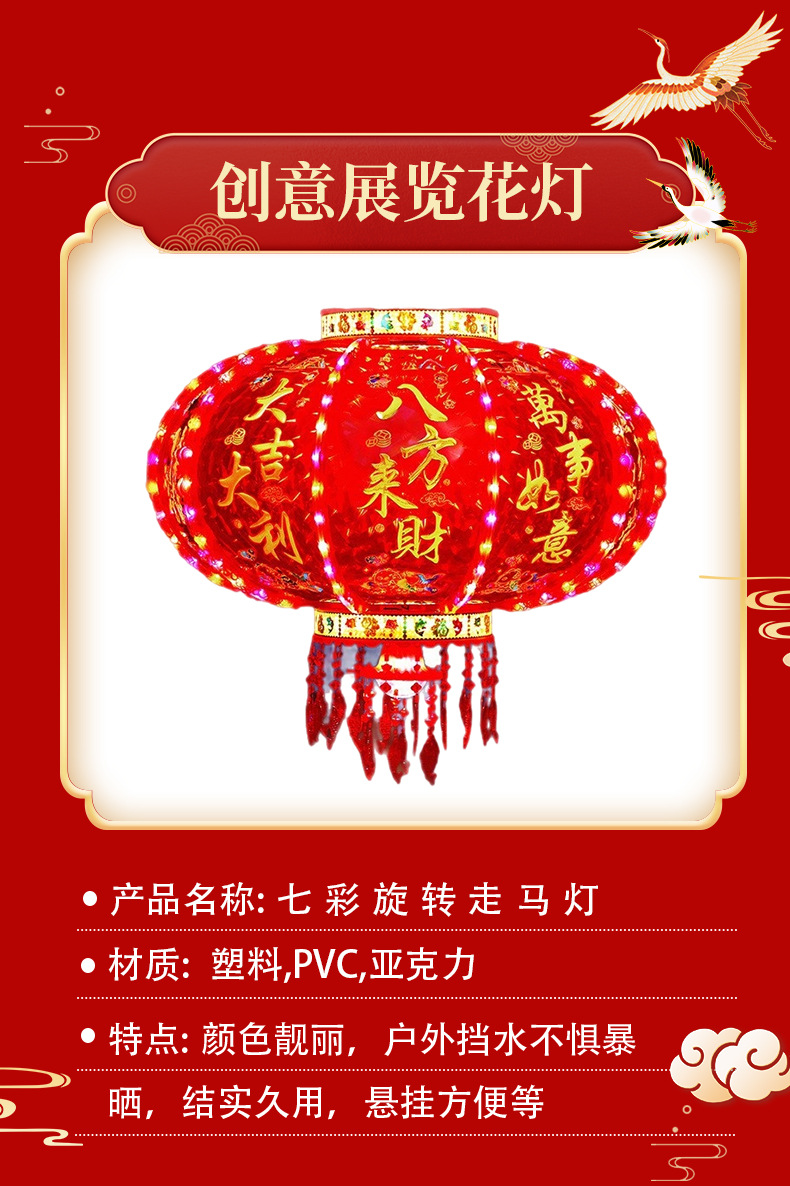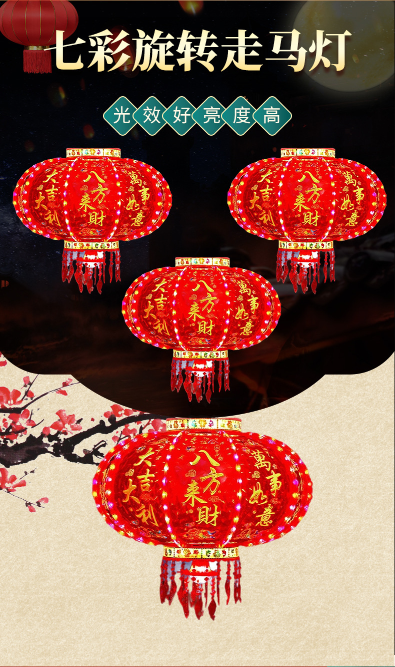 新年LED七彩旋转走马灯笼/春节乔迁装饰阳台门口大红中式吊灯挂饰