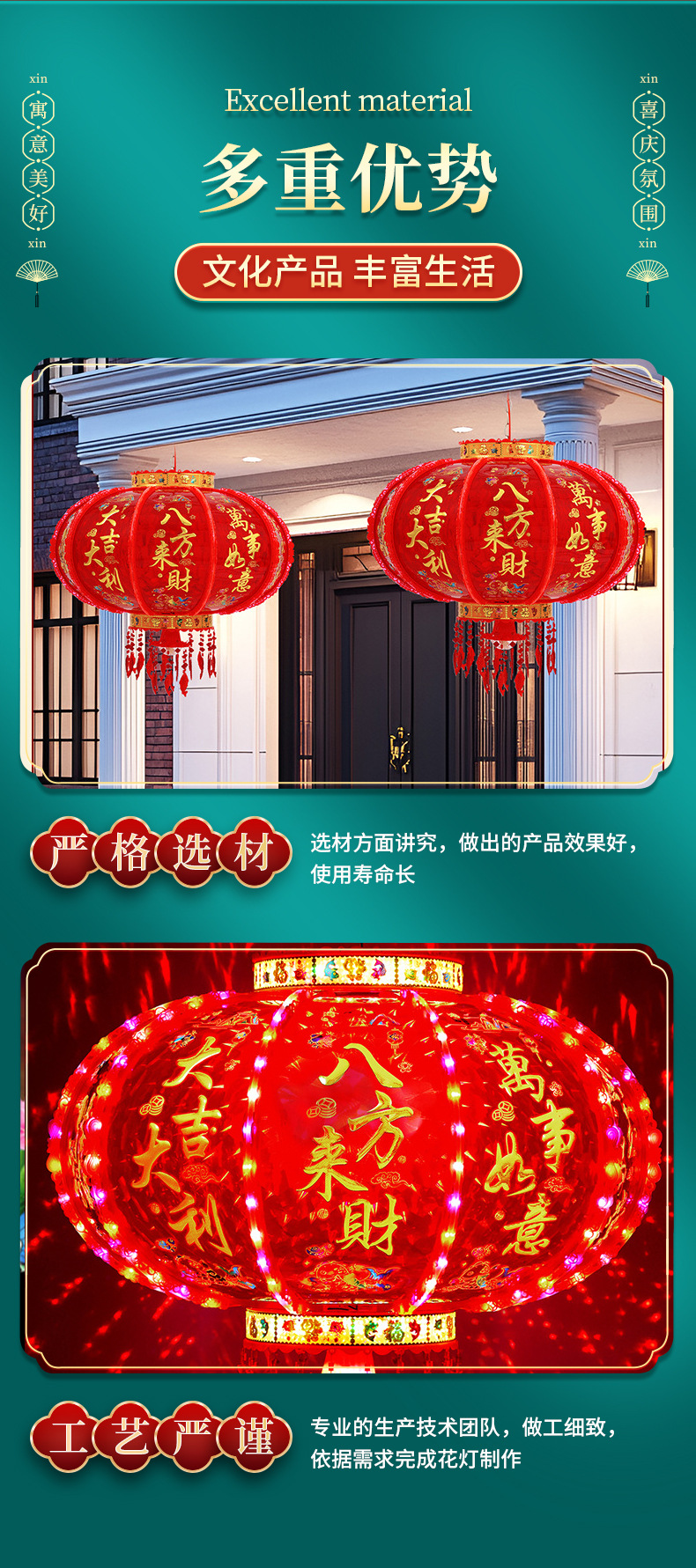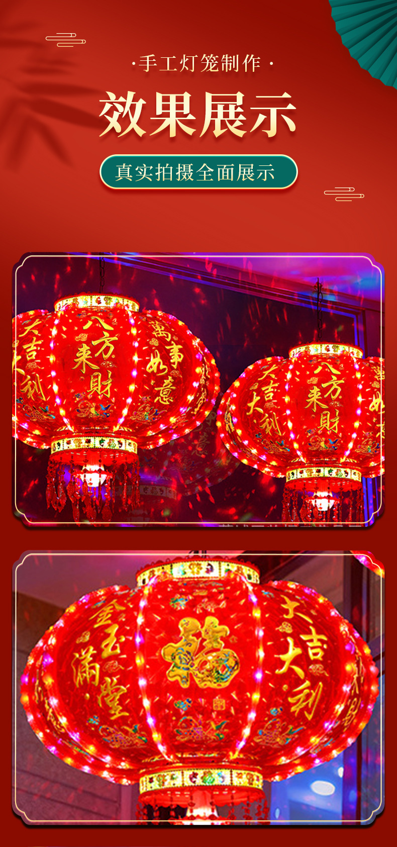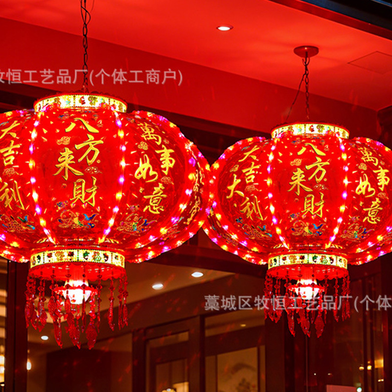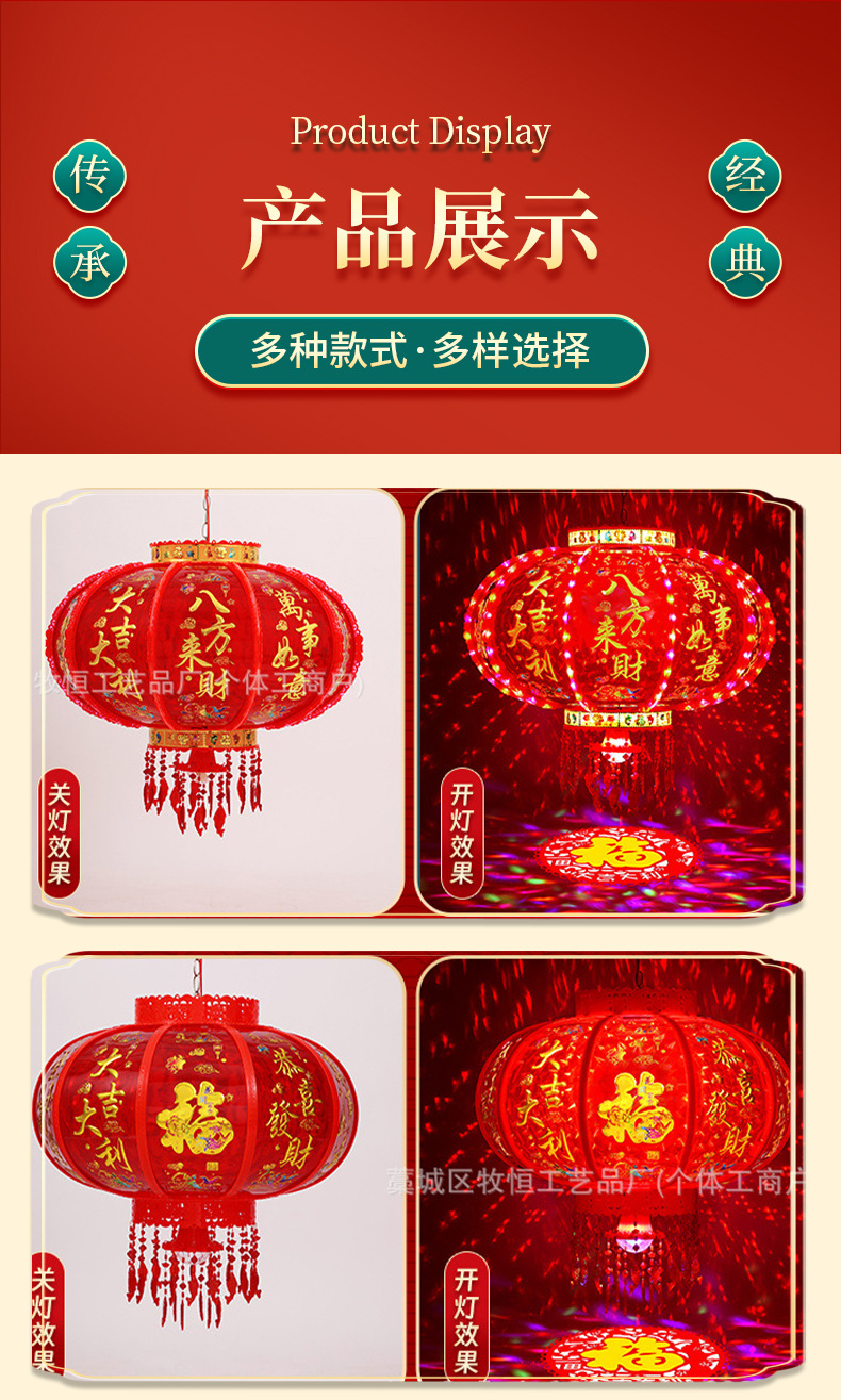 新年LED七彩旋转走马灯笼/春节乔迁装饰阳台门口大红中式吊灯挂饰