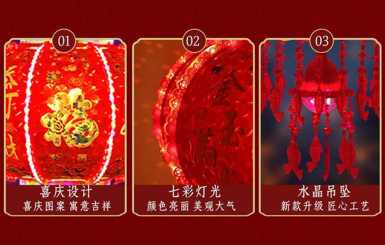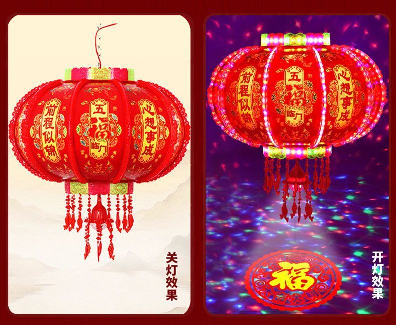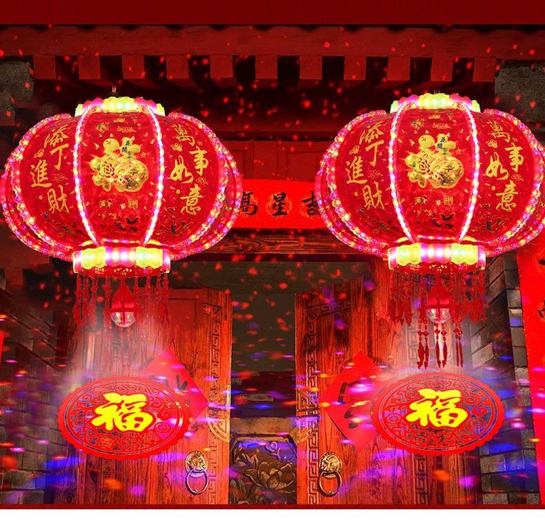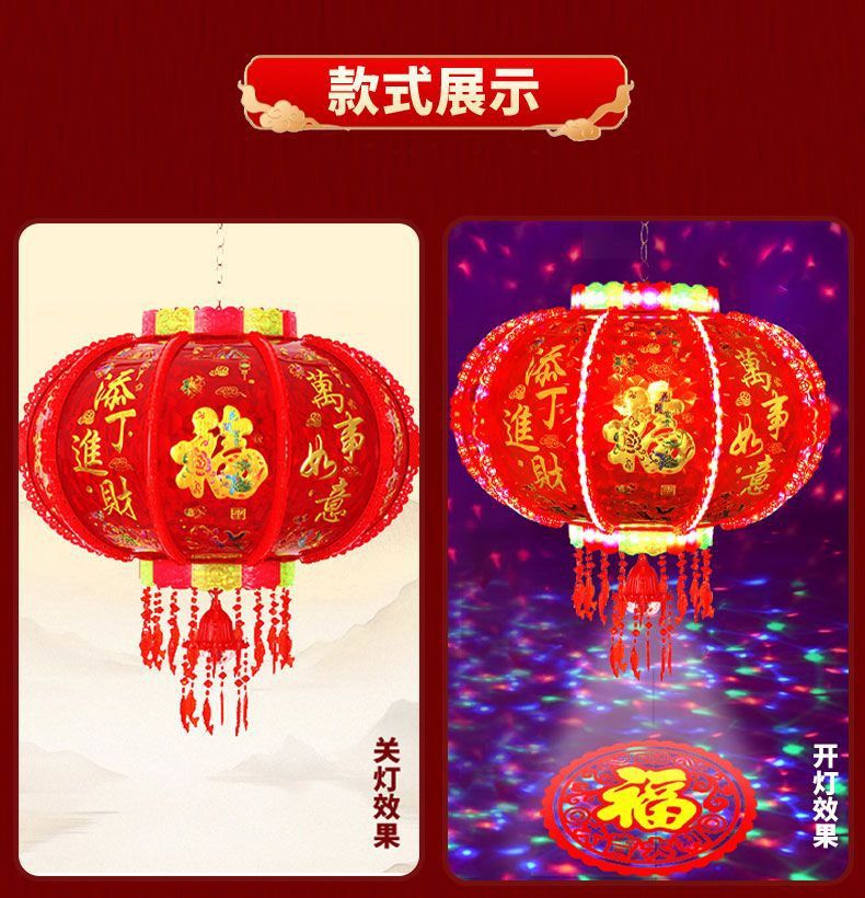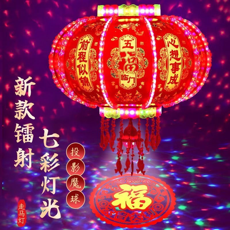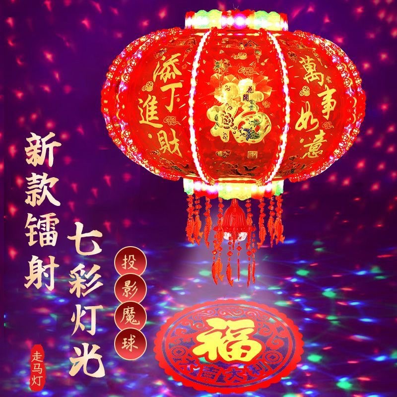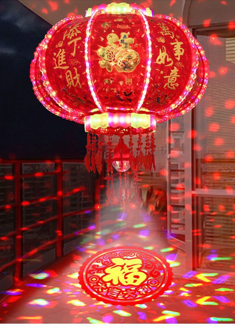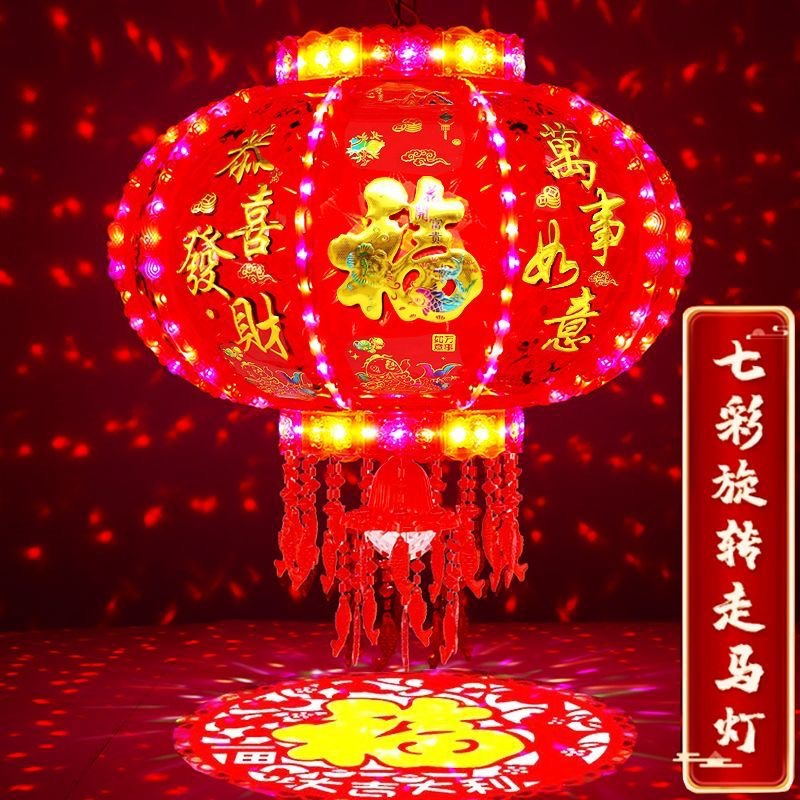 2026新款旋转灯笼新年led七彩福字投影走马灯阳台春节大门口灯笼