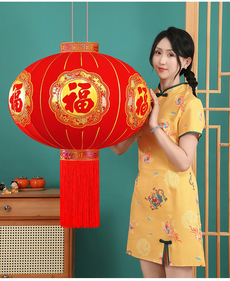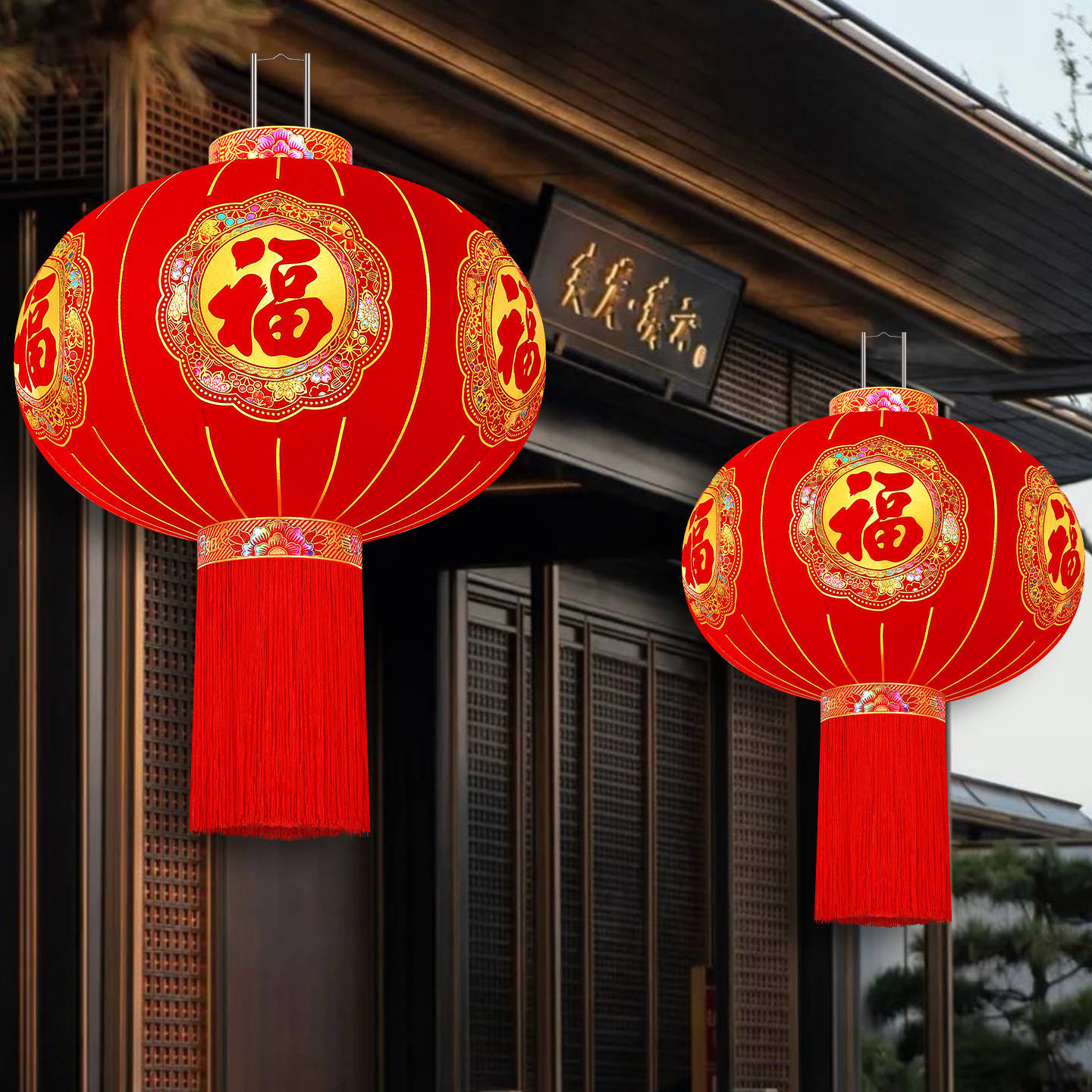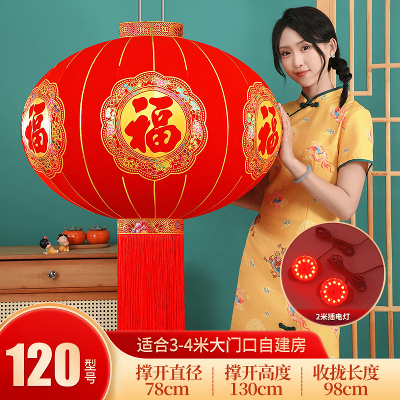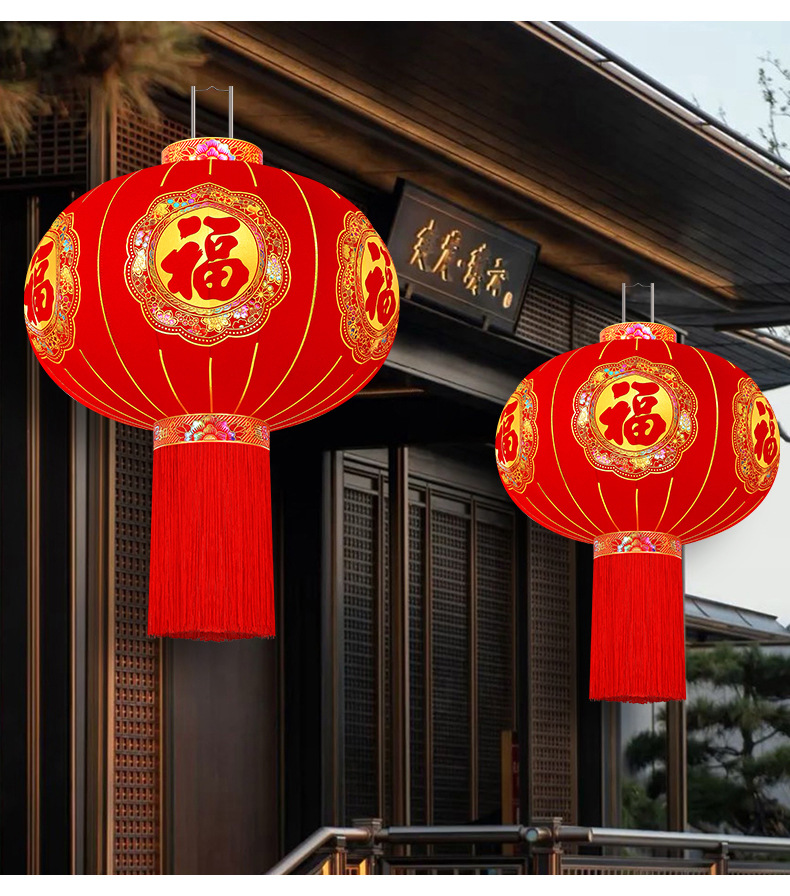 2026新款福字灯笼装饰大红户外春节过年植绒阳台大门一对新年挂饰