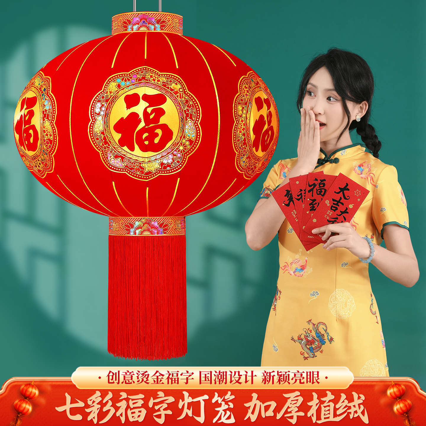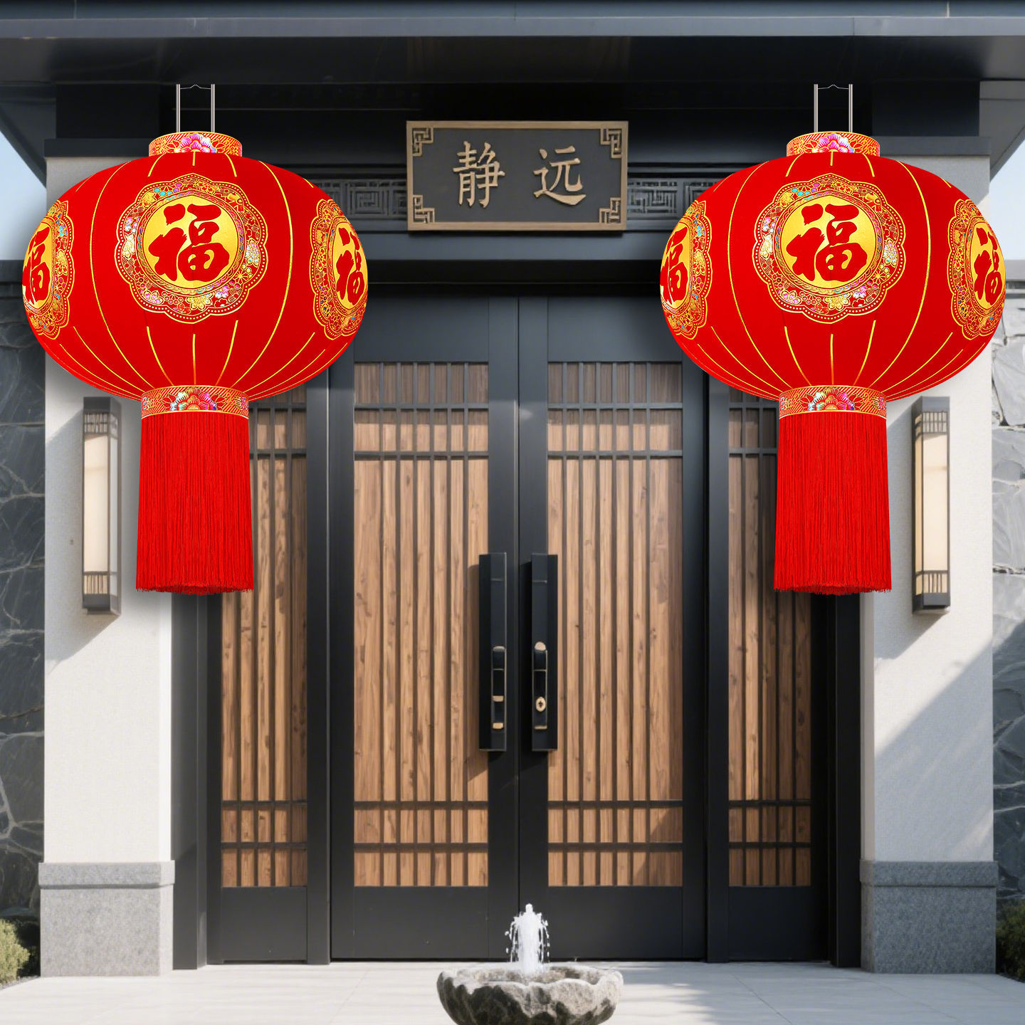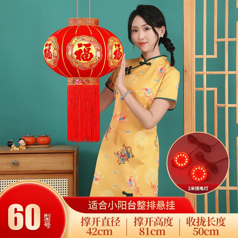 2026新款福字灯笼装饰大红户外春节过年植绒阳台大门一对新年挂饰