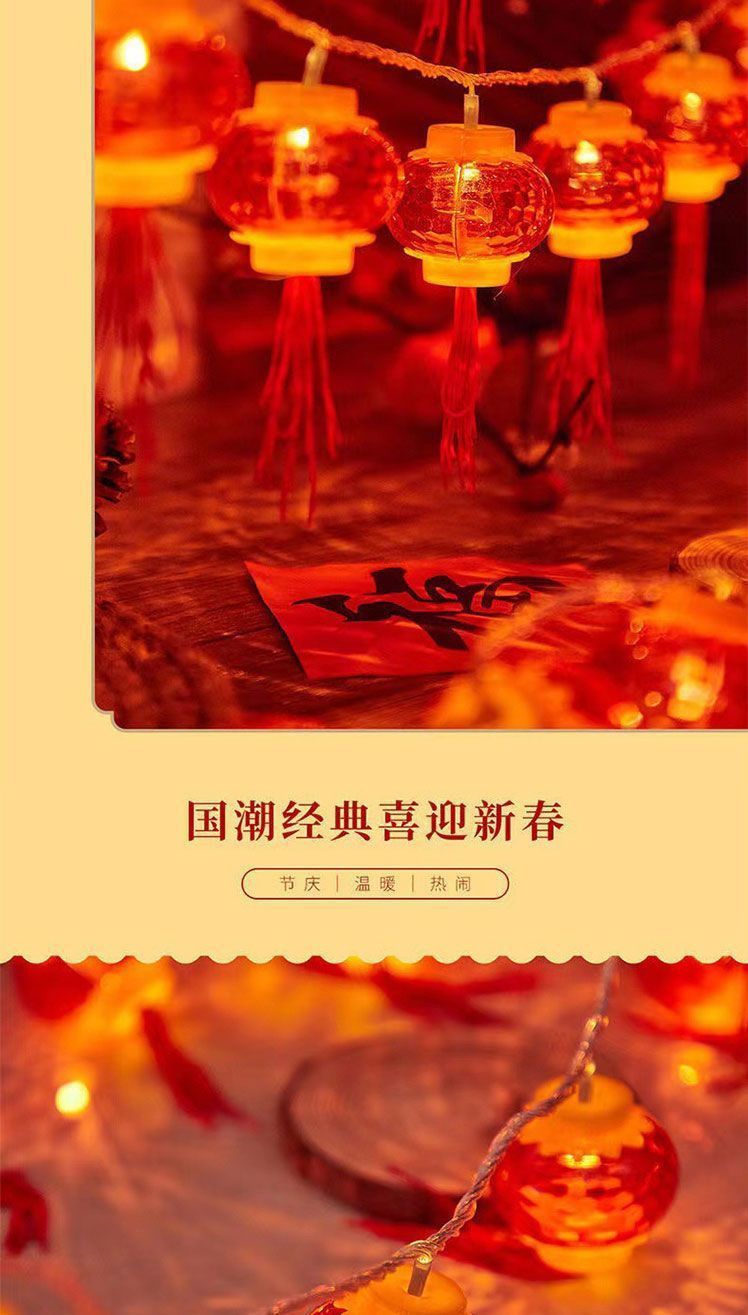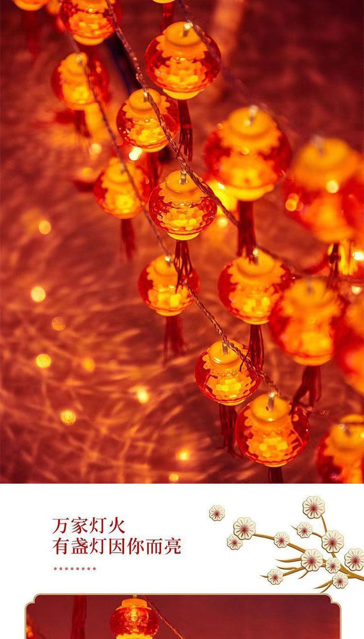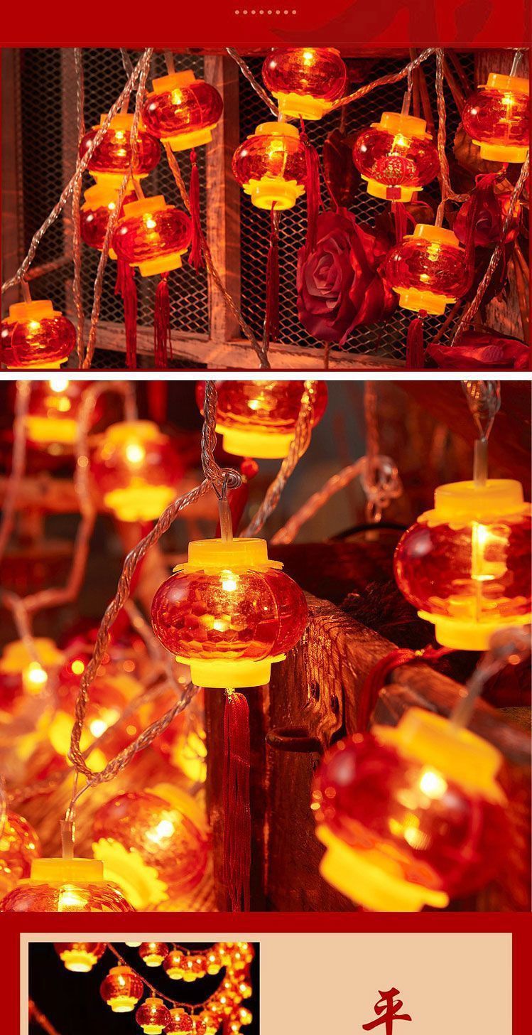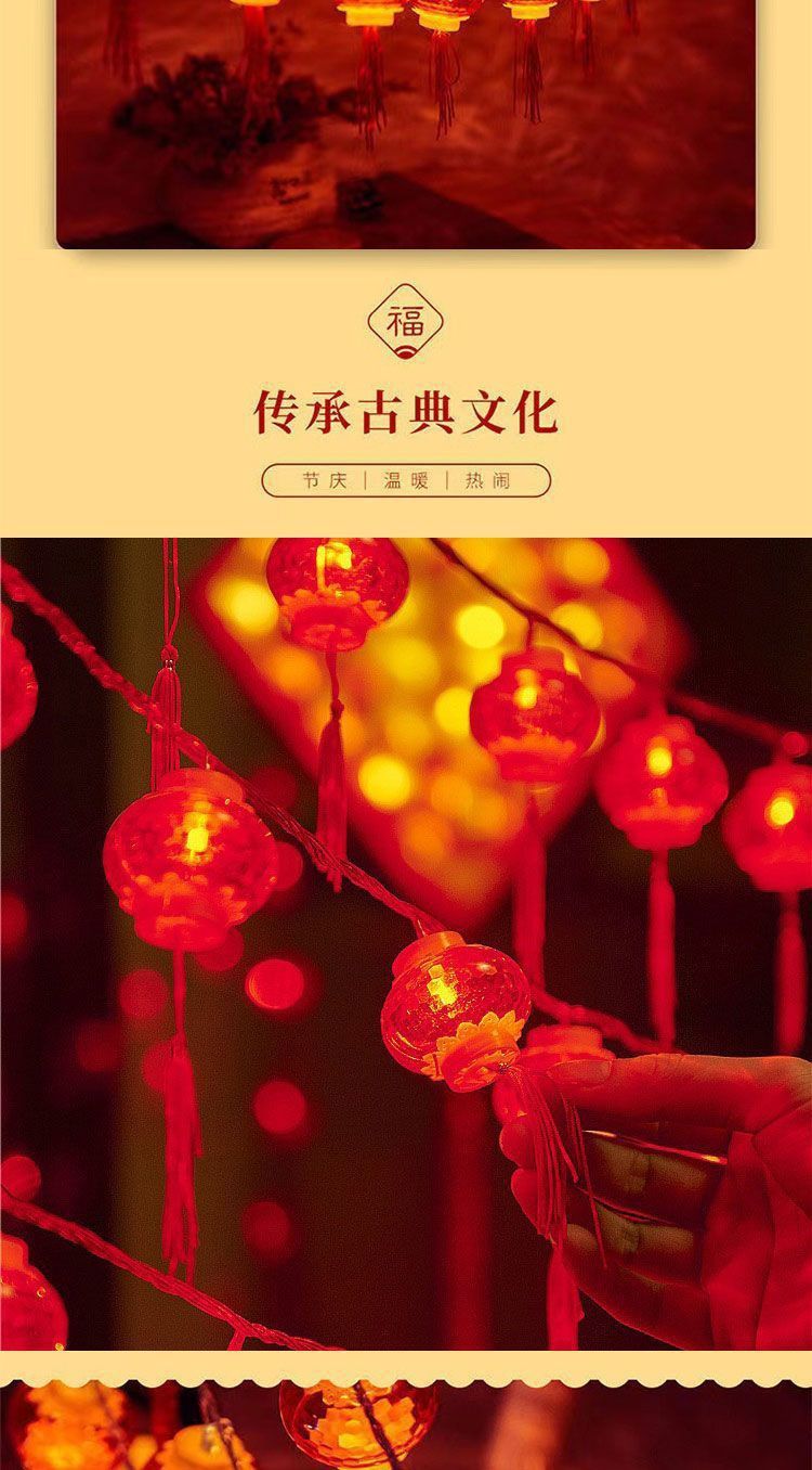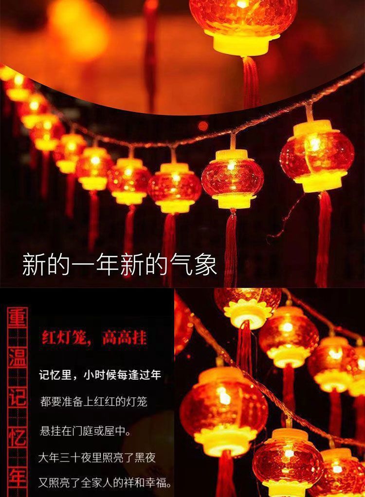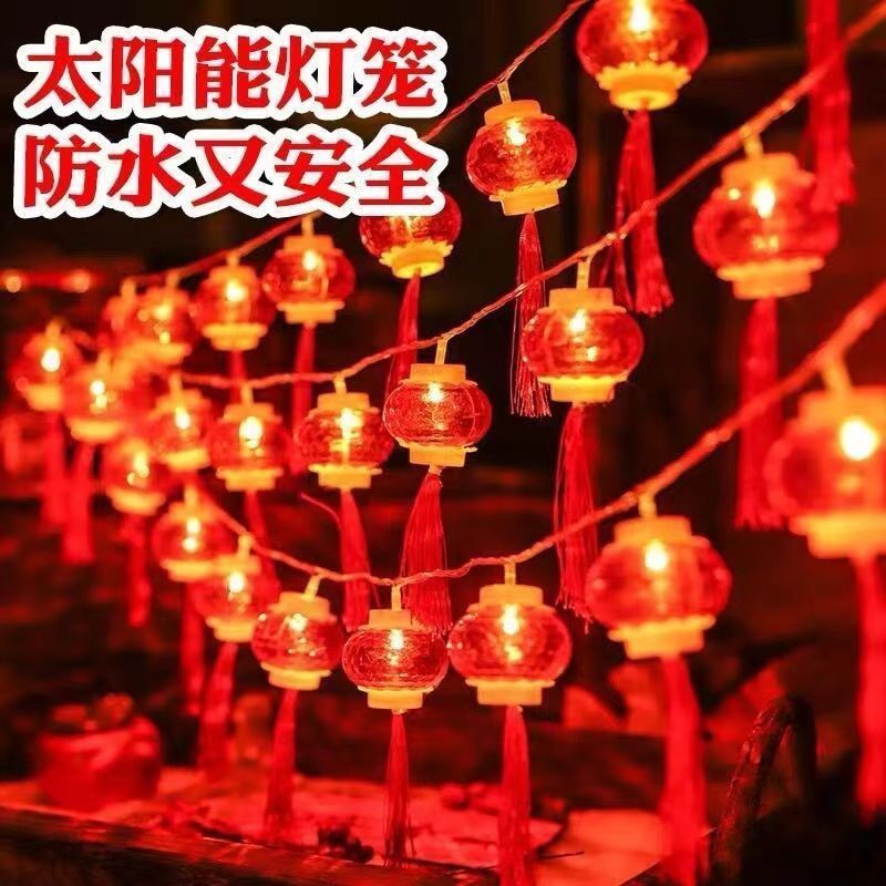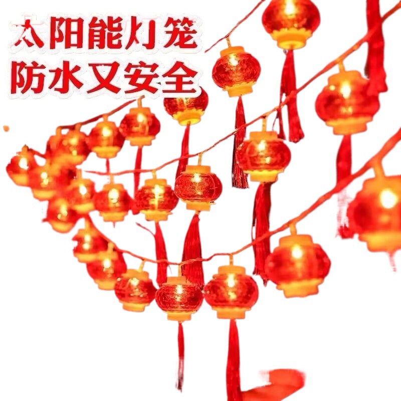 新年小灯笼太阳能充电彩灯红灯笼福字装饰灯户外防水灯串户外庭院