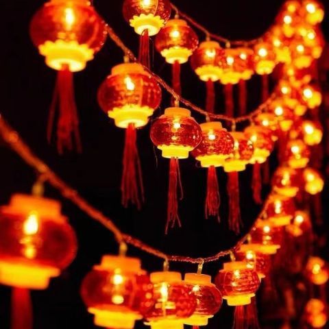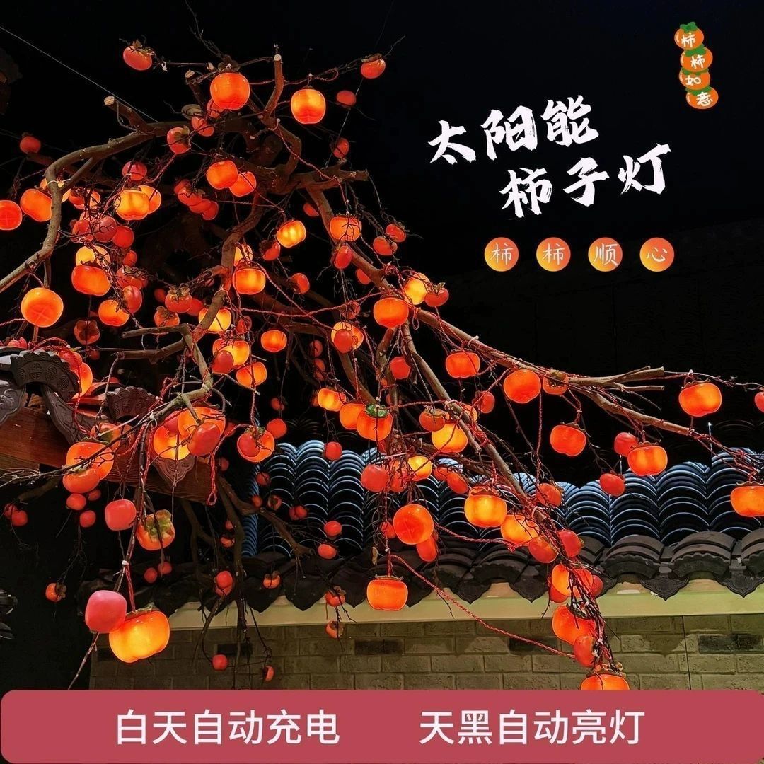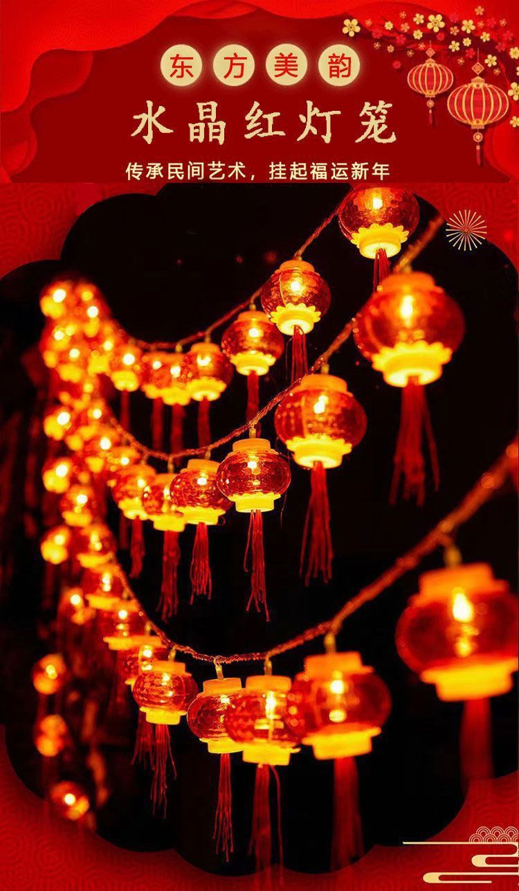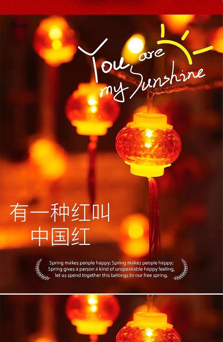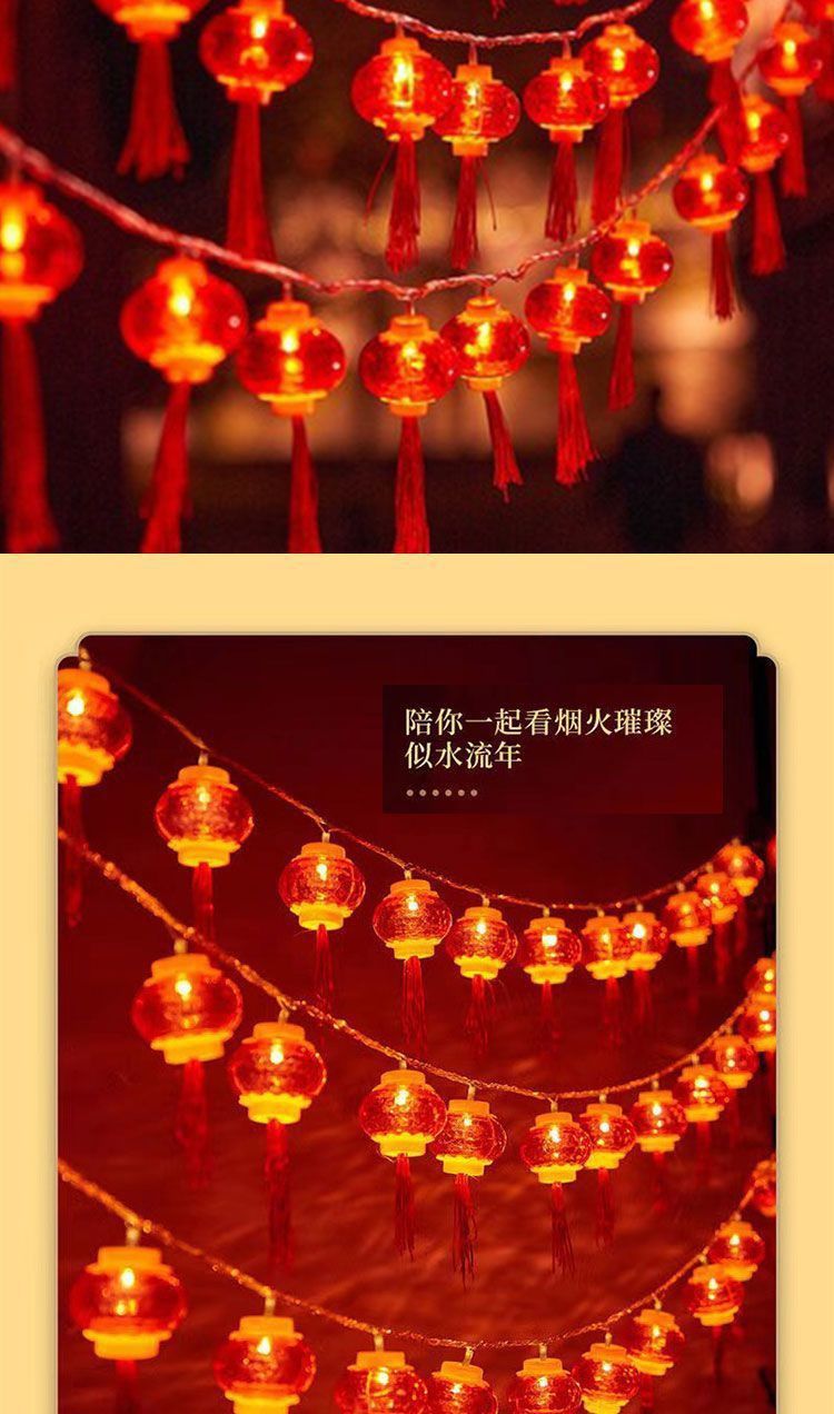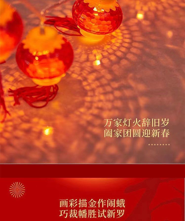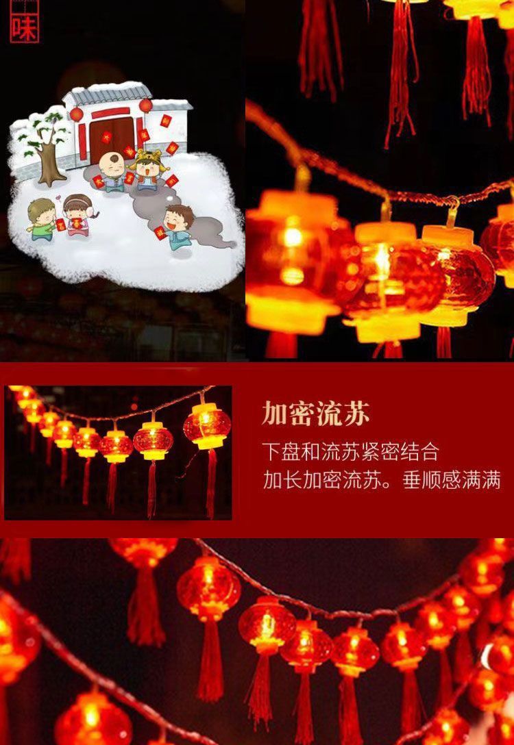 新年小灯笼太阳能充电彩灯红灯笼福字装饰灯户外防水灯串户外庭院