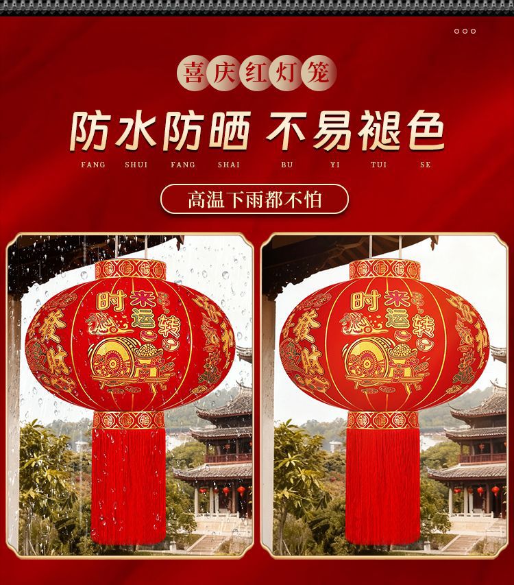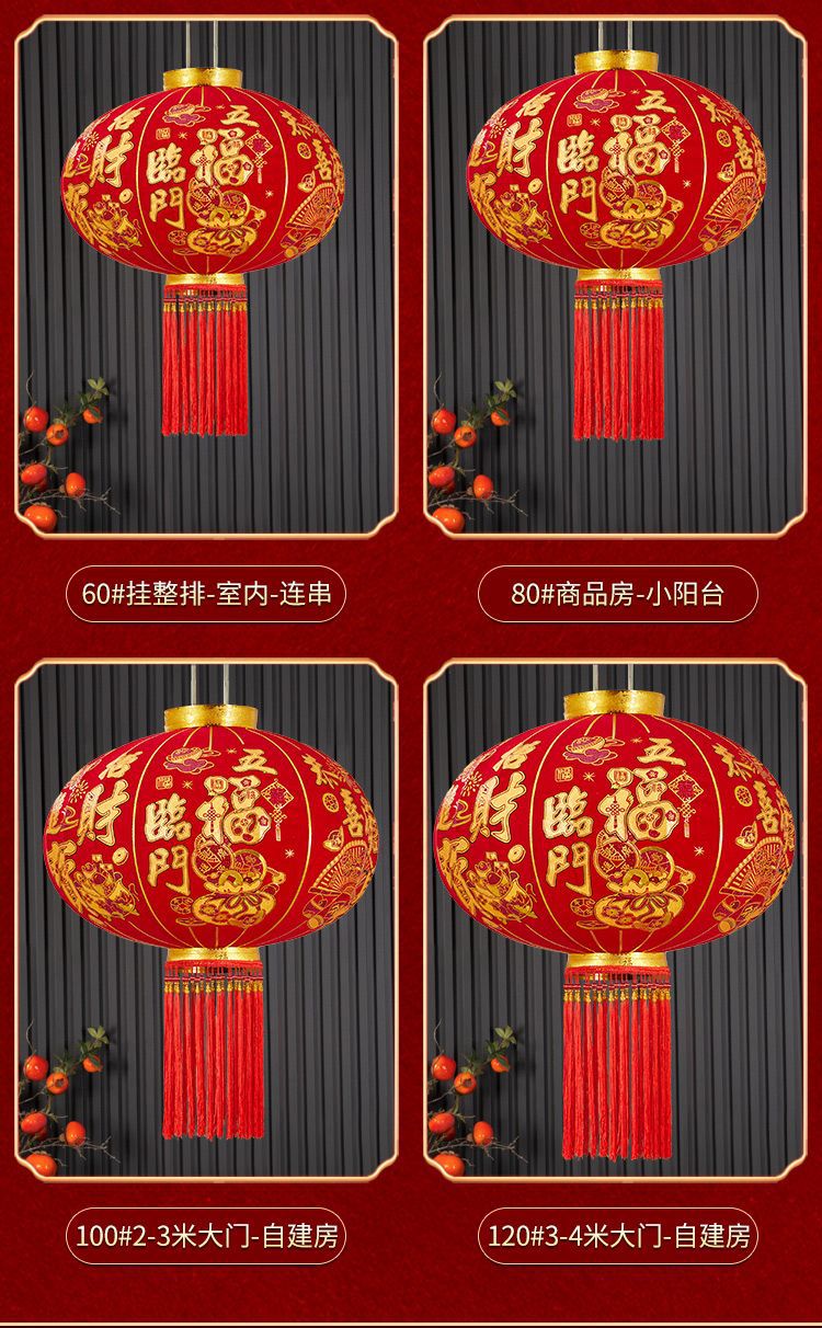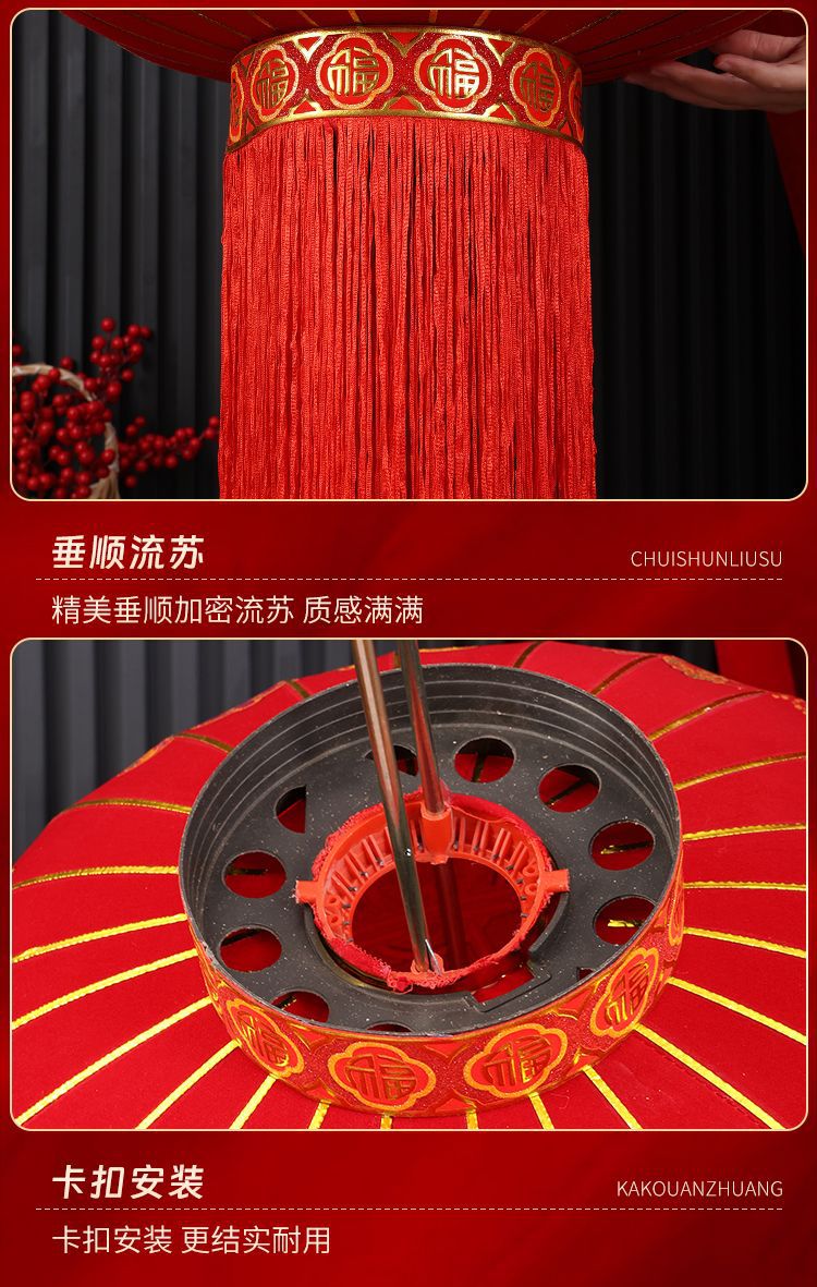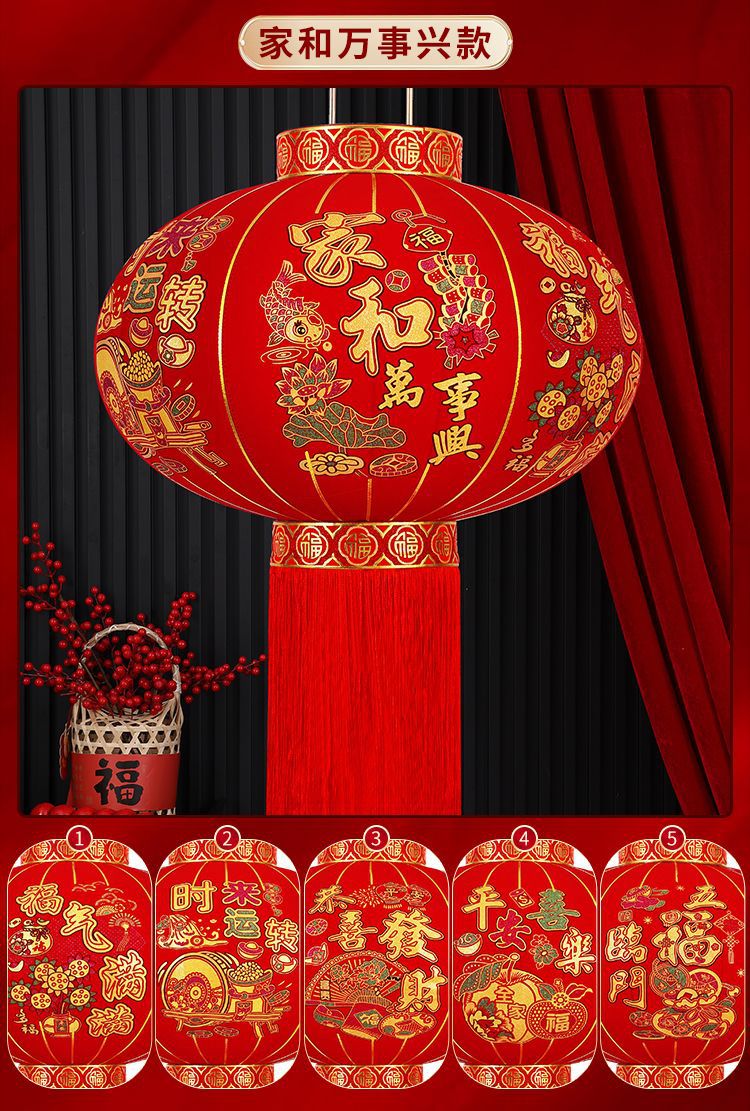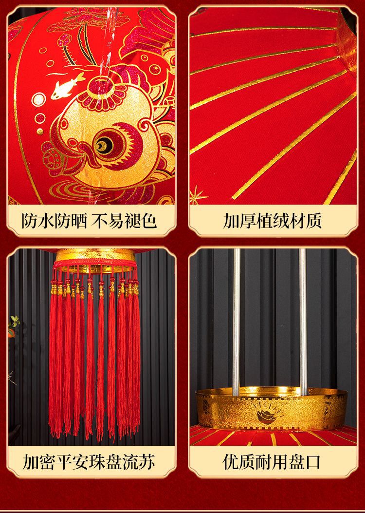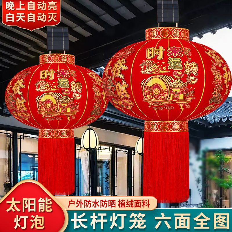 新款长杆大红灯笼春节户外新年门口庭院阳台装饰六面全图福字灯笼
