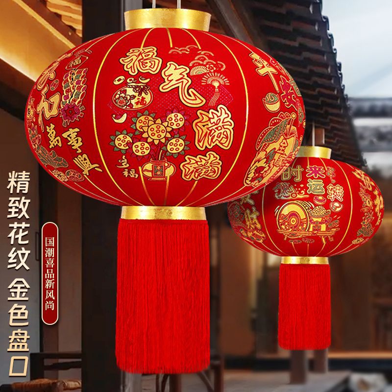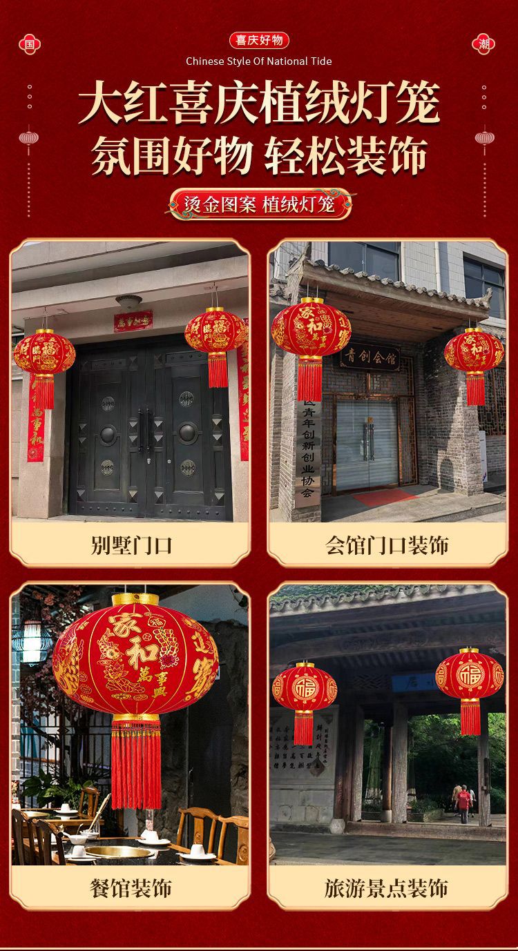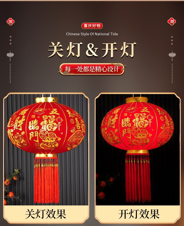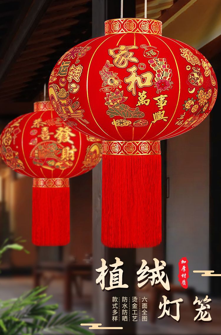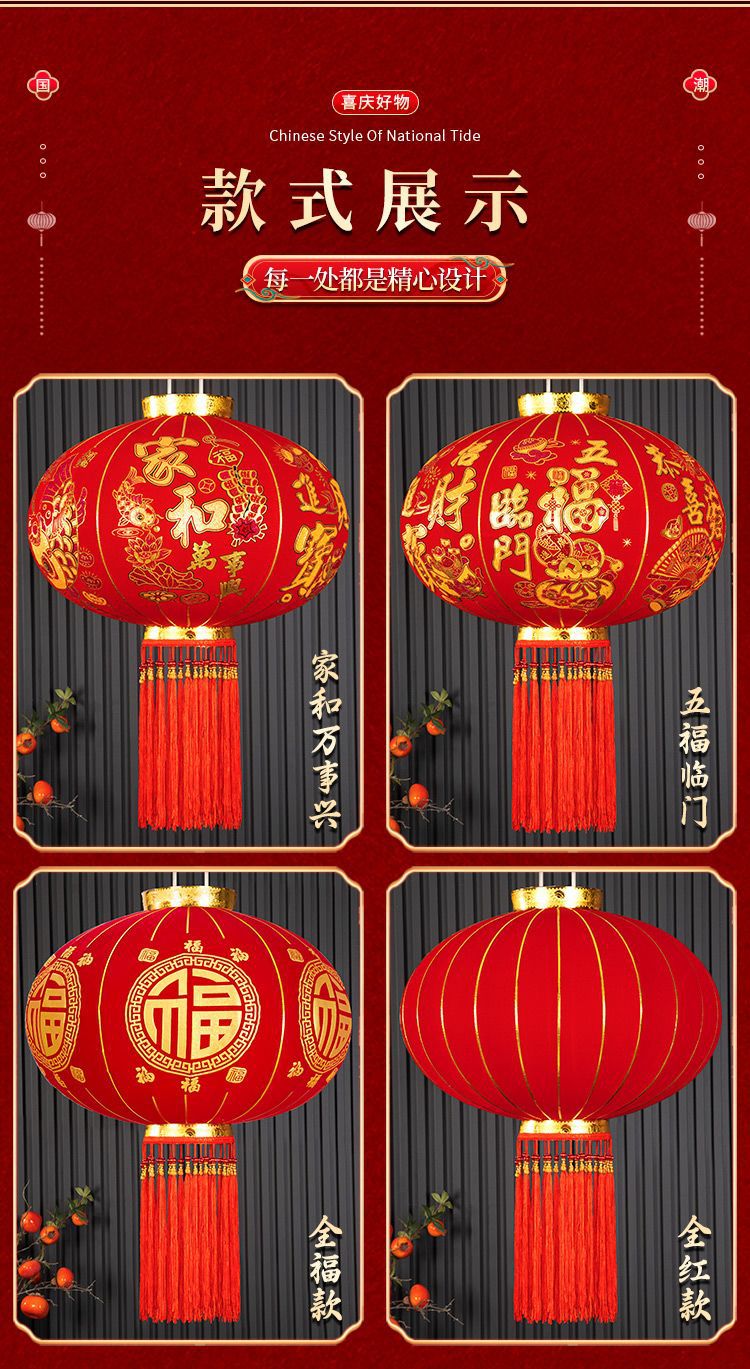 新款长杆大红灯笼春节户外新年门口庭院阳台装饰六面全图福字灯笼