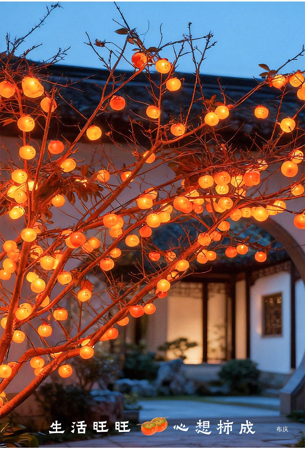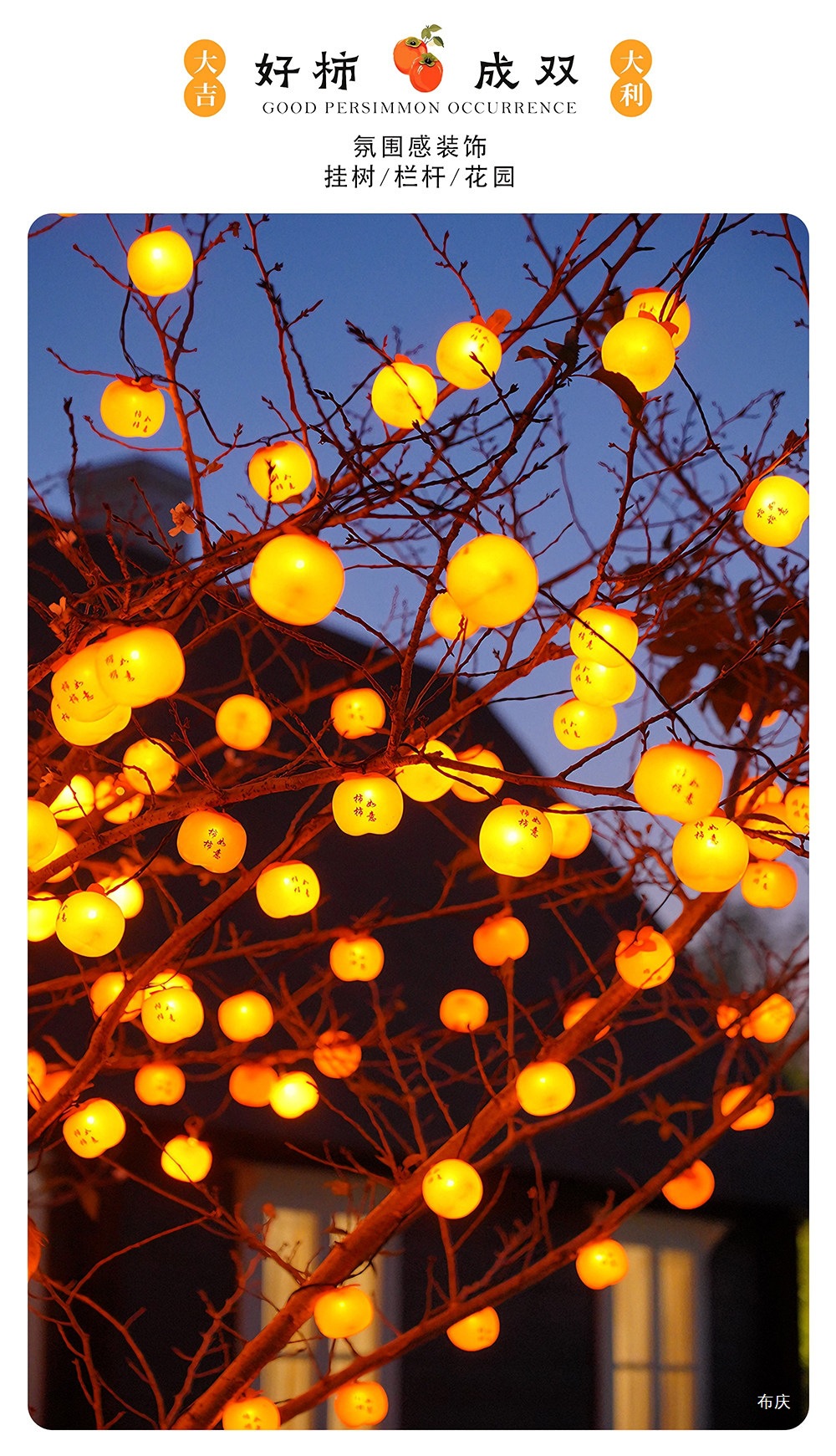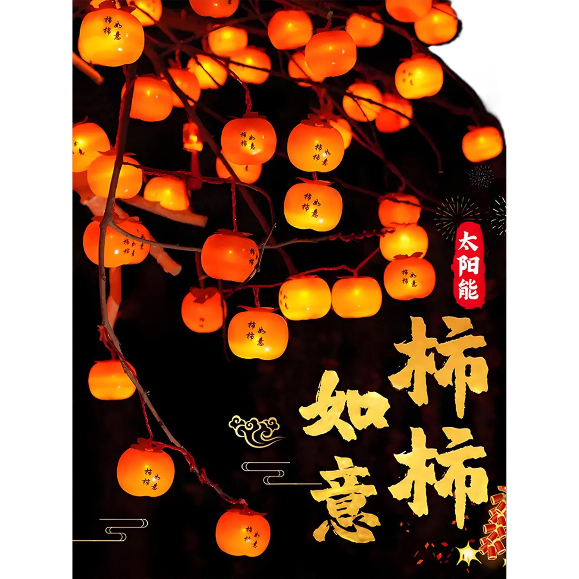 太阳能灯串户外树上柿子灯笼挂饰农村庭院春节新年装饰彩灯氛围灯