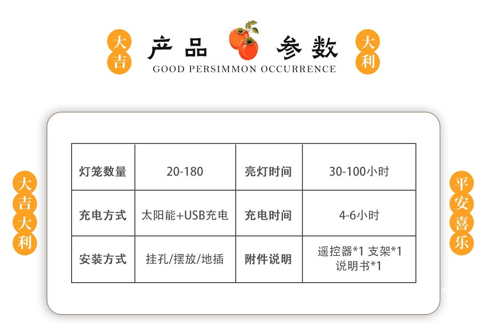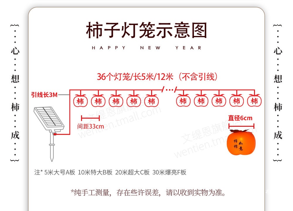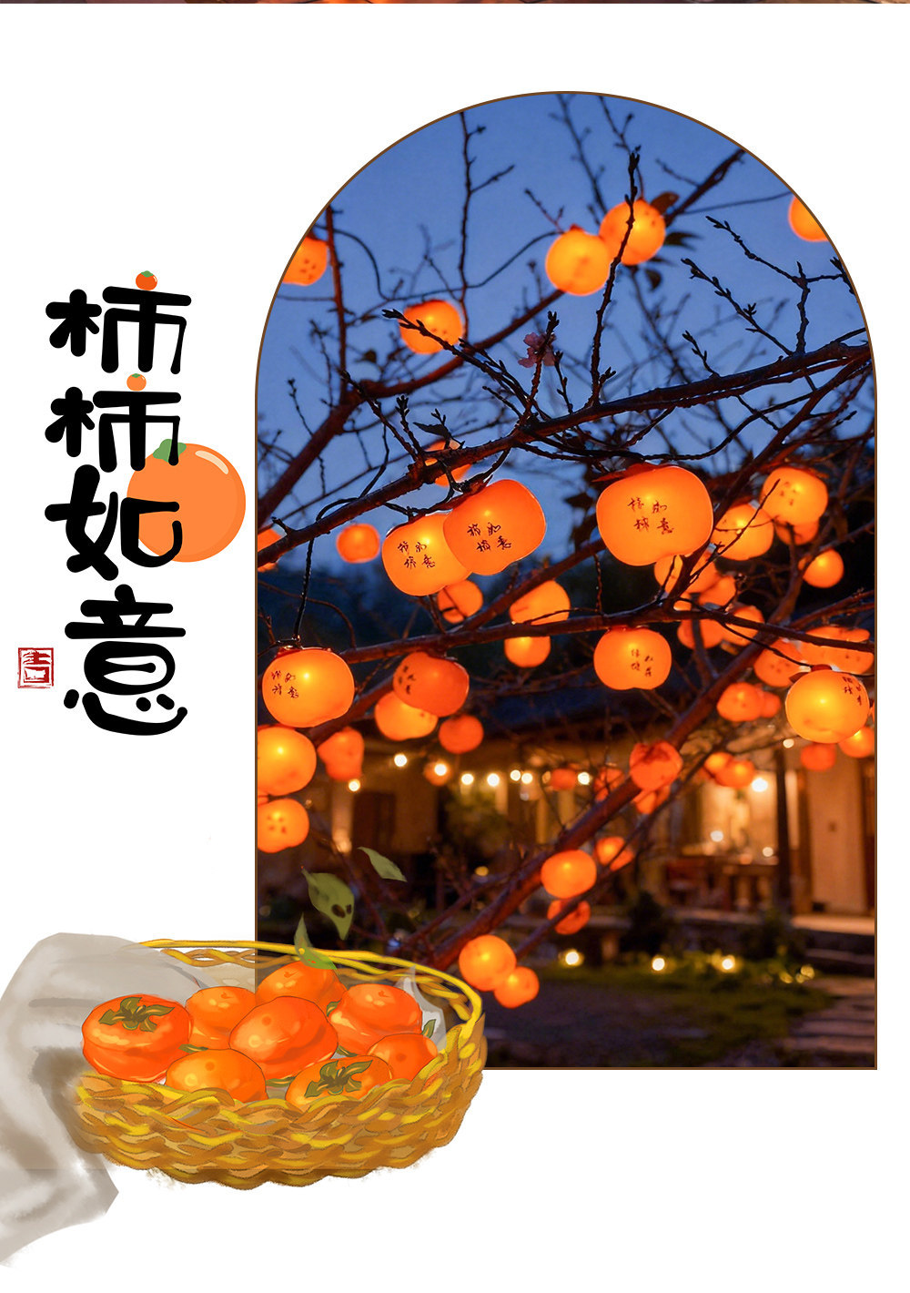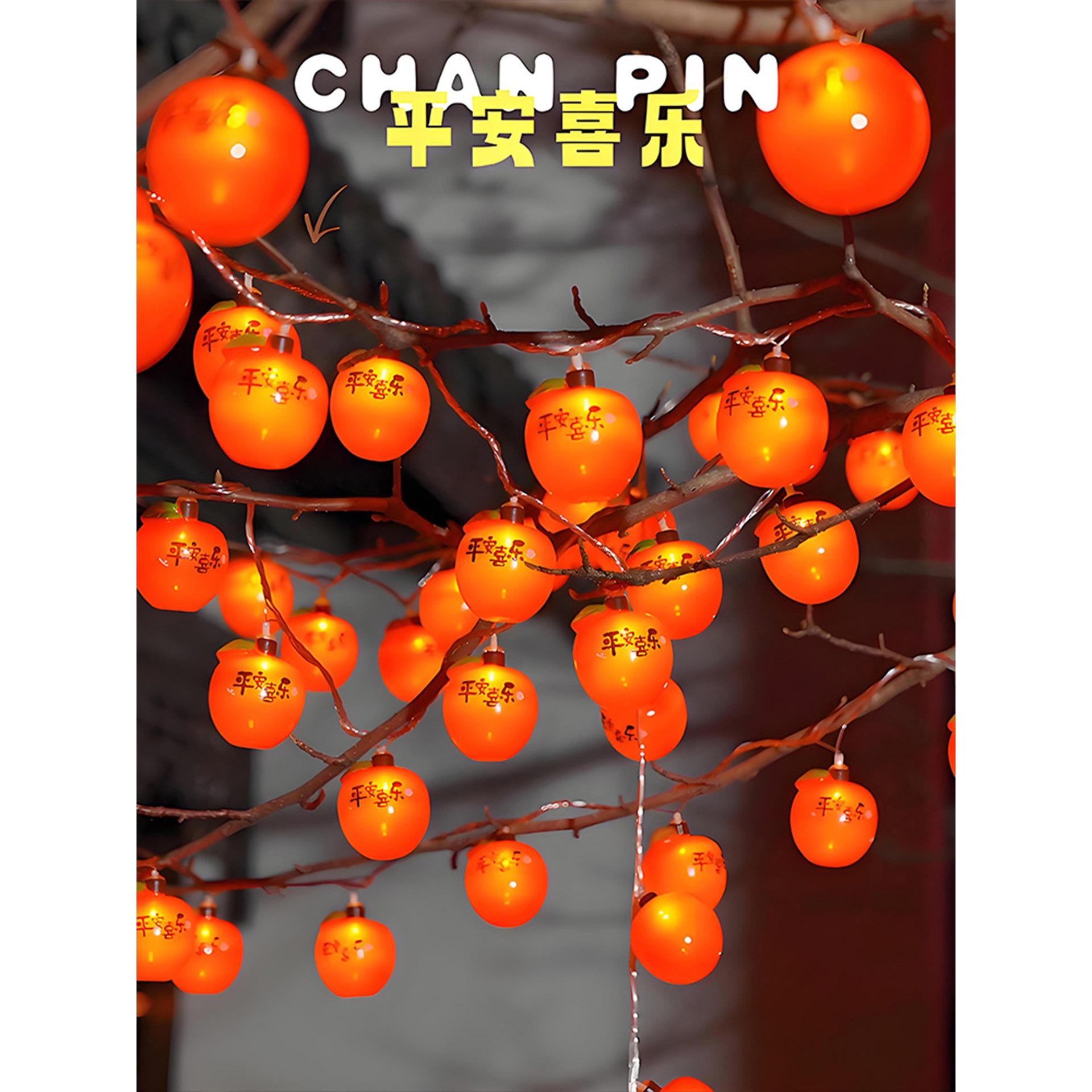 太阳能灯串户外树上柿子灯笼挂饰农村庭院春节新年装饰彩灯氛围灯