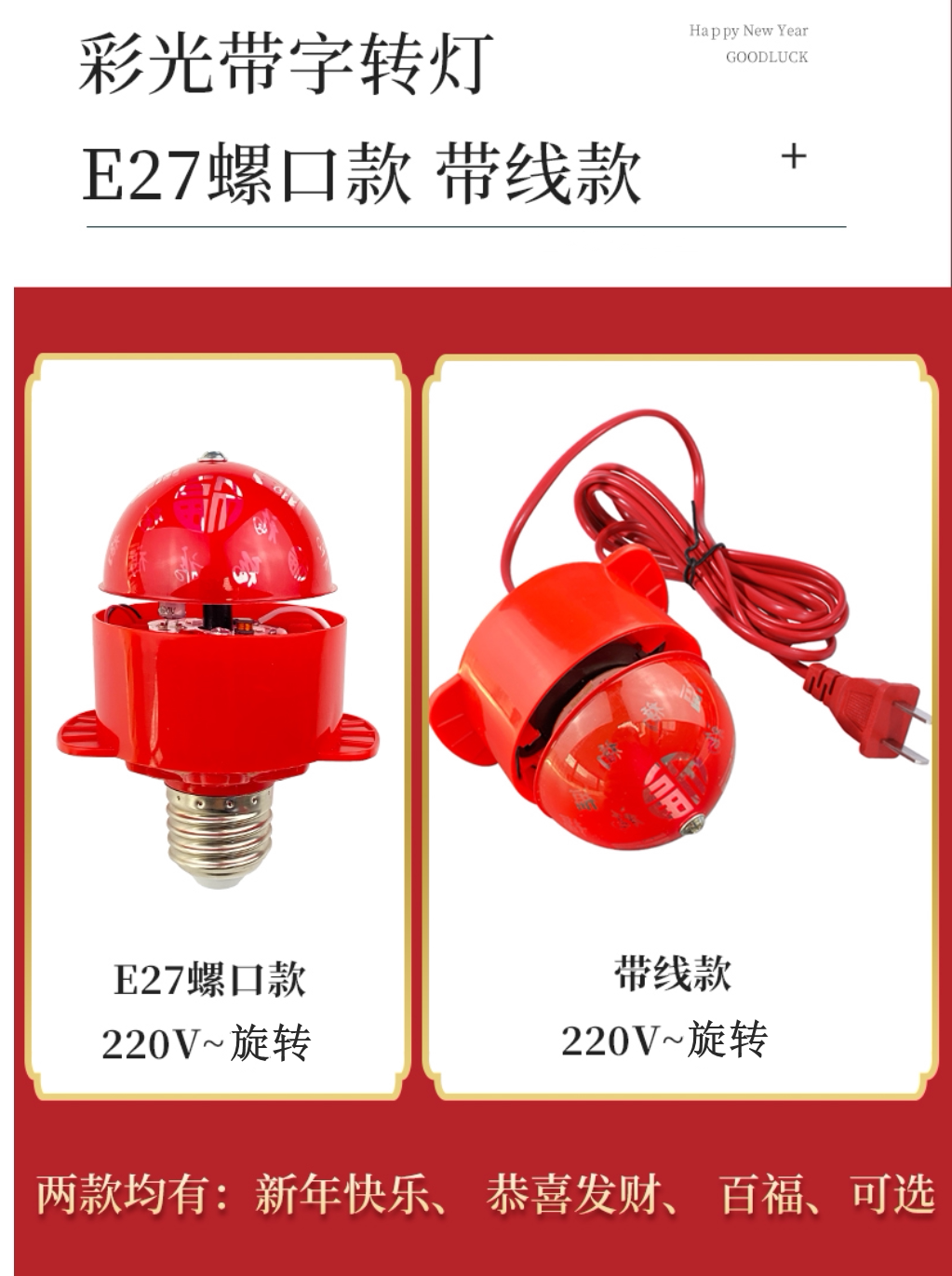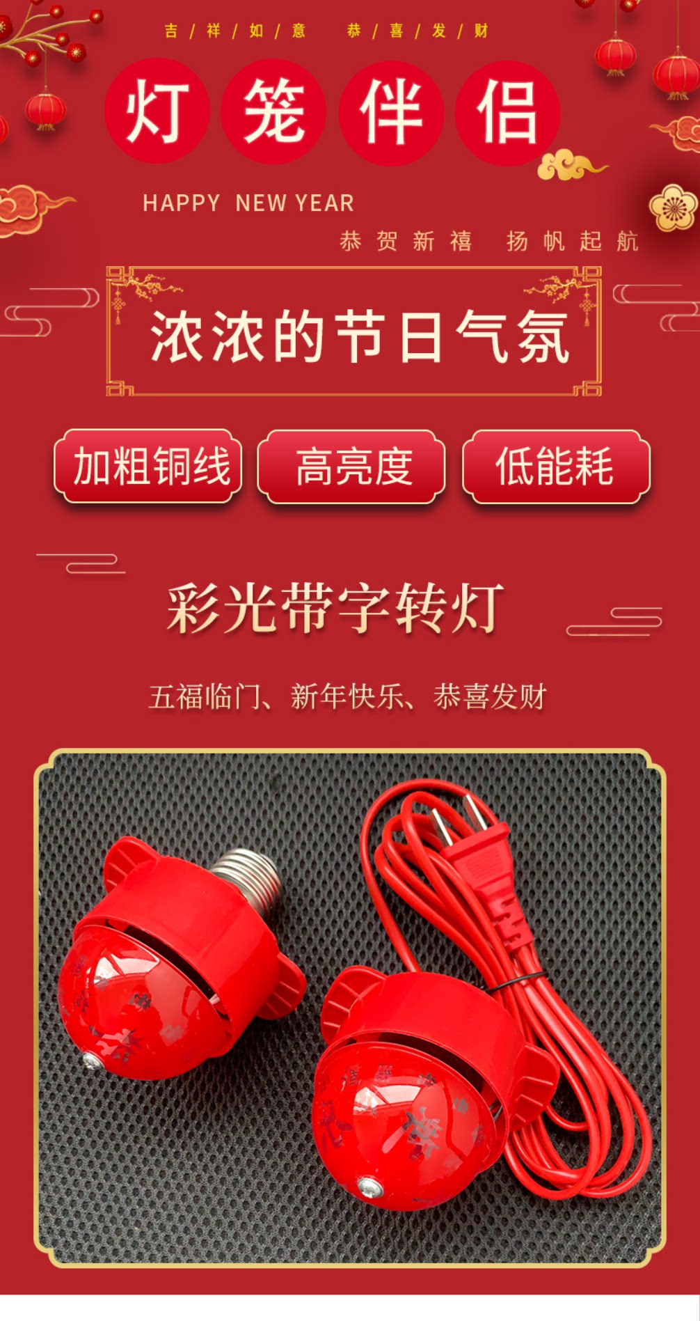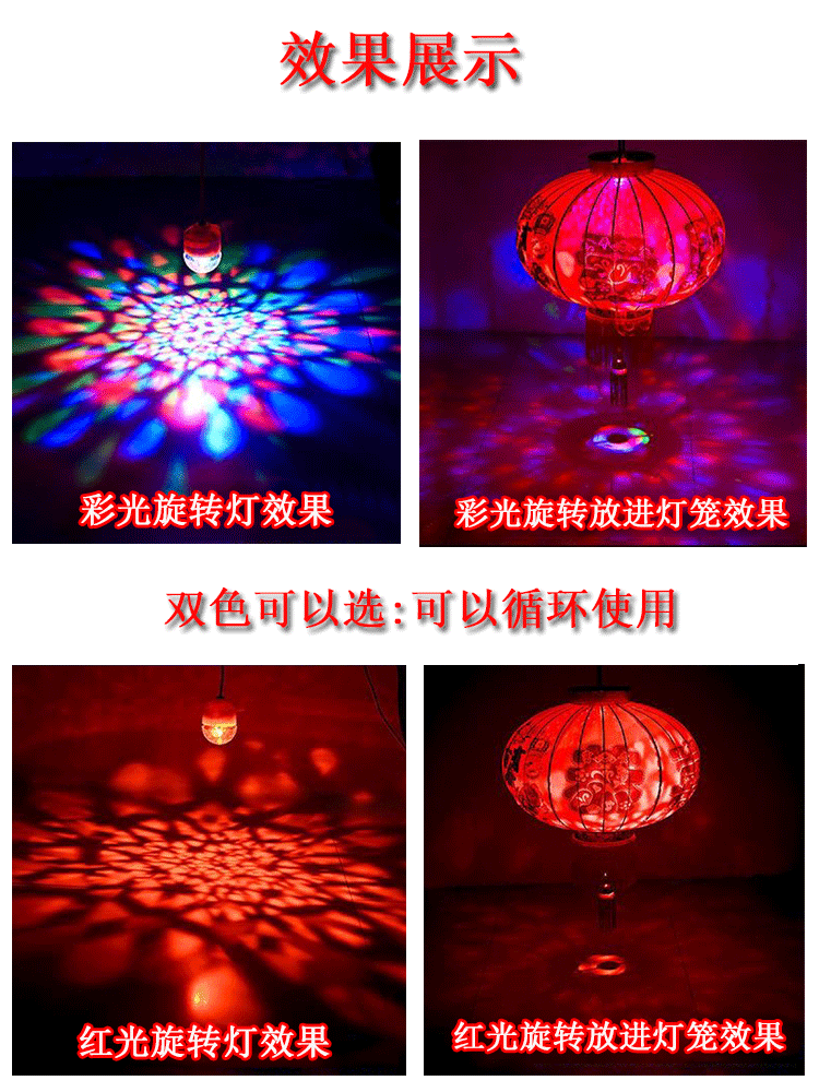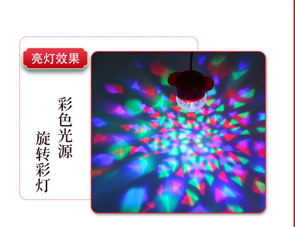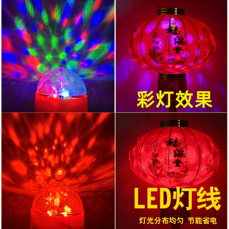 厂家红灯笼内置led彩灯春节装饰大门灯笼伴侣 插电喜庆七彩旋转灯