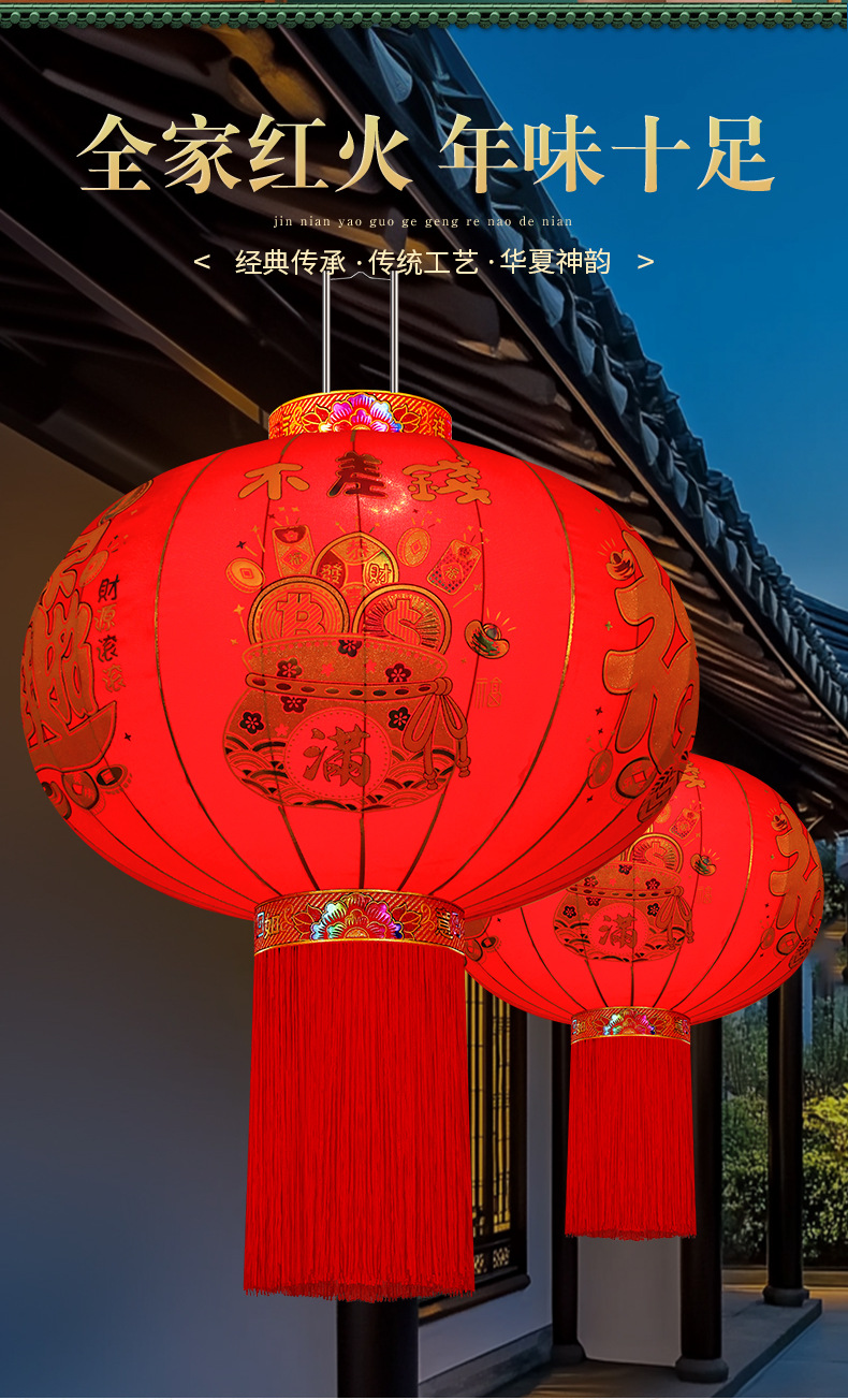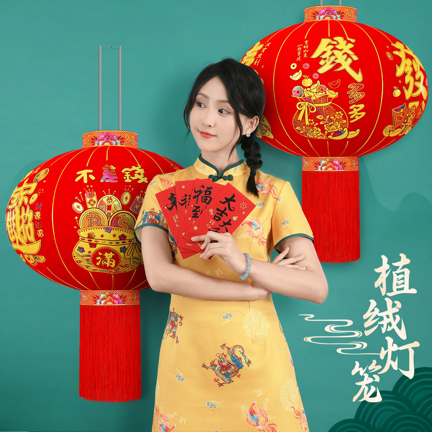 福字灯笼新款2026户外大红灯笼过年防水植绒阳台农村大门新年装饰