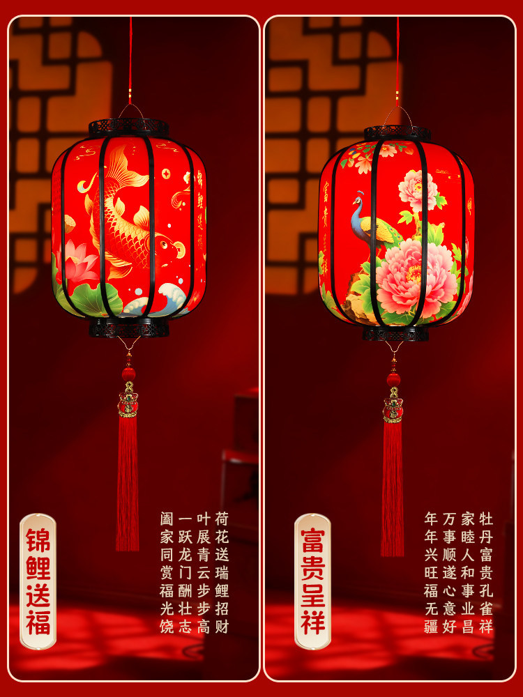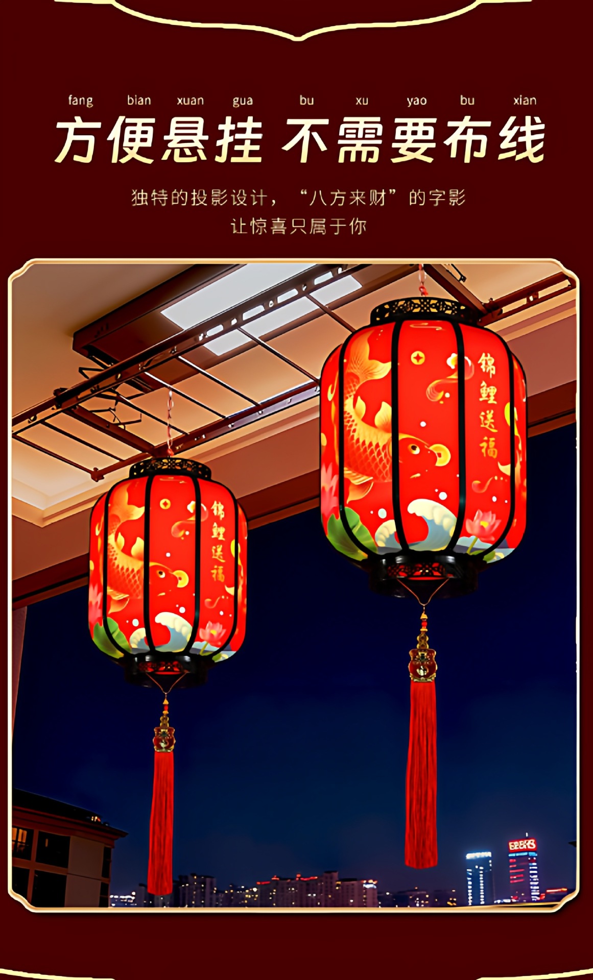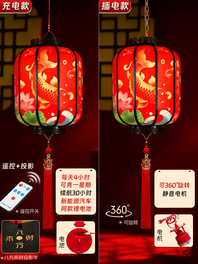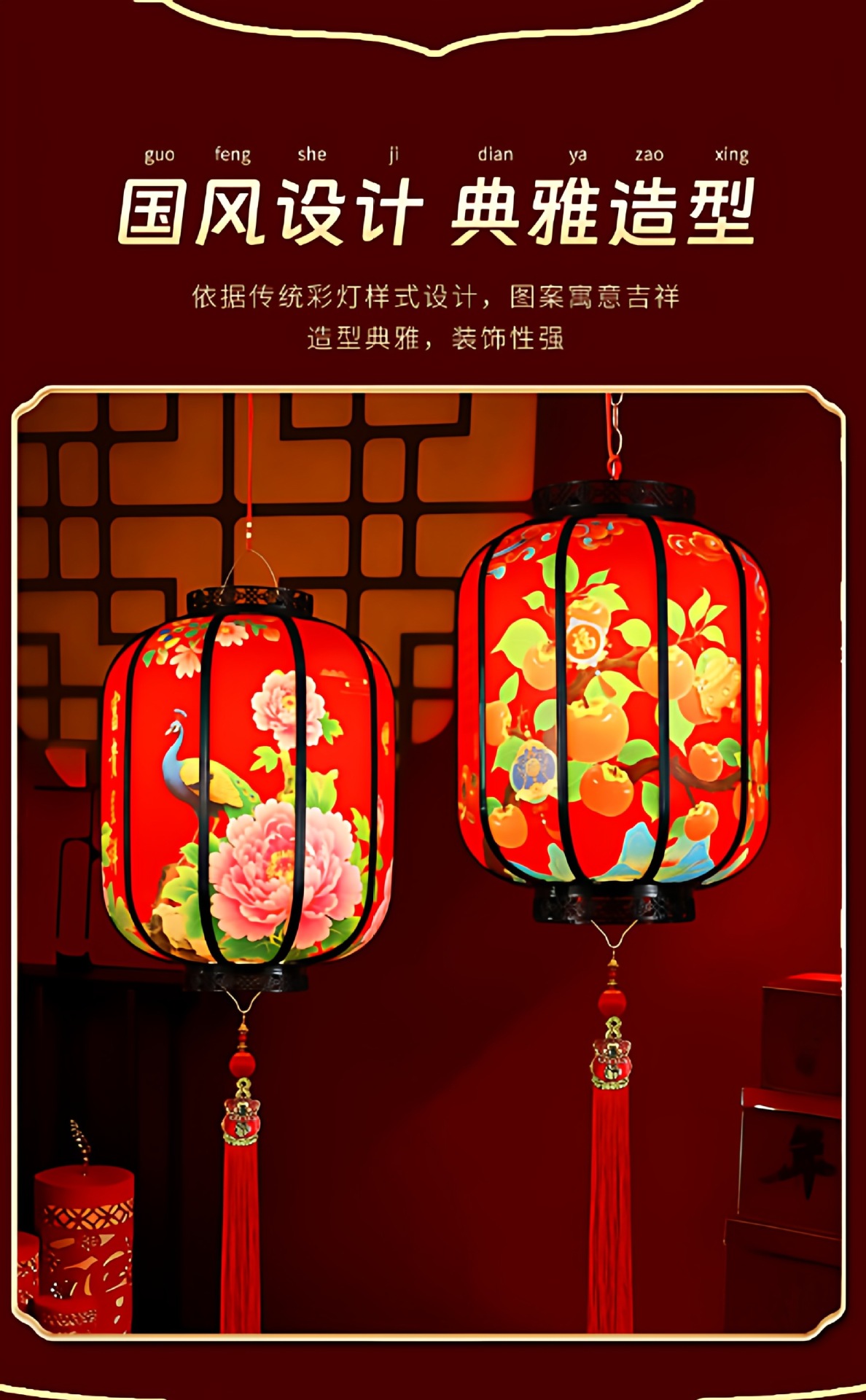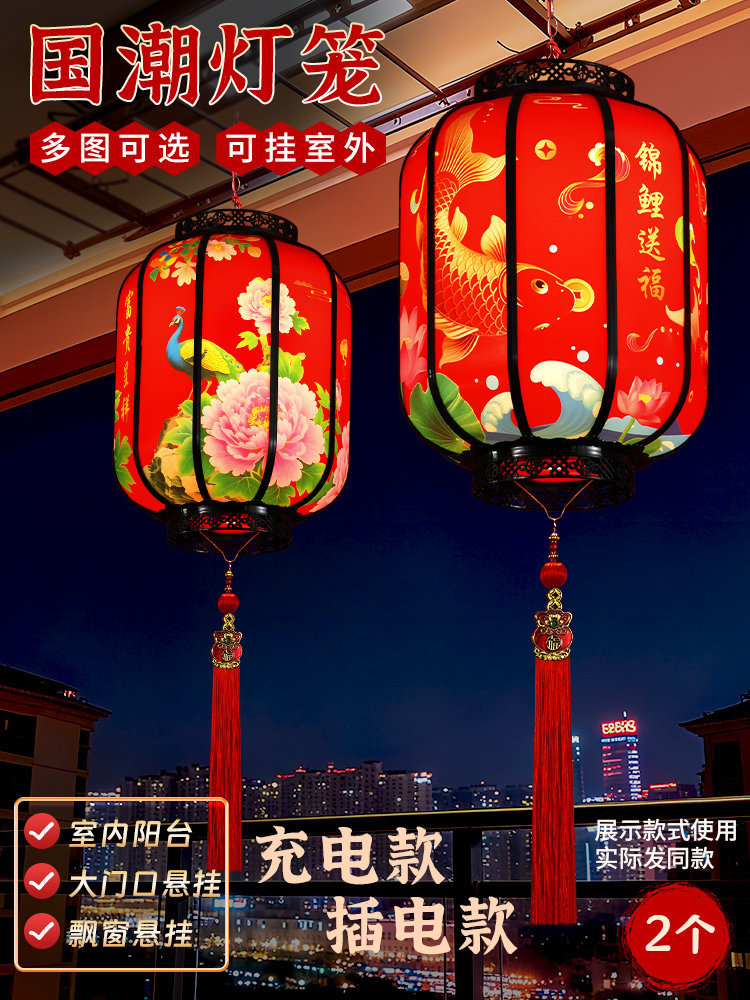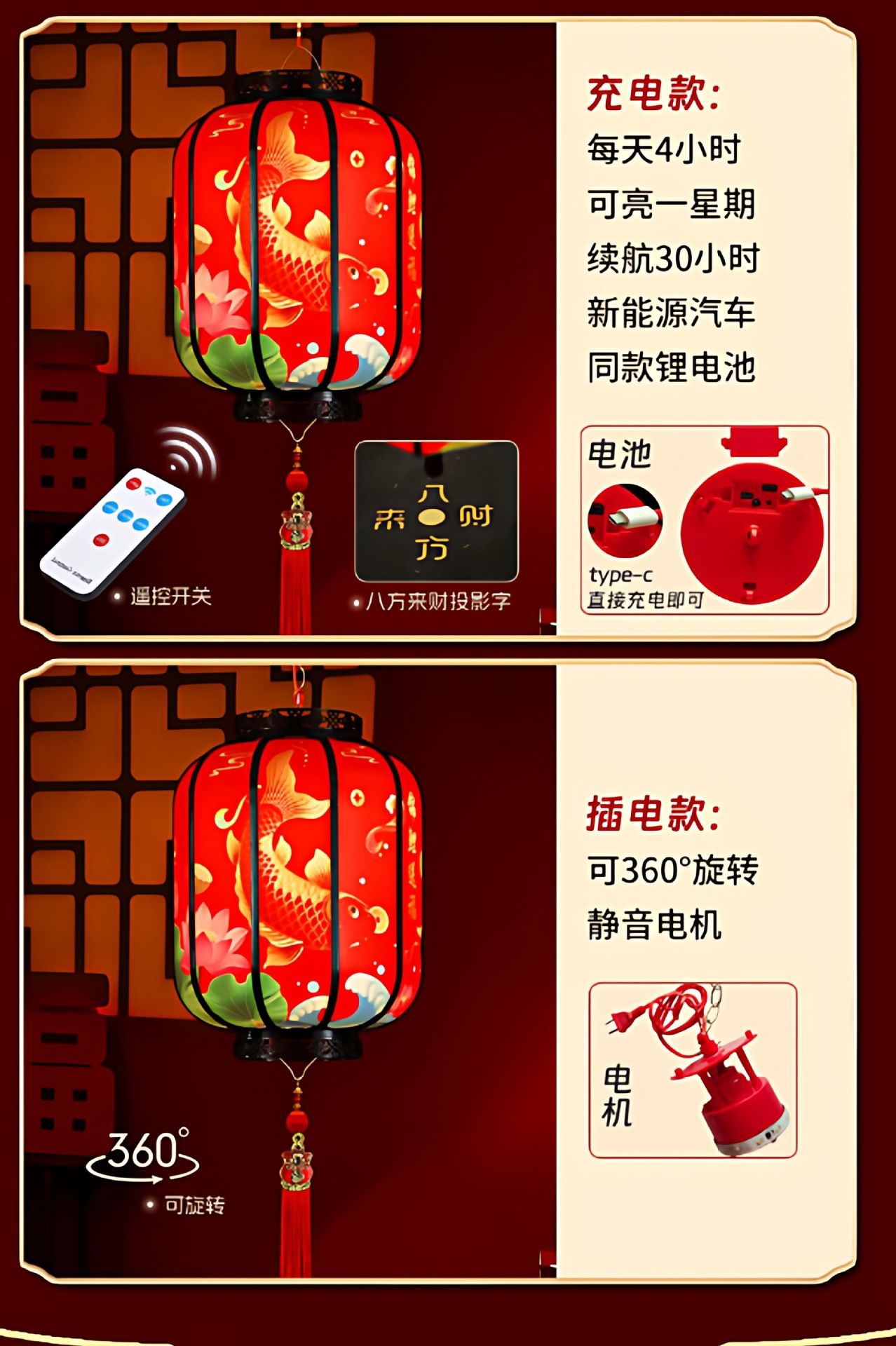 2026新款旋转灯笼LED走马灯充电阳台大门口装饰2025新年春节一对