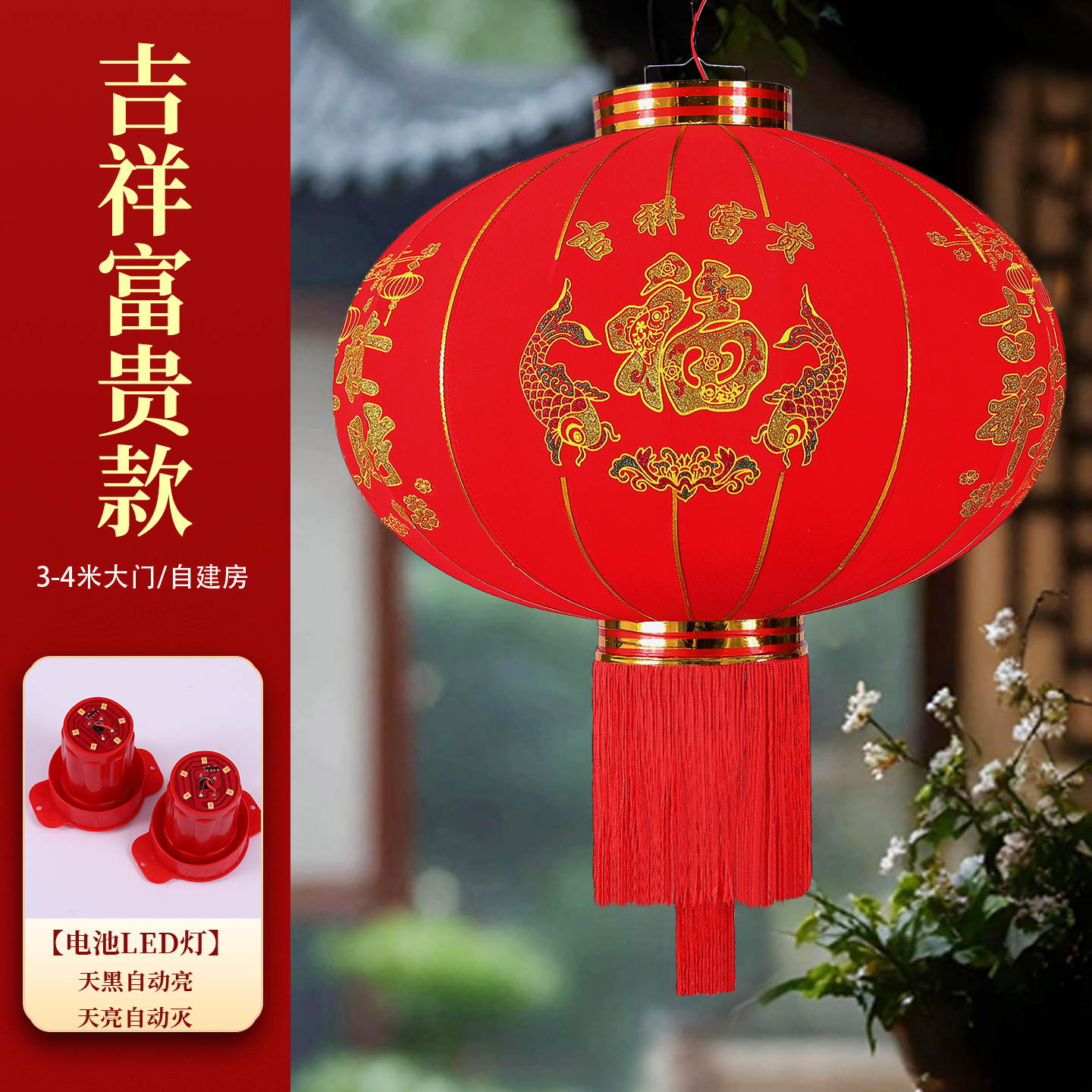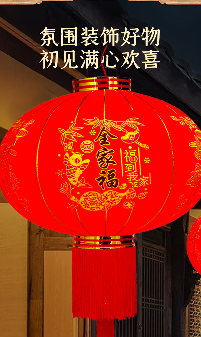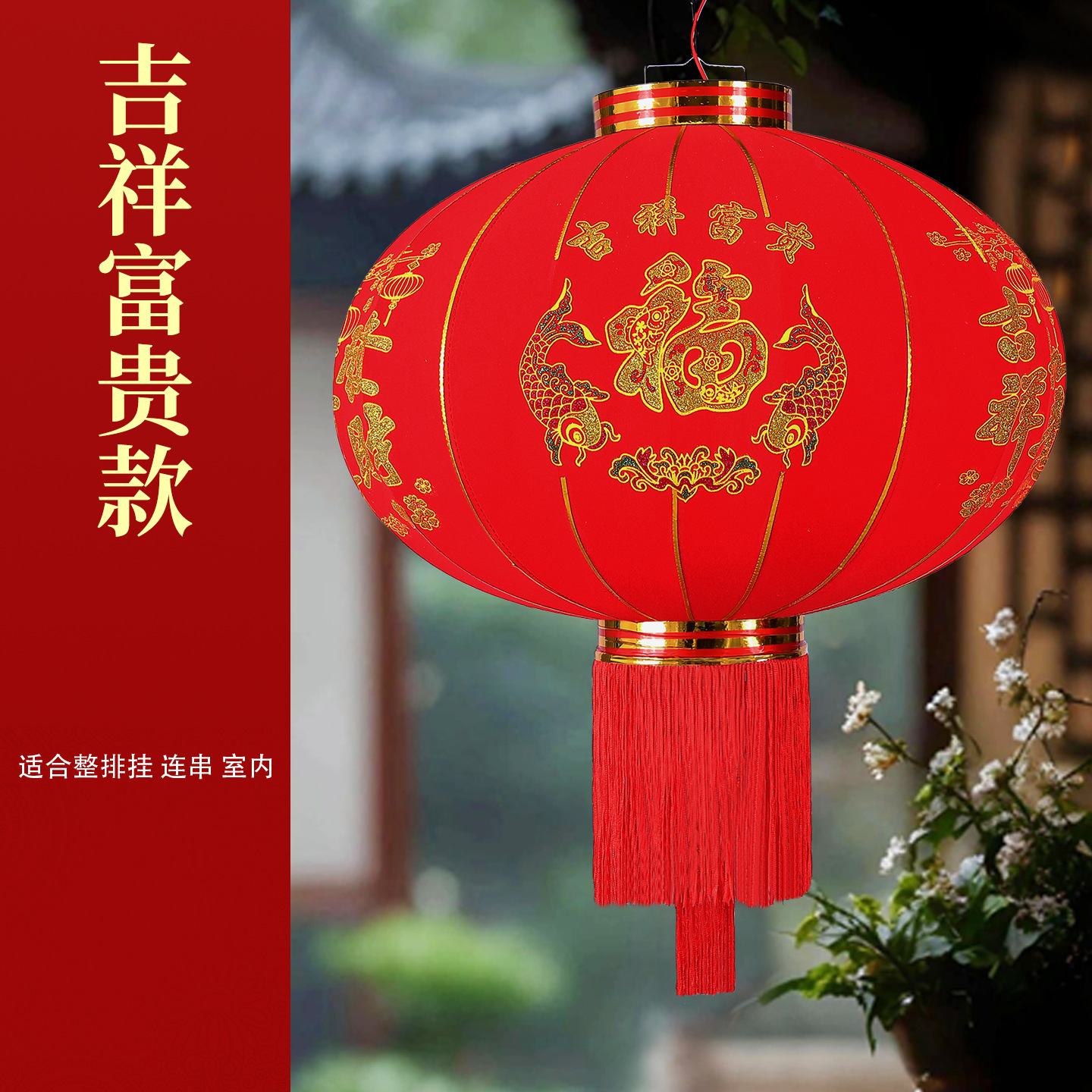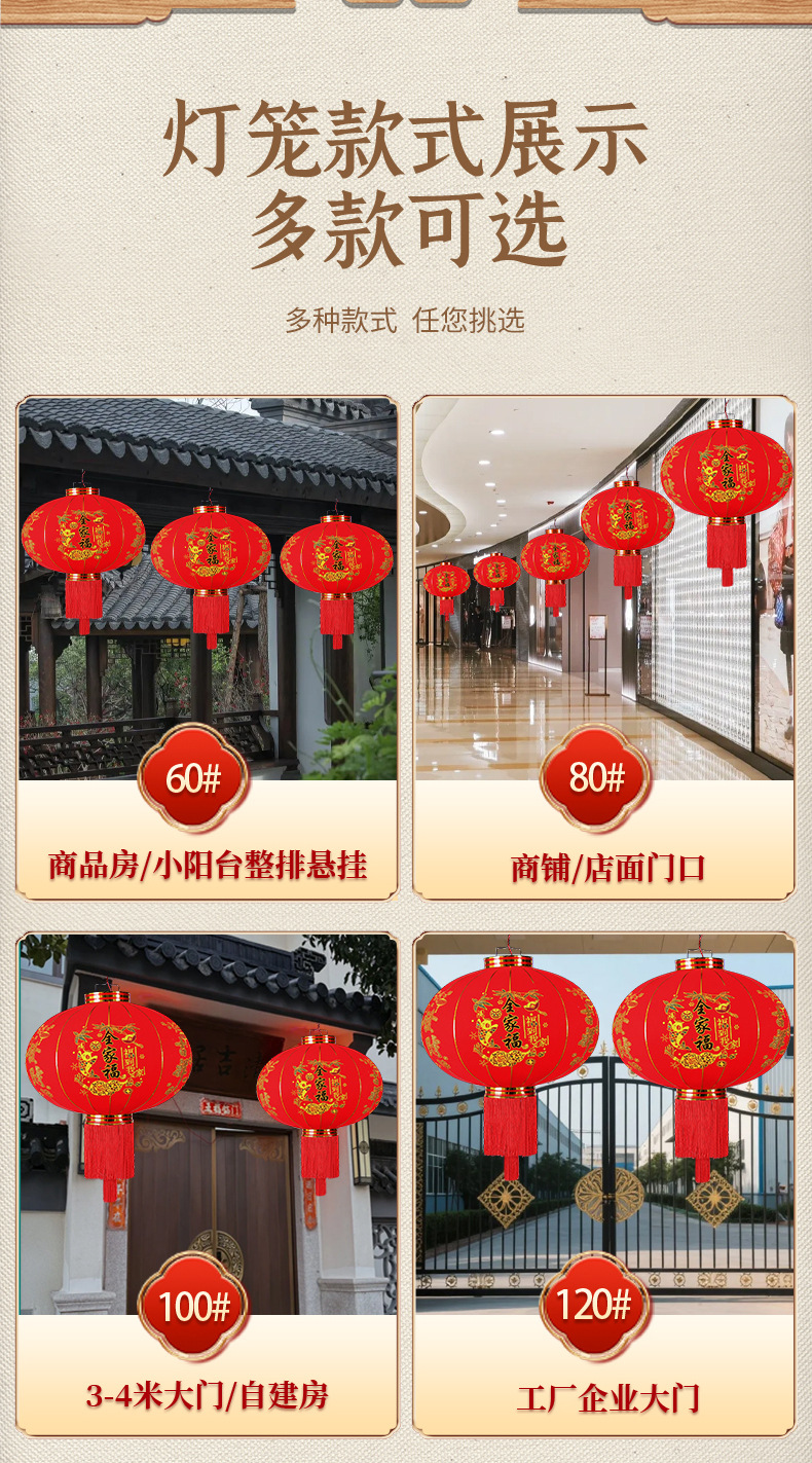 批发大红灯笼大门口阳台中国风国潮宫灯新年春节户外装饰植绒灯笼