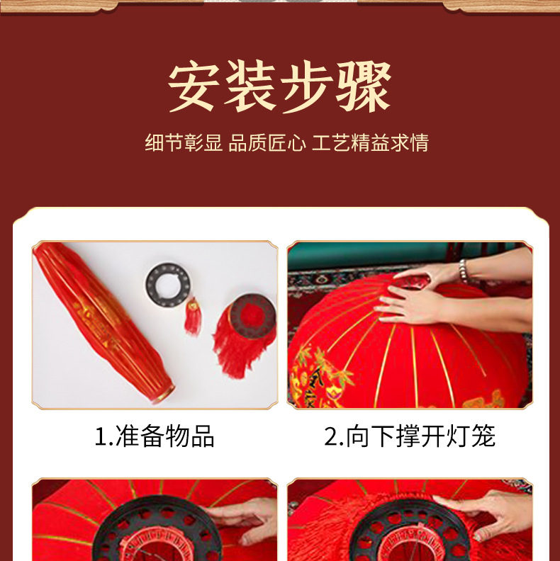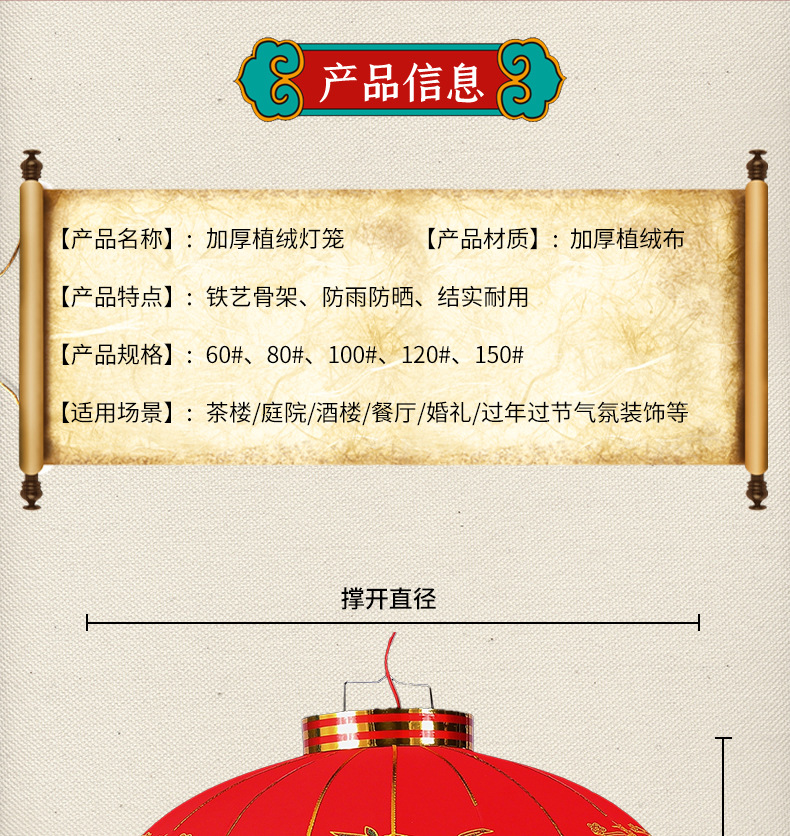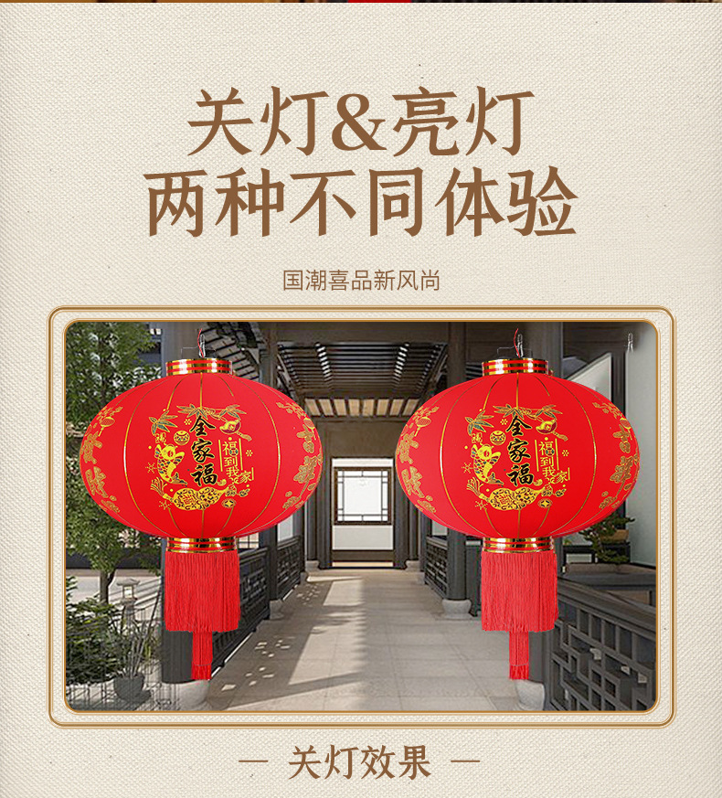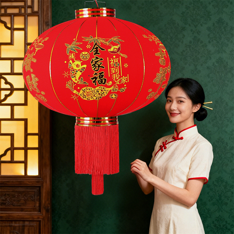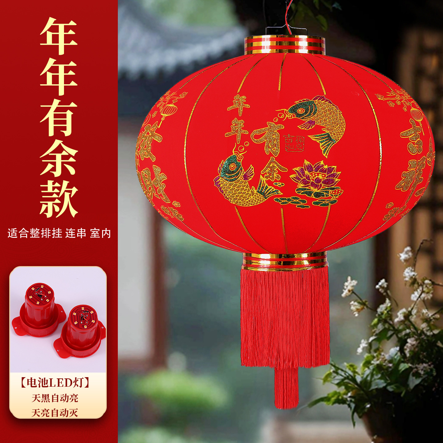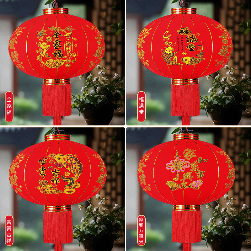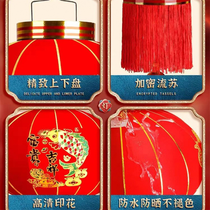 批发大红灯笼大门口阳台中国风国潮宫灯新年春节户外装饰植绒灯笼