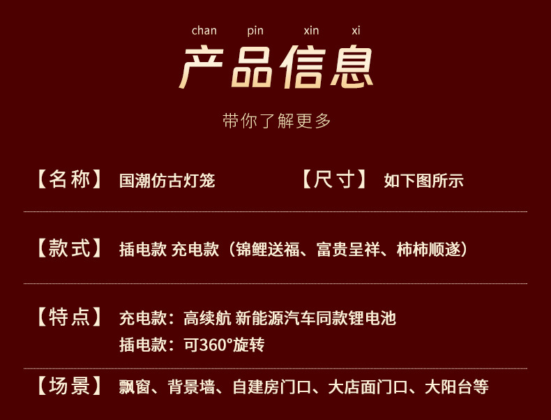 新年春节LED旋转灯笼2026新款中国风充电国潮图案遥控新年红灯笼