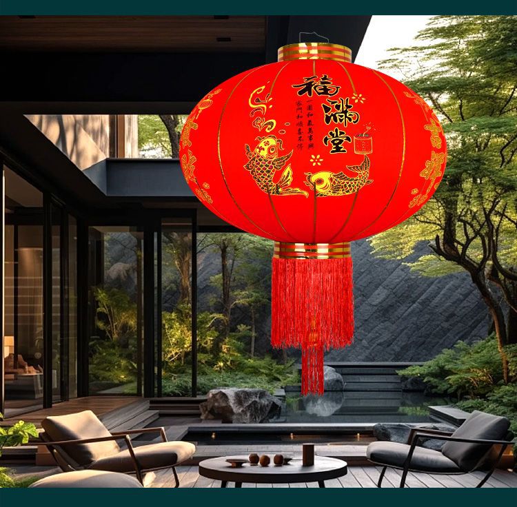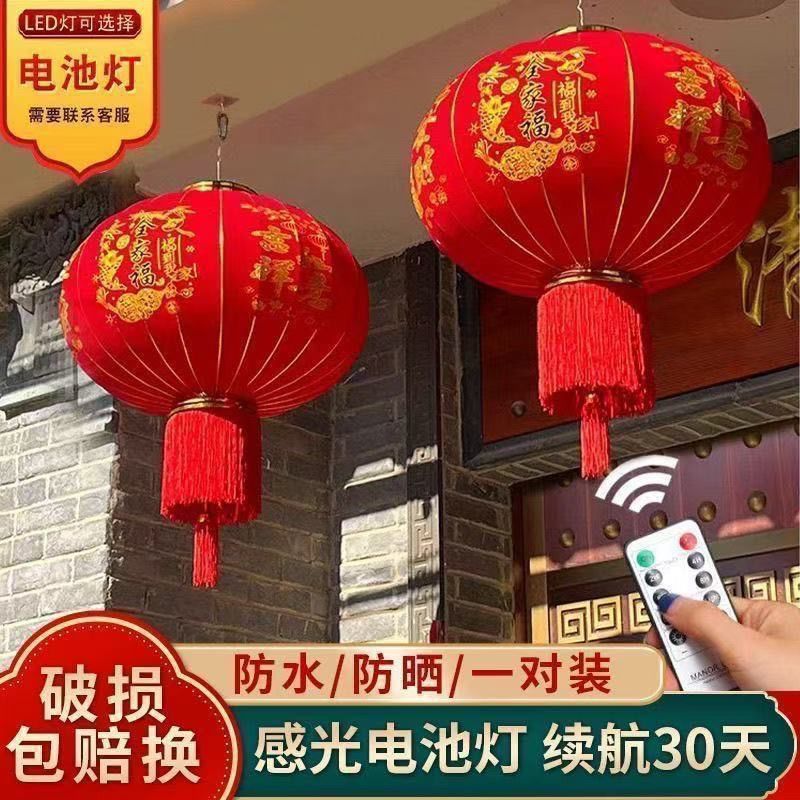 2026年灯笼植绒大红灯笼遥控过年春节便宜礼品阳台门口一件代发厂