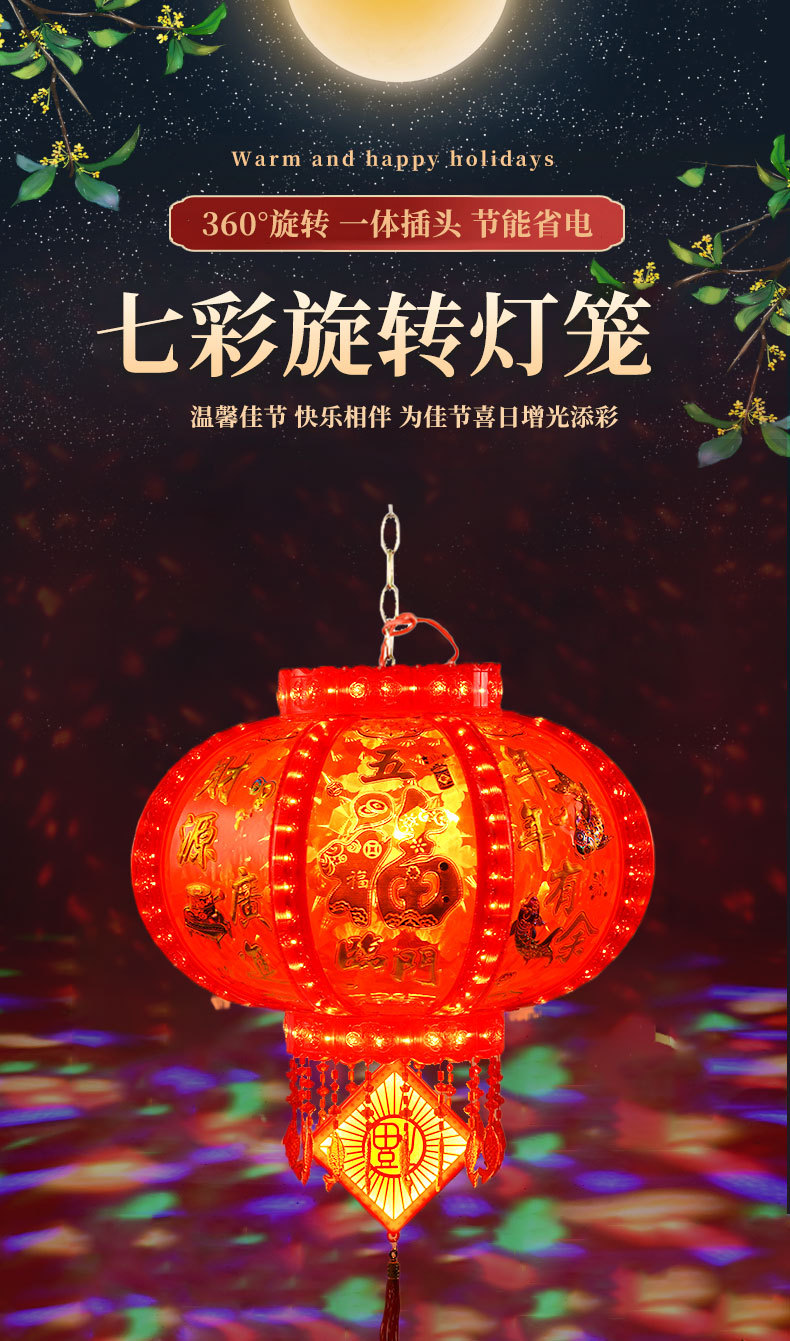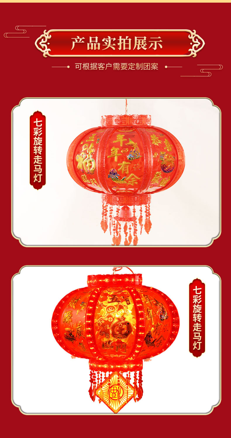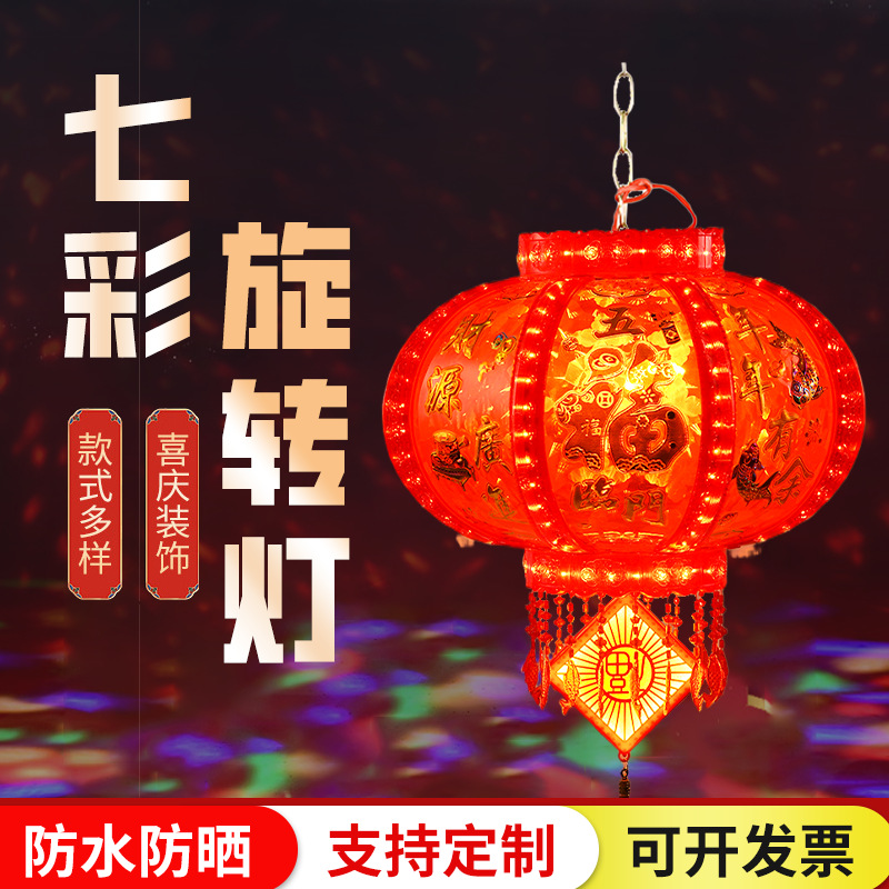 春节LED七彩旋转走马灯笼乔迁吊灯阳台大门红结婚喜福字灯笼批发