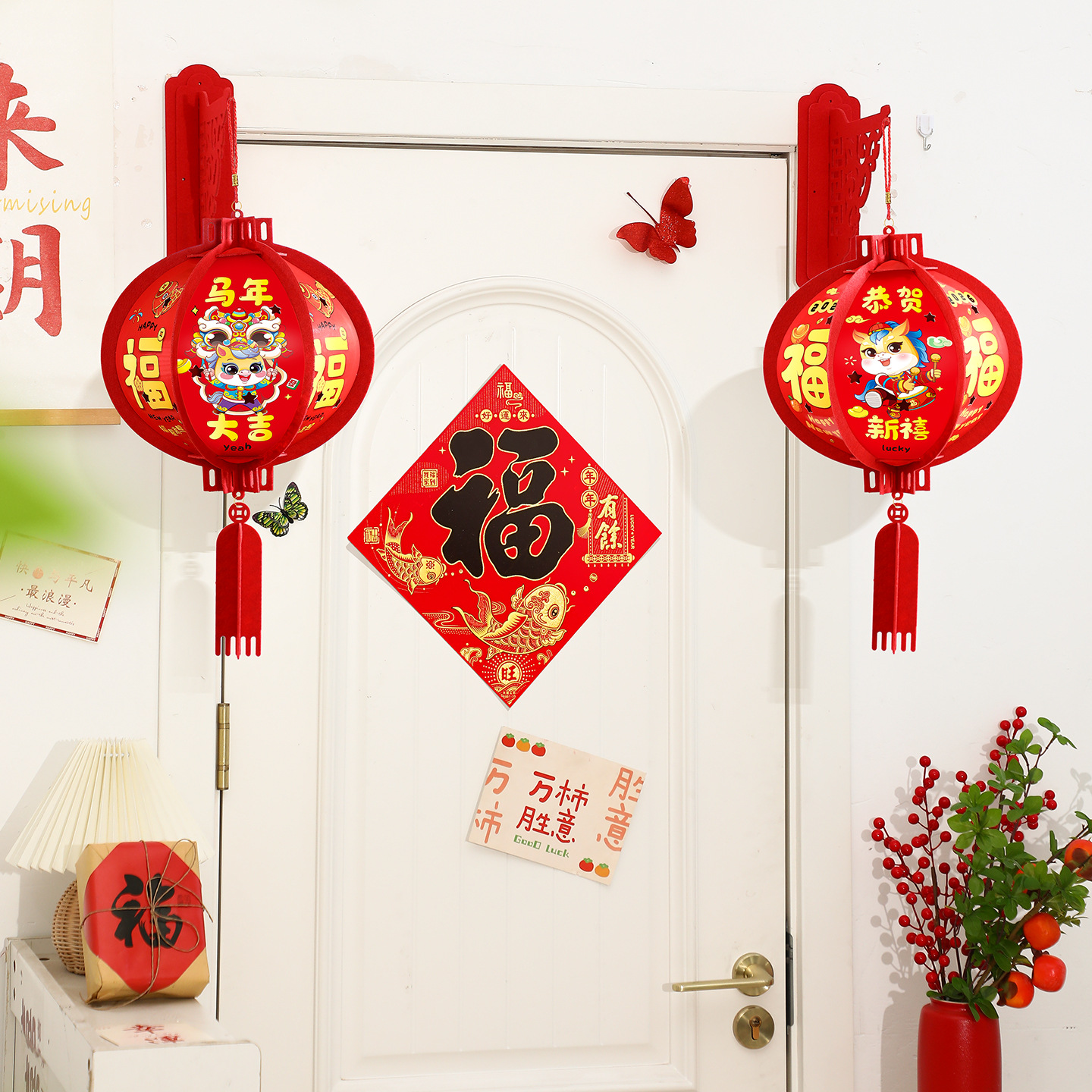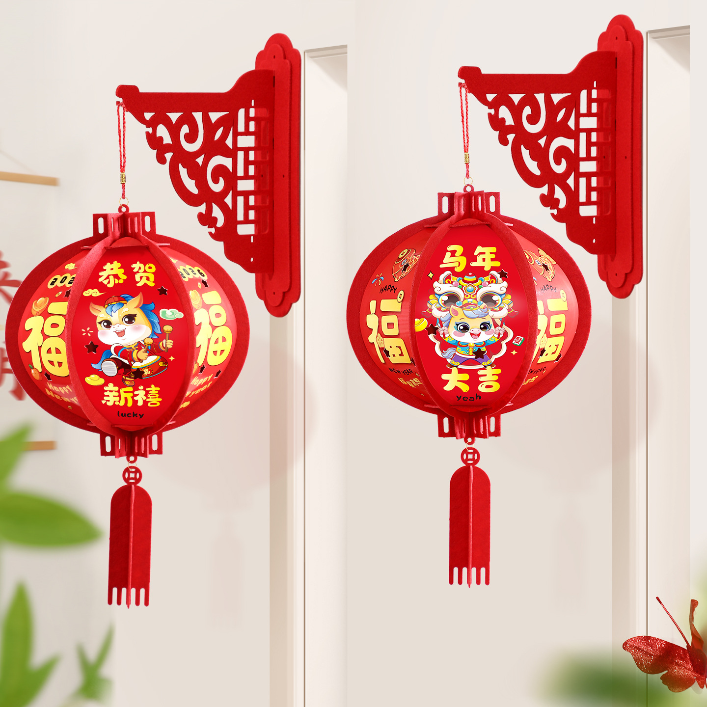 新年春节毛毡卡通灯笼挂件马年大门场景布置春节装饰品挂件批货