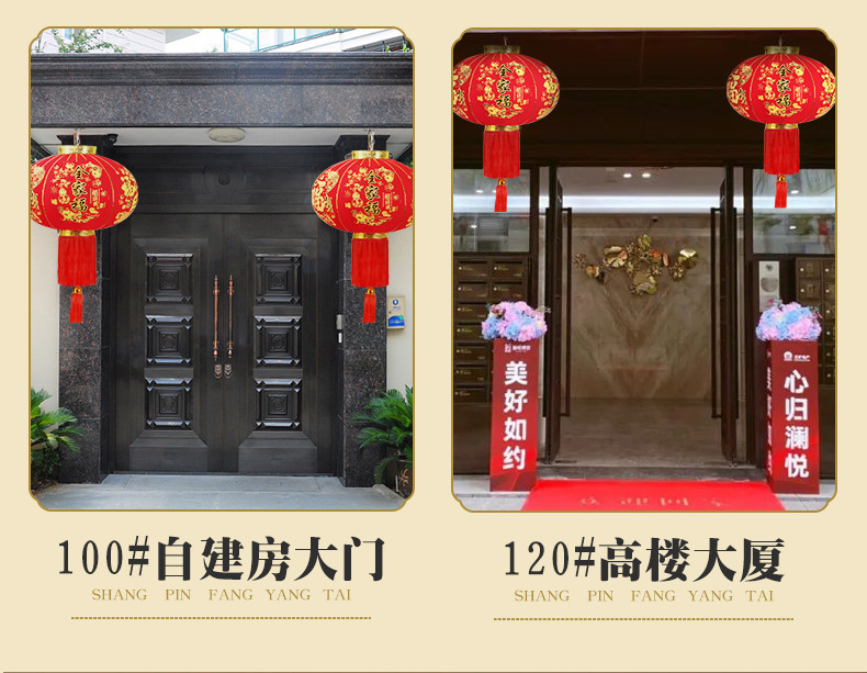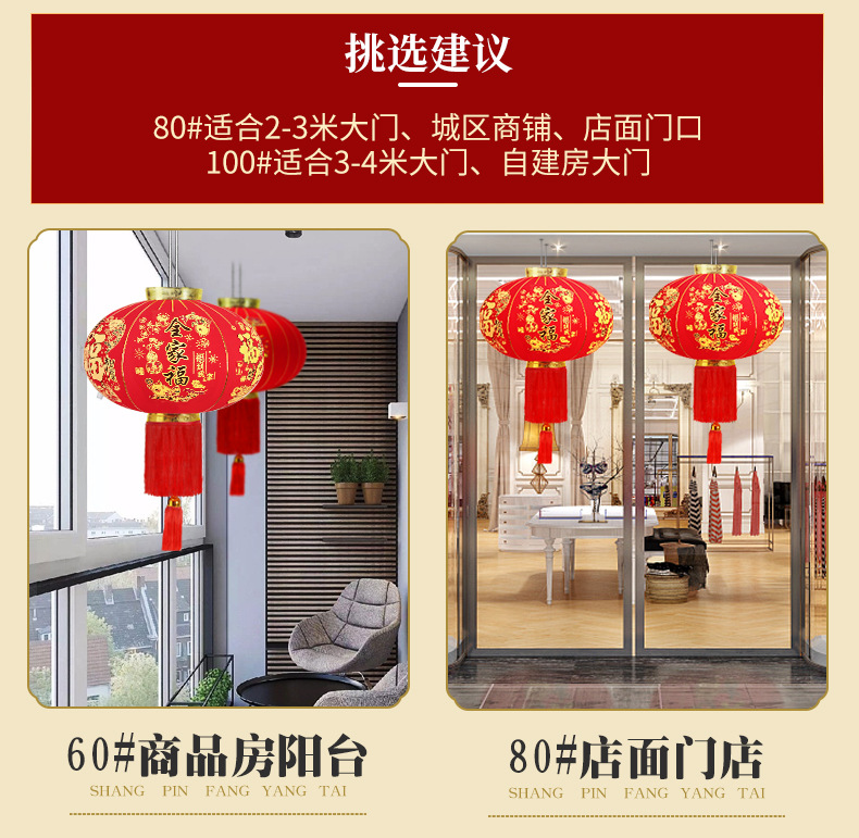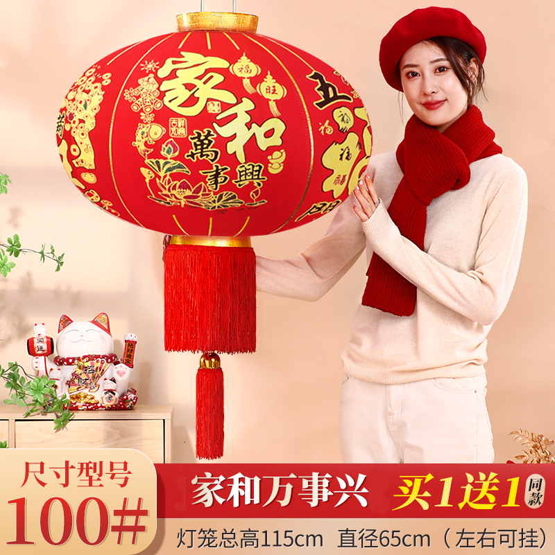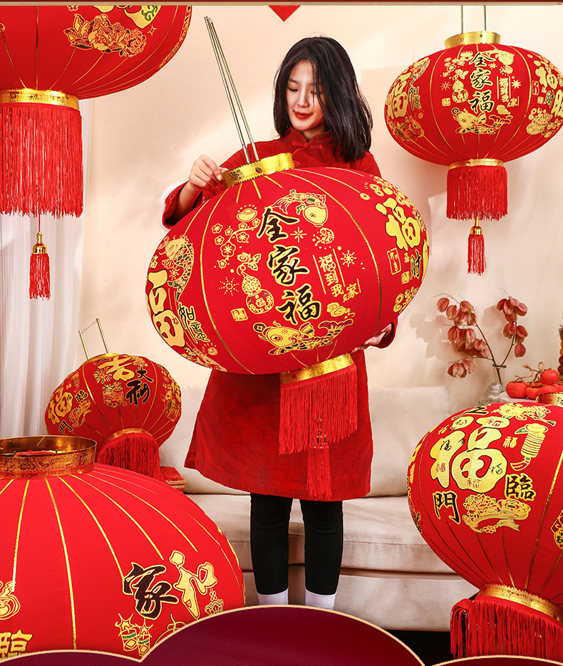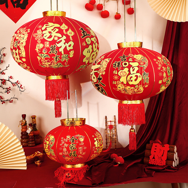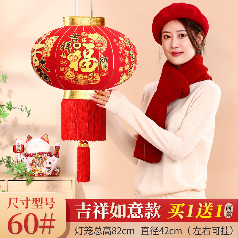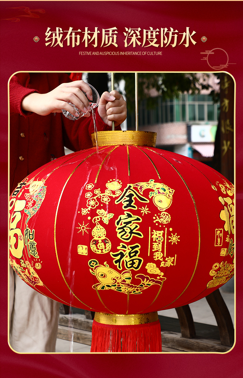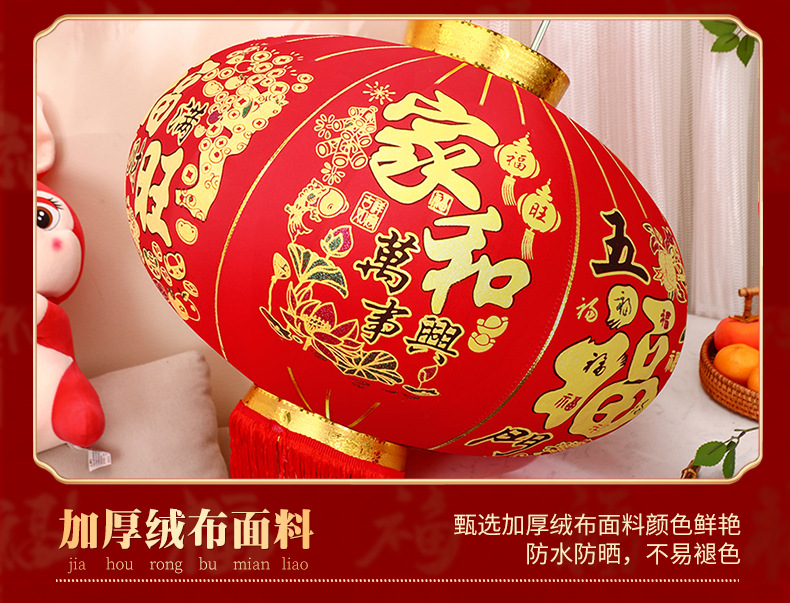 2026春节大红绒布灯笼挂饰户外大门阳台防水宫灯喜庆新年布置装饰