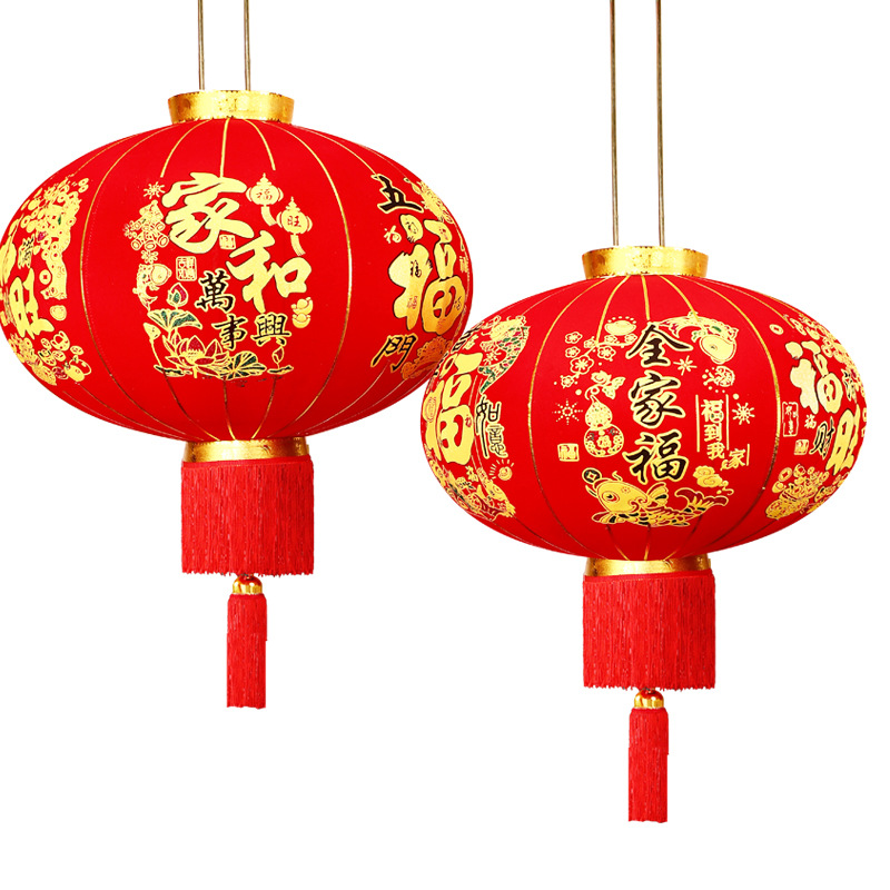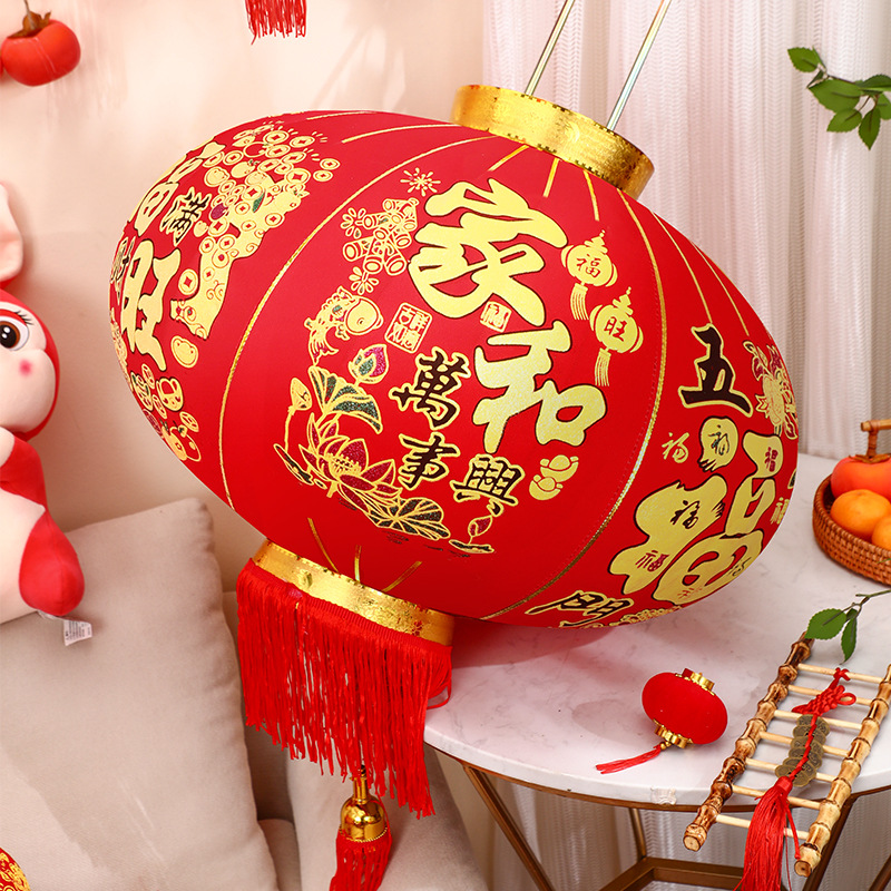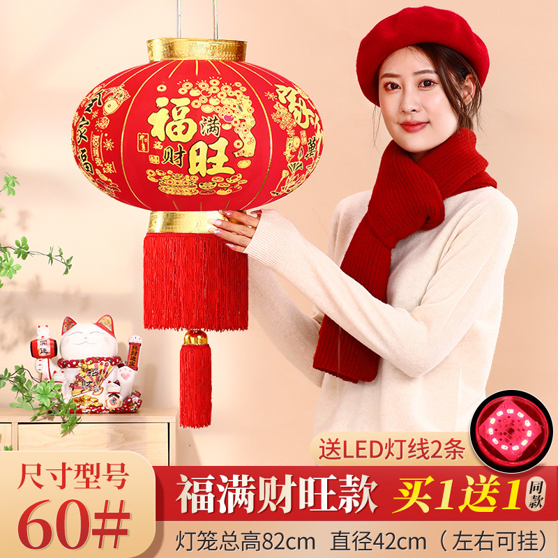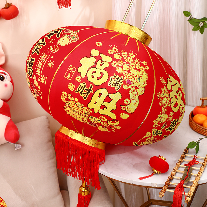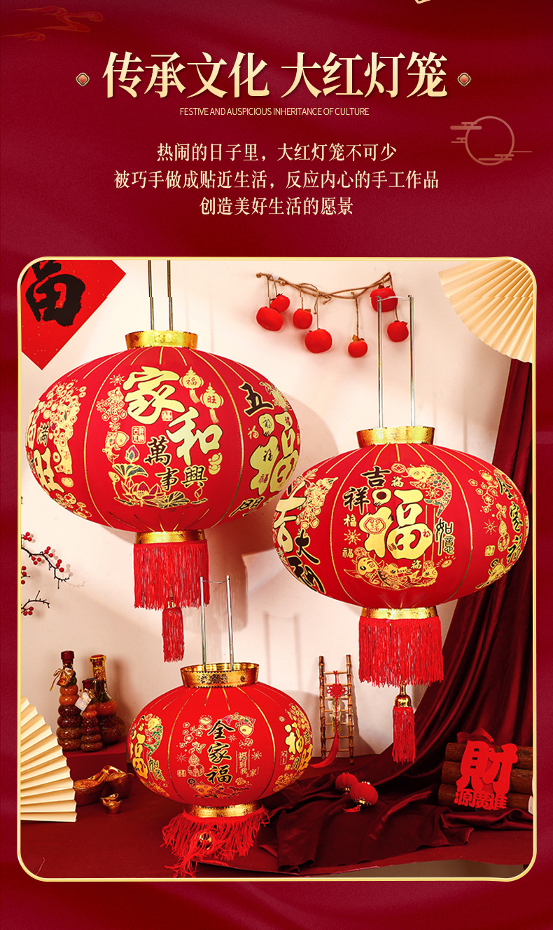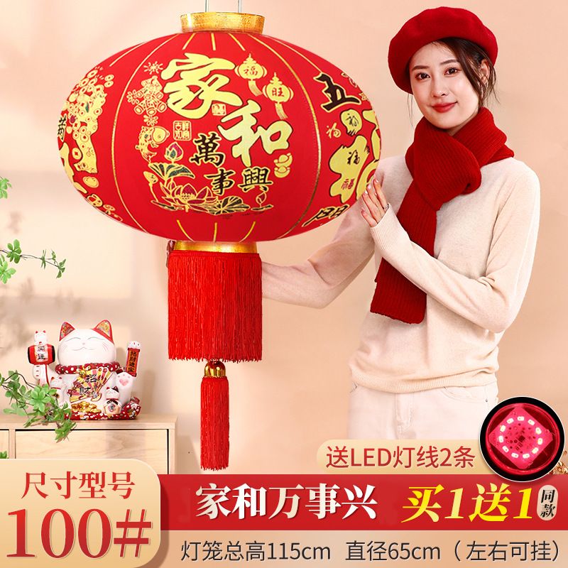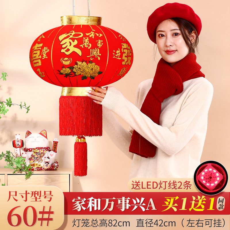 2026春节大红绒布灯笼挂饰户外大门阳台防水宫灯喜庆新年布置装饰