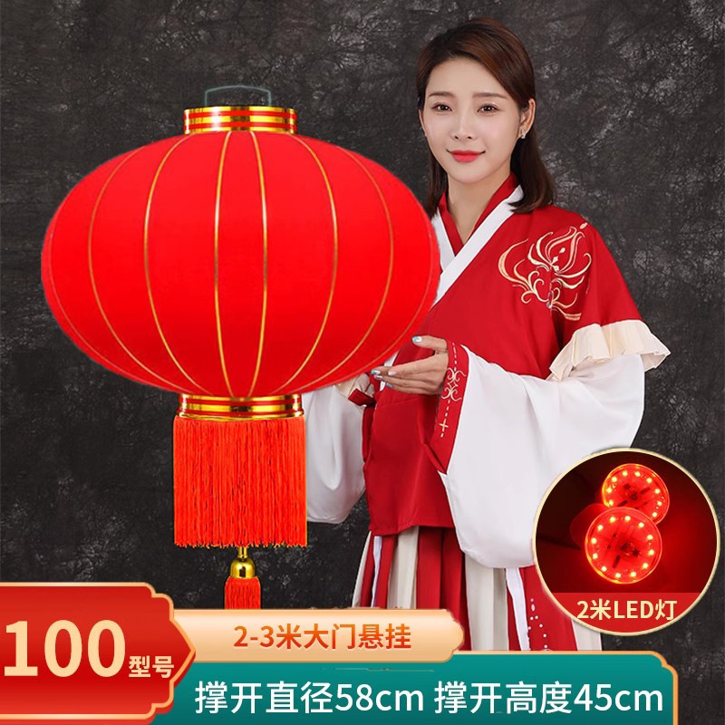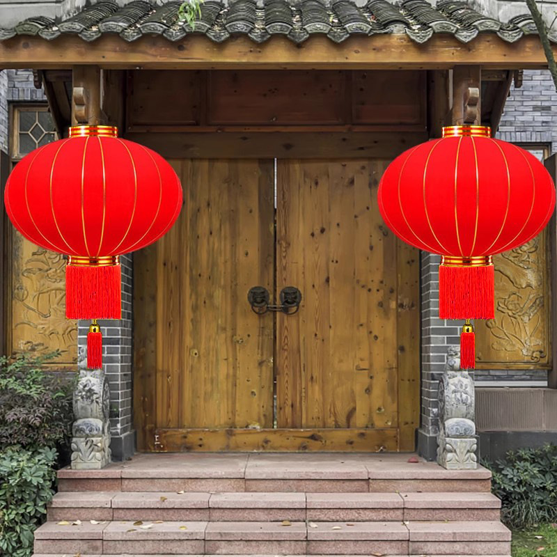 春节大红植绒灯笼挂饰阳台布置新年装饰广告户外防水福字灯笼批发