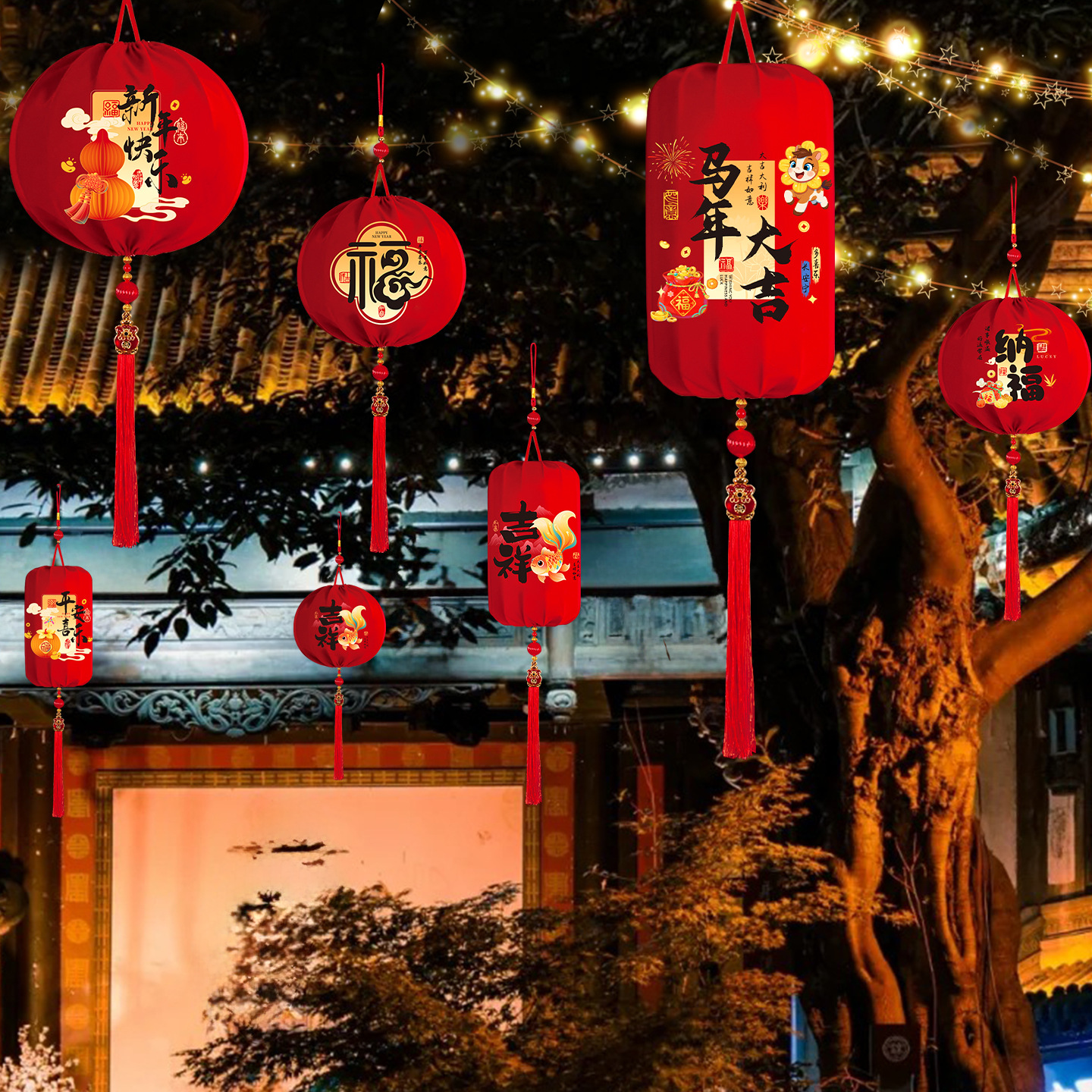 新年红灯笼2026新款马年绒布宫灯挂件春节过年庭院大门阳台装饰品