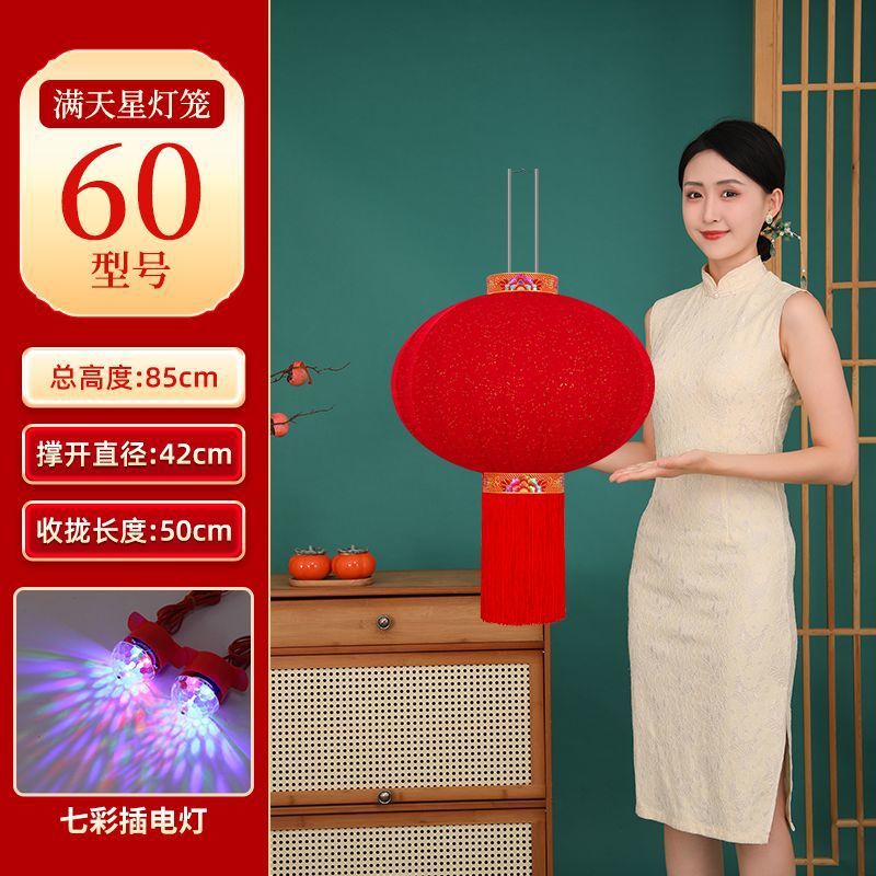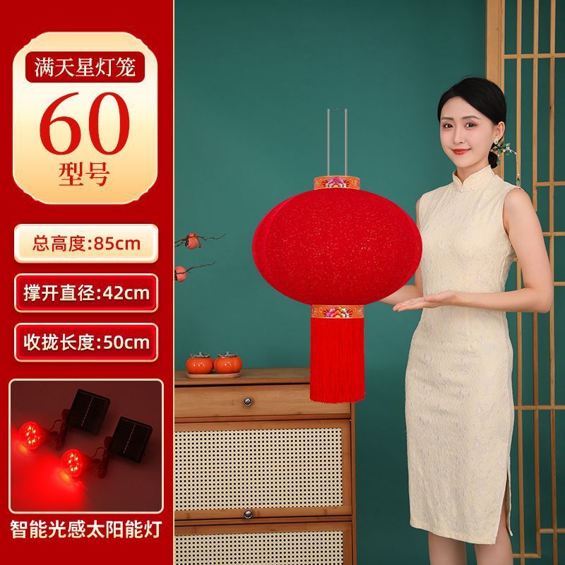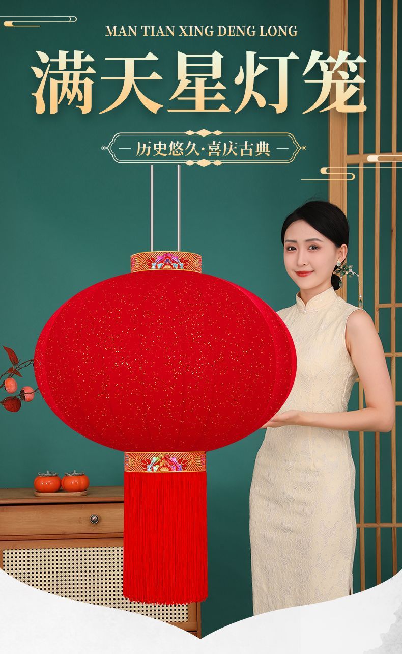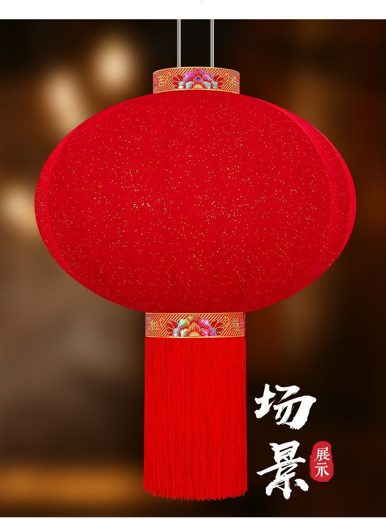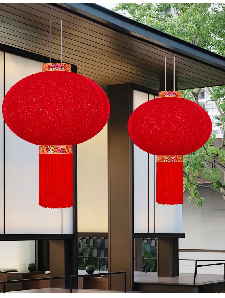 红灯笼乔迁灯笼新款挂饰户外连串植绒春节新年阳台挂件装饰结婚