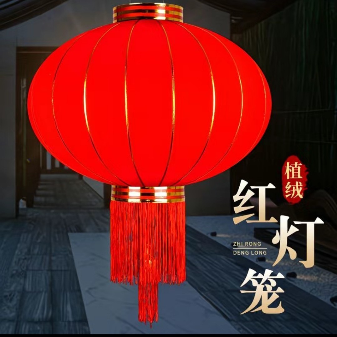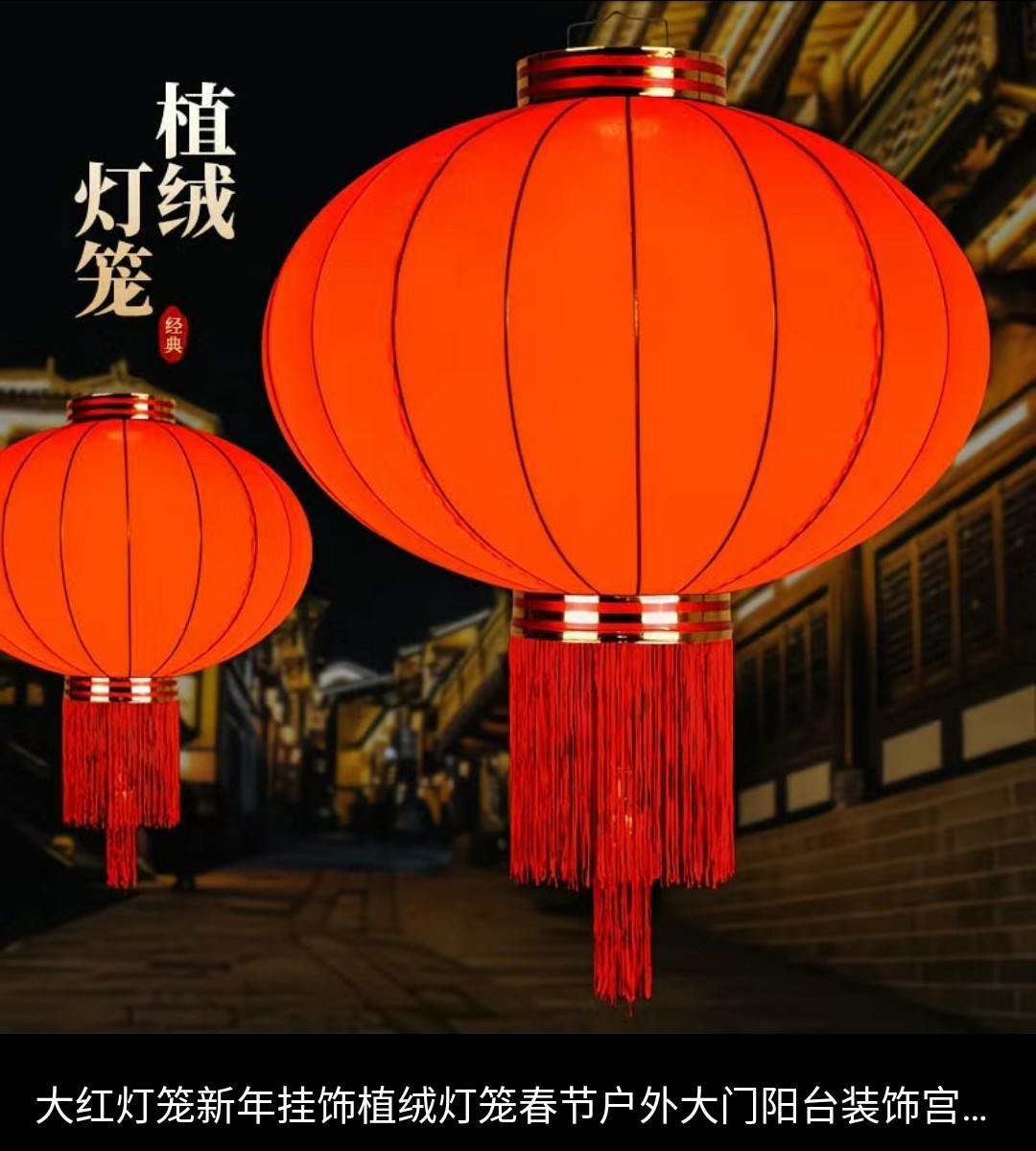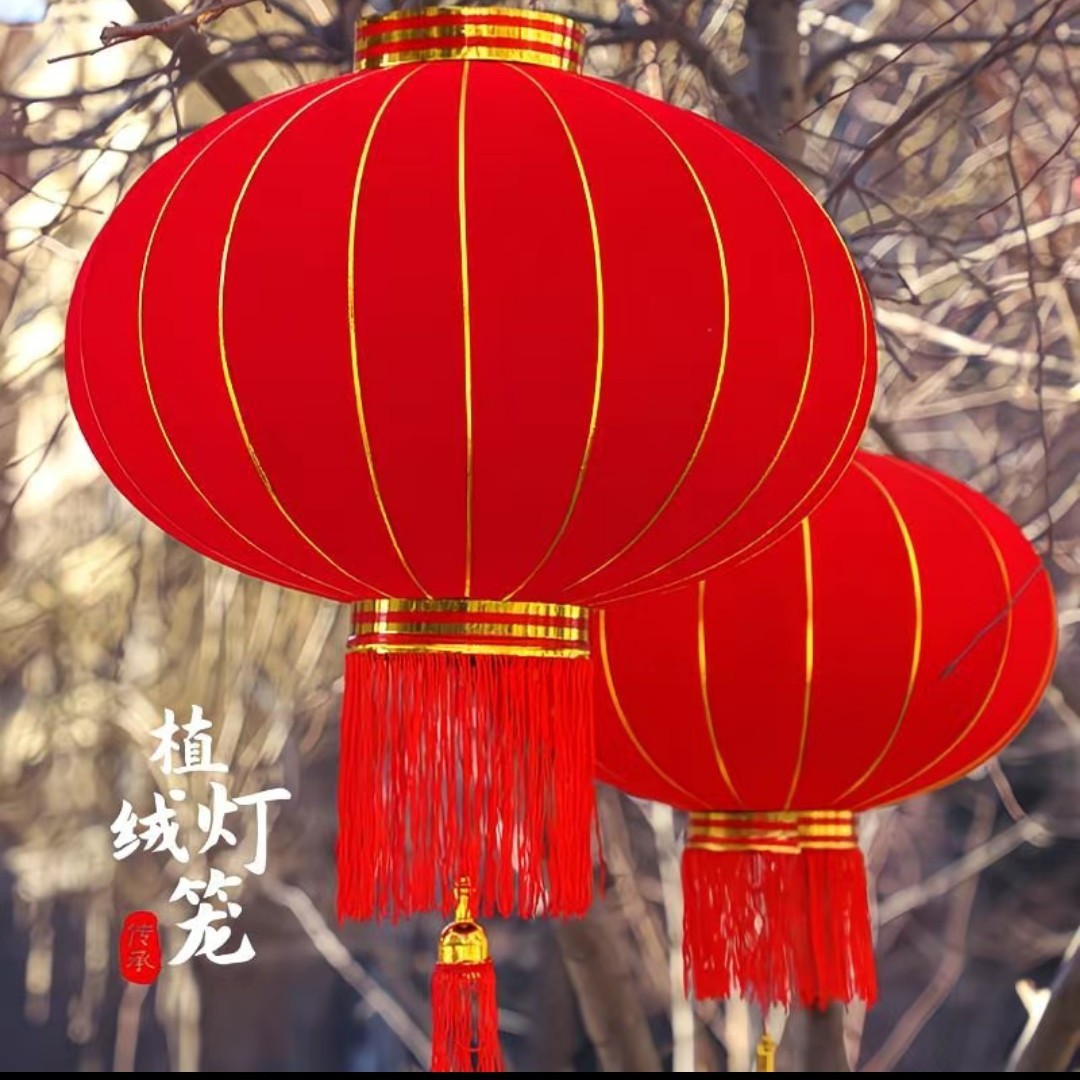 大红灯笼春节元旦大红灯笼 过年大门装饰户外防水灯笼全红植绒灯