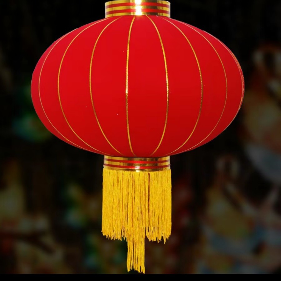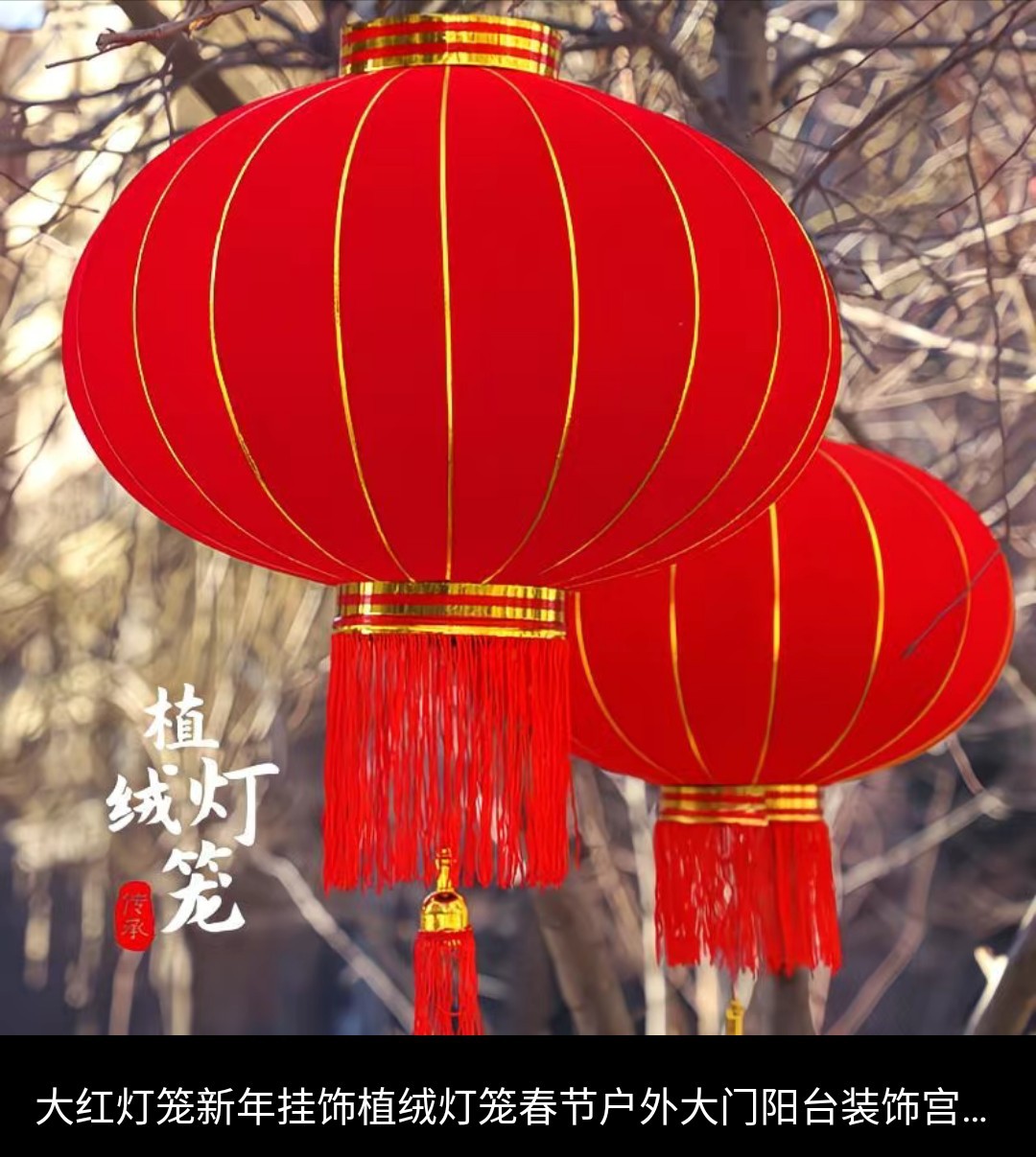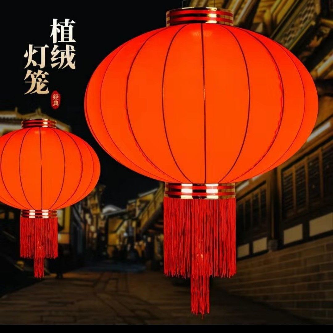 大红灯笼春节元旦大红灯笼 过年大门装饰户外防水灯笼全红植绒灯