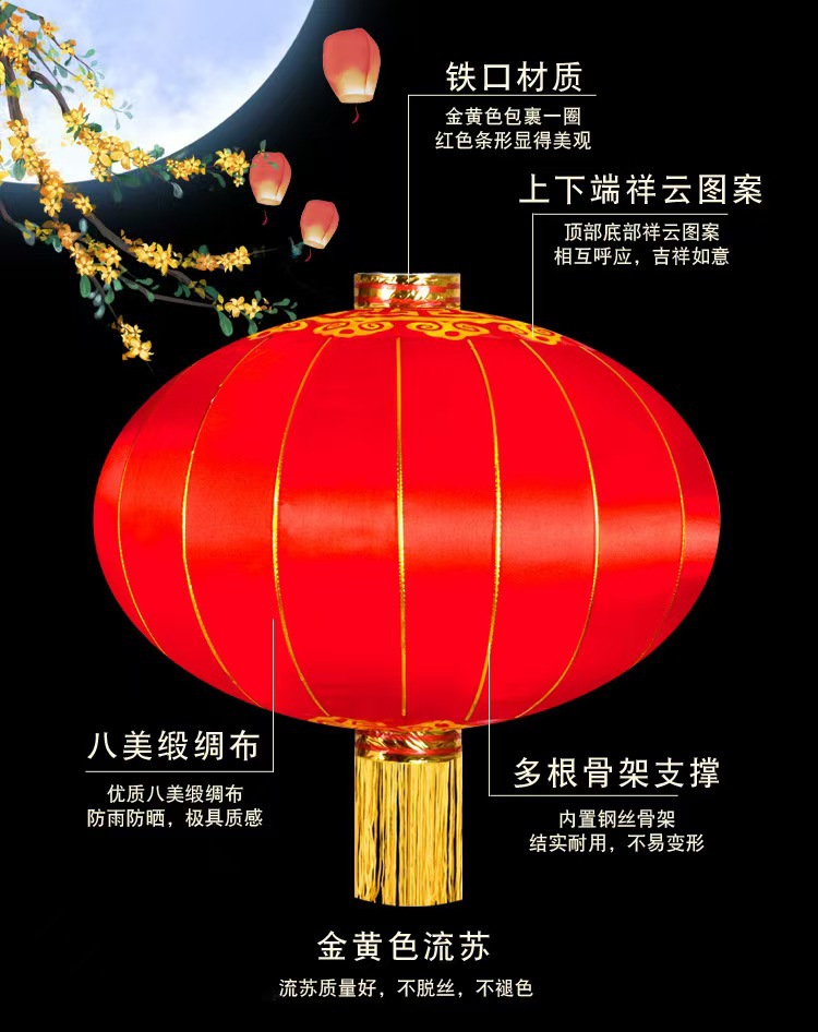 铁口大型灯笼春节防水防晒绸缎灯笼户外大门新年装饰物业大红灯笼