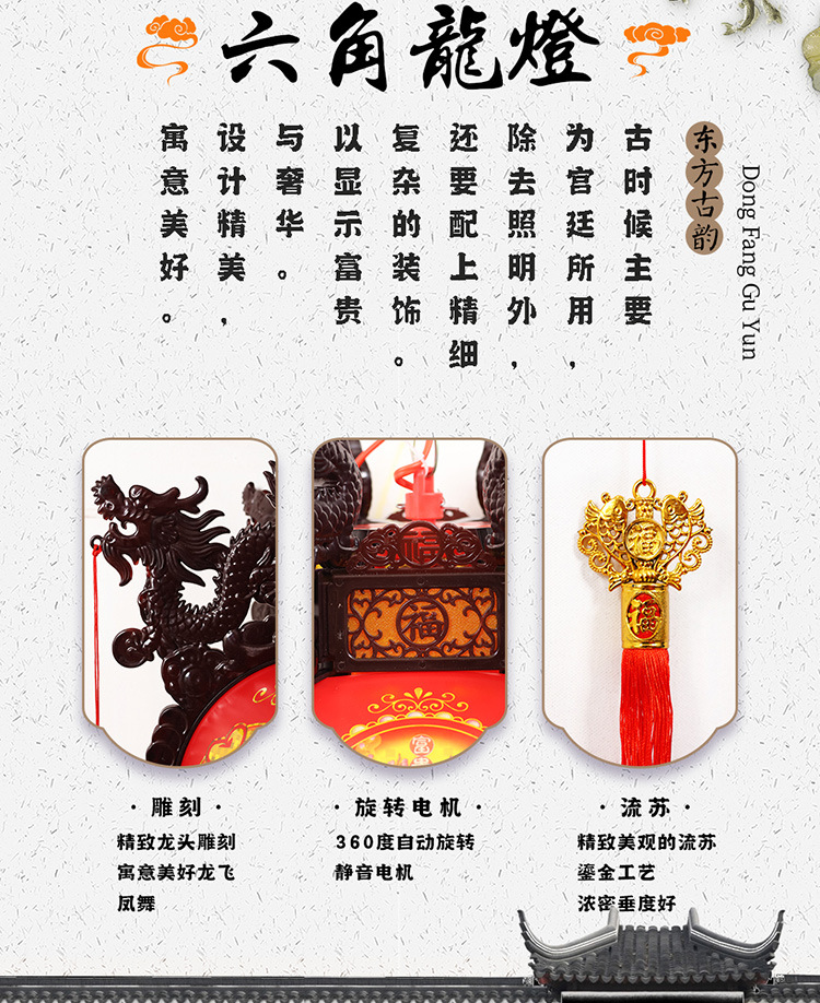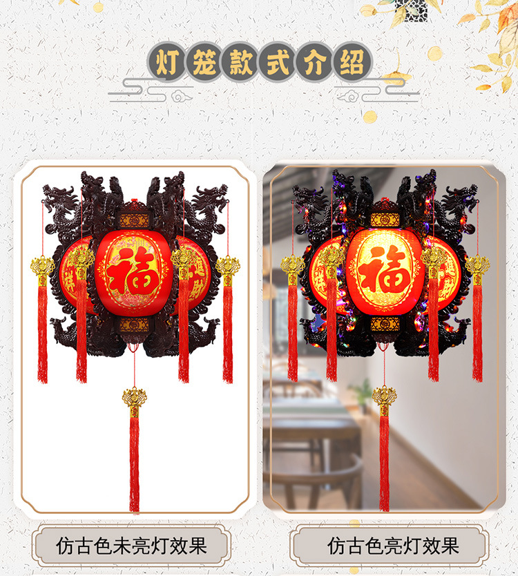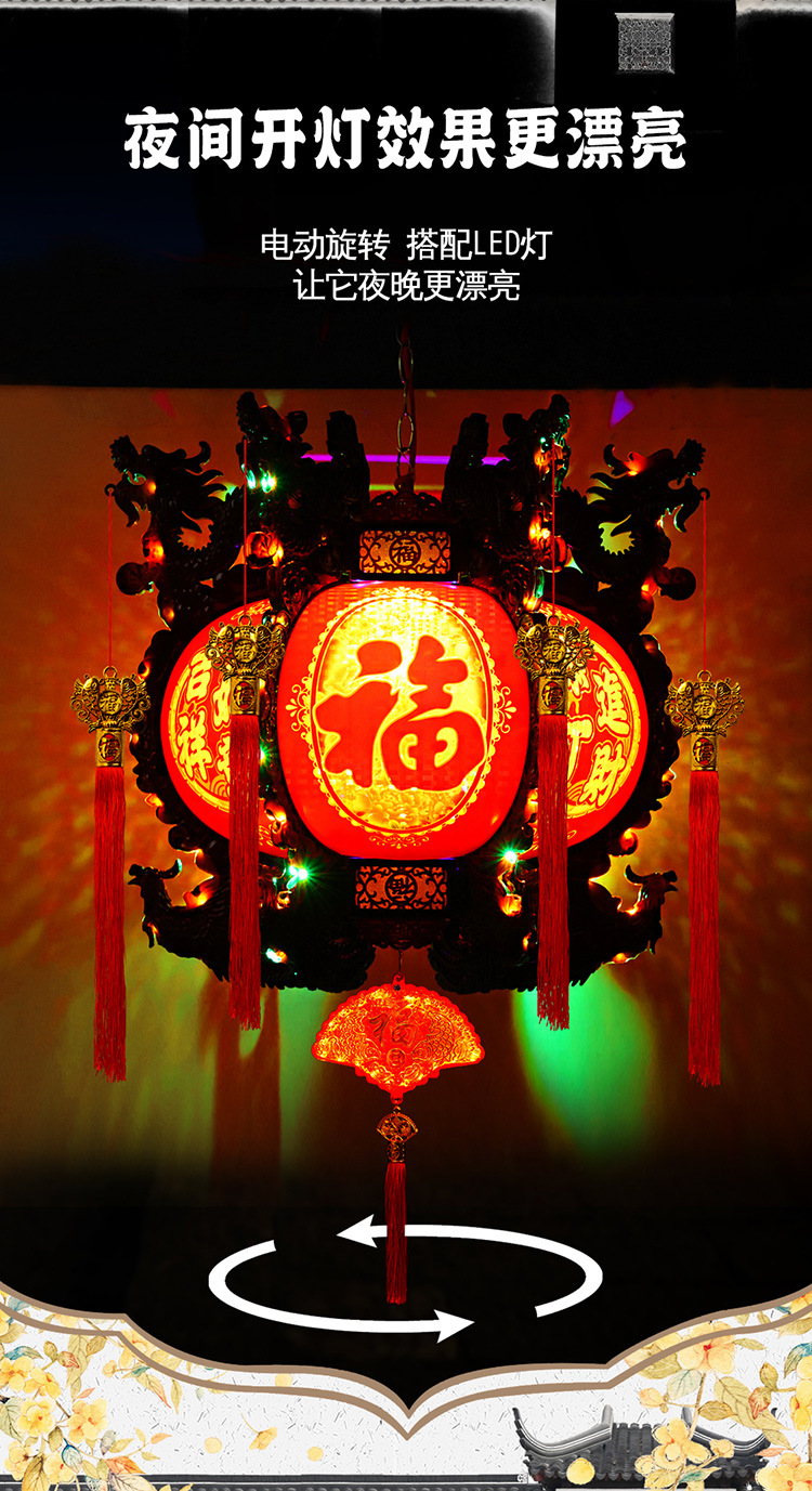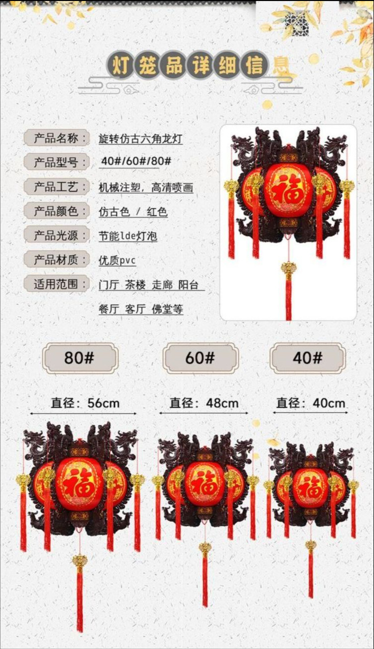 六角龙灯灯笼新中式风走马灯阳台大门室内外新年仿古旋转六角龙灯