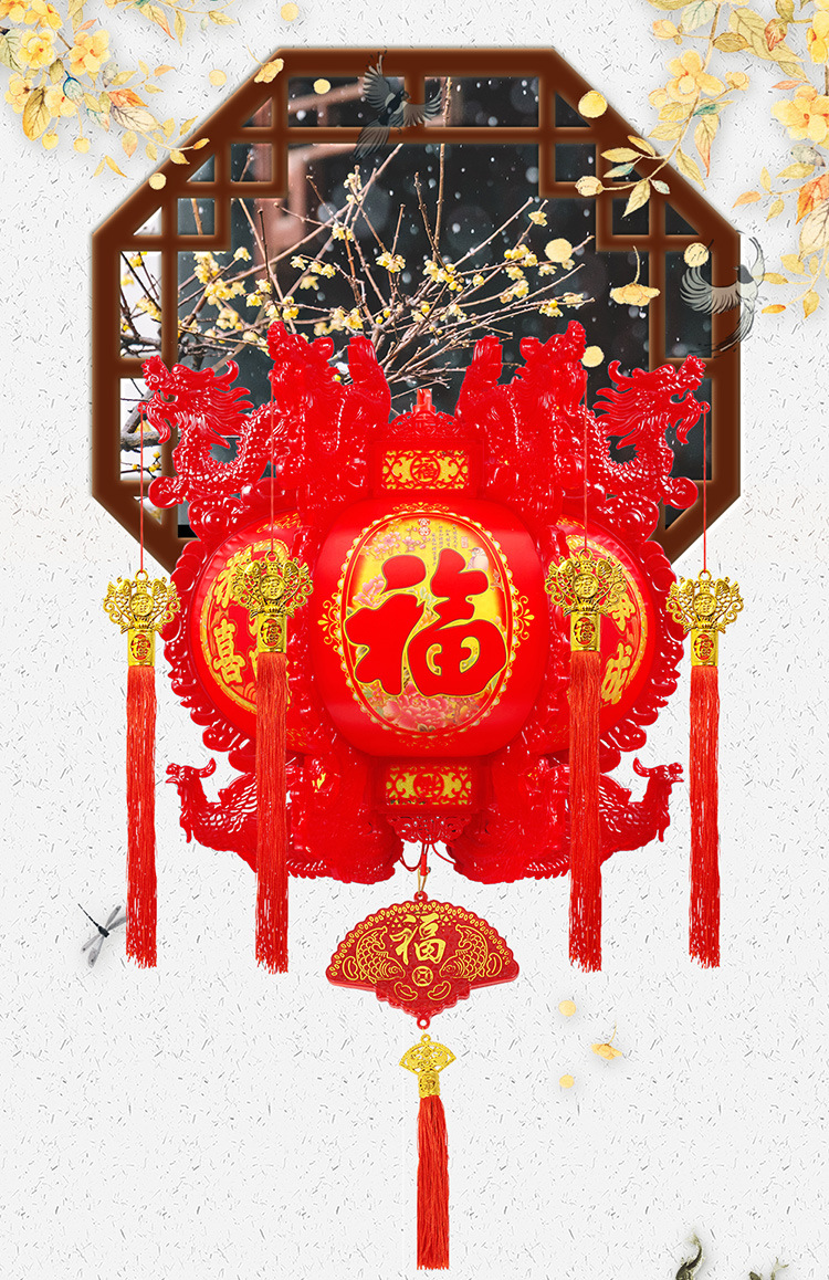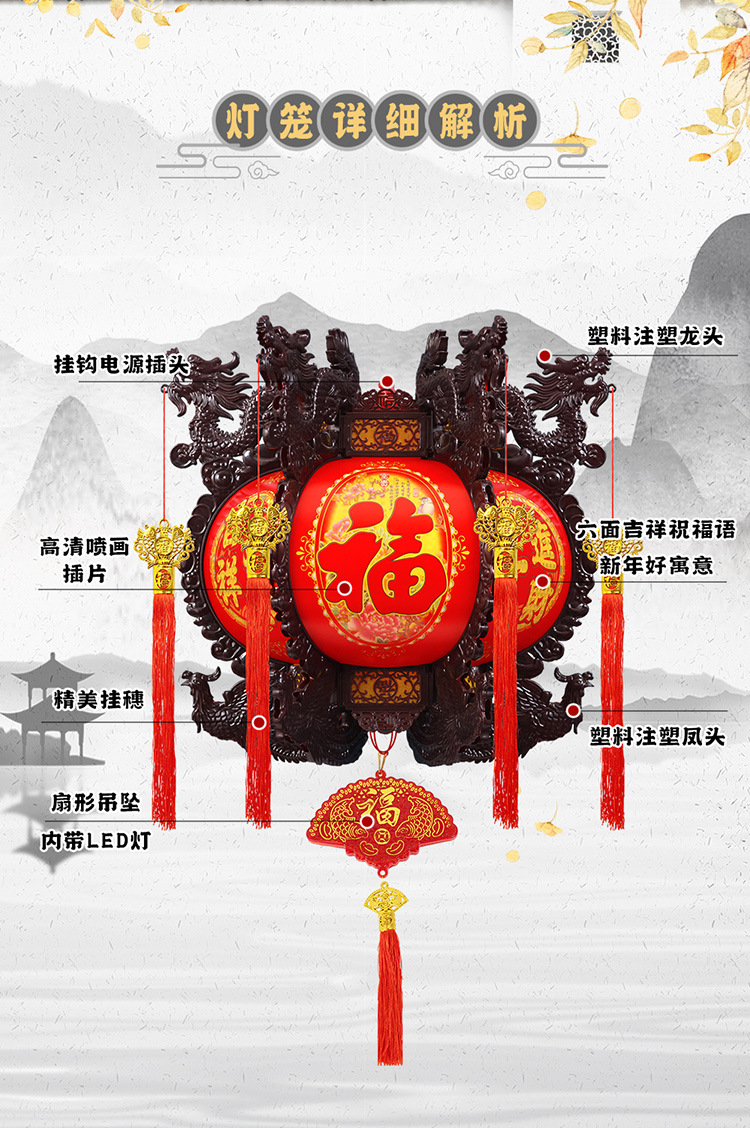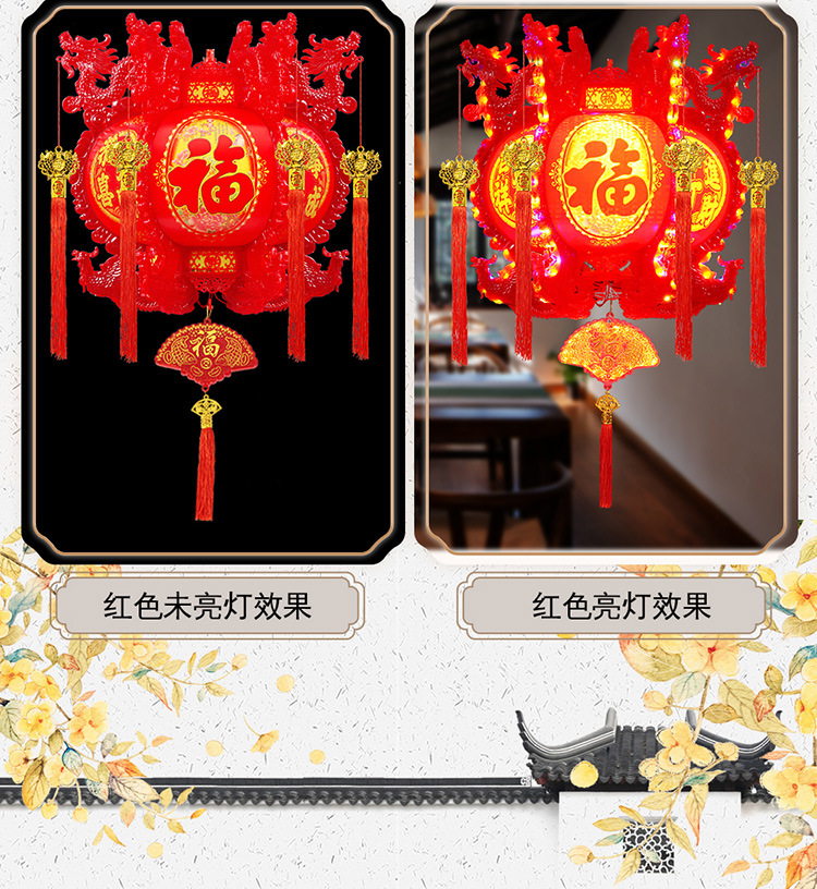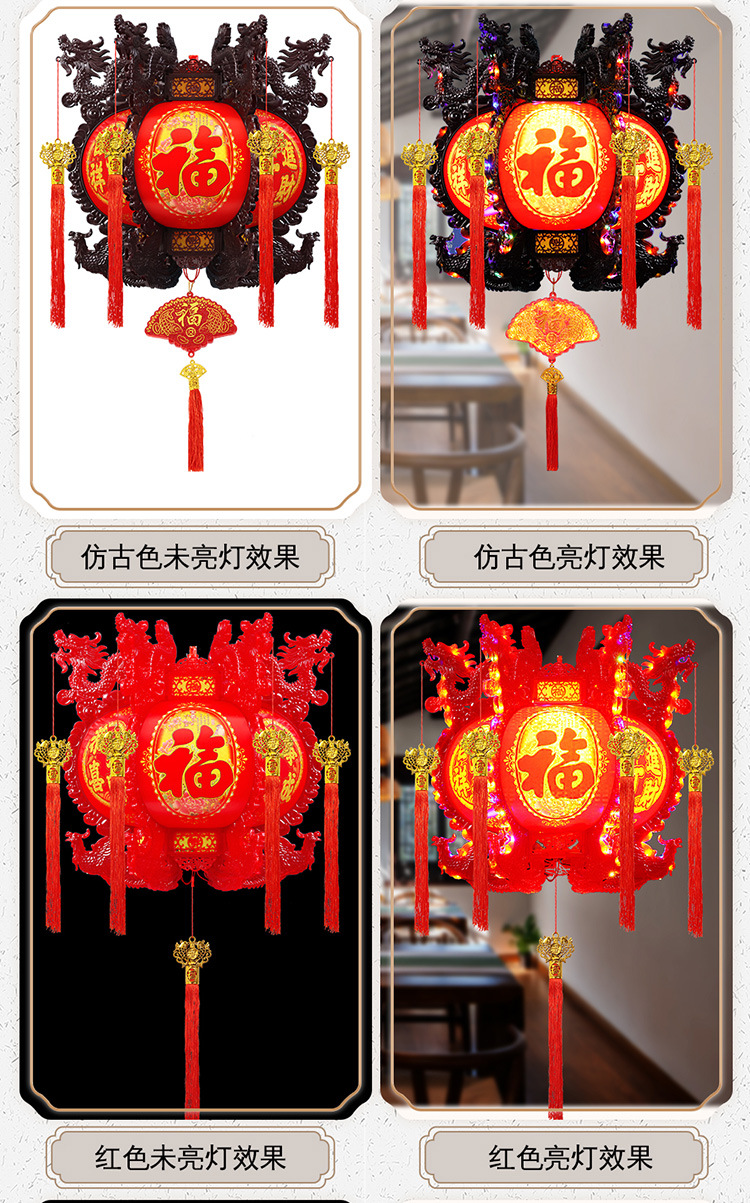 六角龙灯灯笼新中式风走马灯阳台大门室内外新年仿古旋转六角龙灯