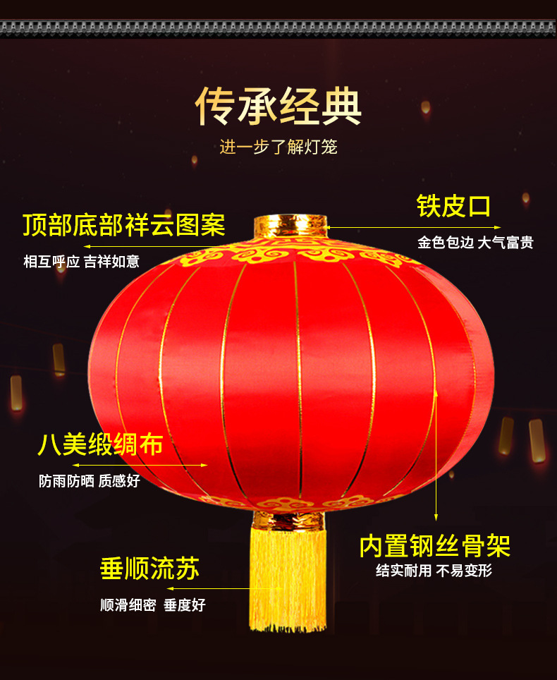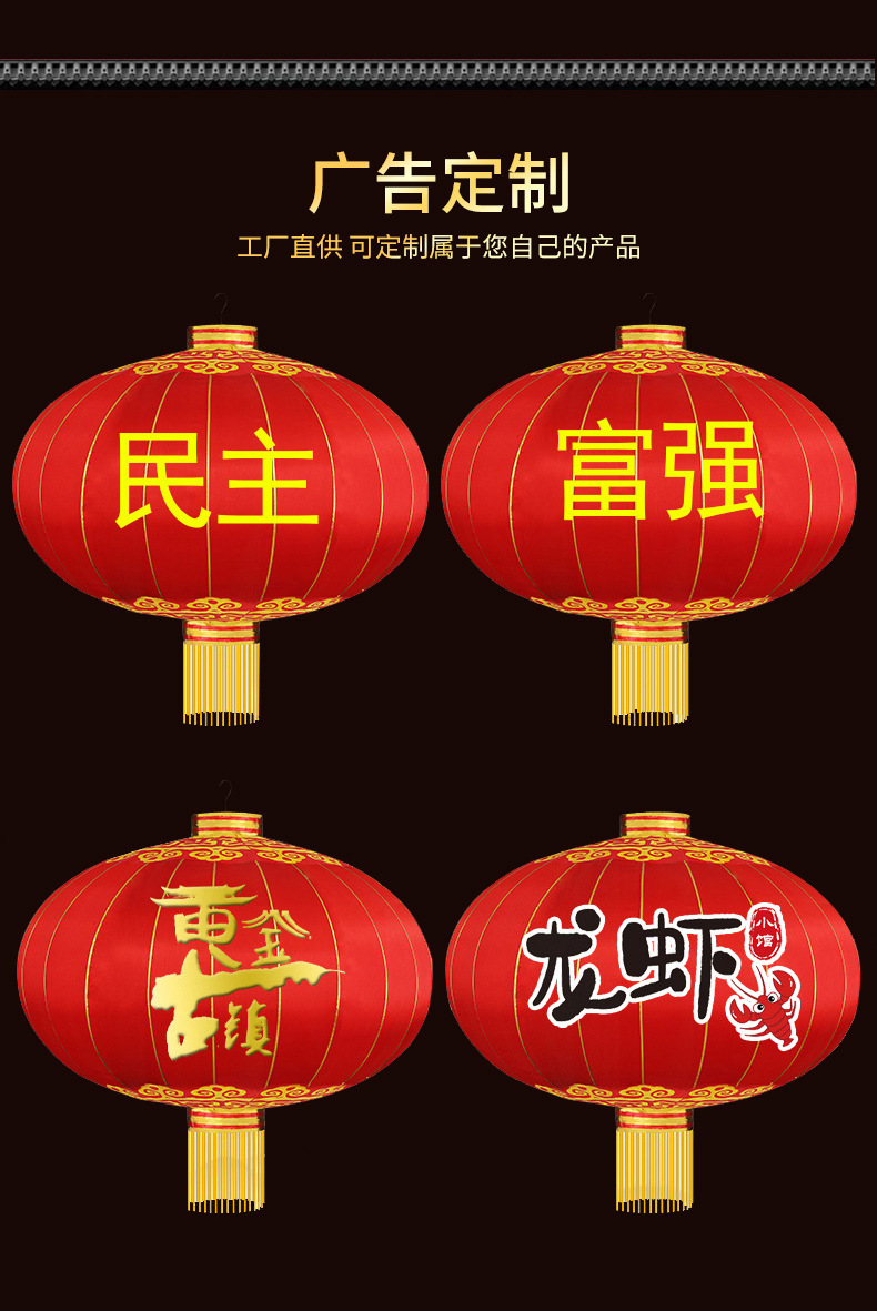 春节铁口灯笼户外防水防晒绸缎大红灯笼广告印字阳台大门新年防雨