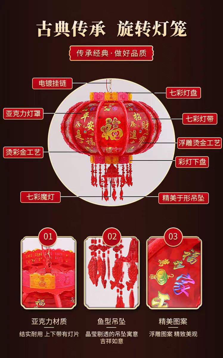 新款七彩灯笼装饰旋转吊灯走马灯阳台红灯笼新年灯笼大门乔迁厂家