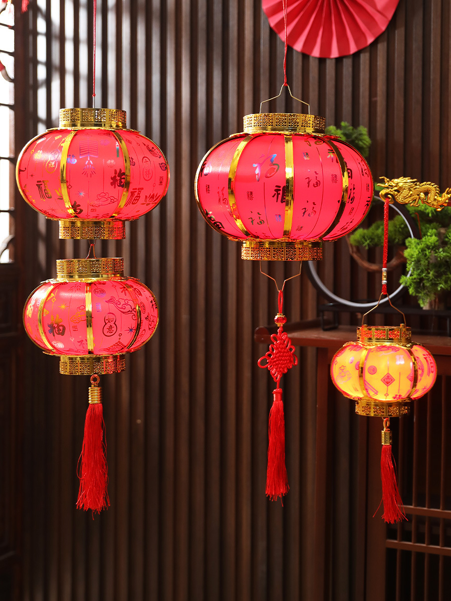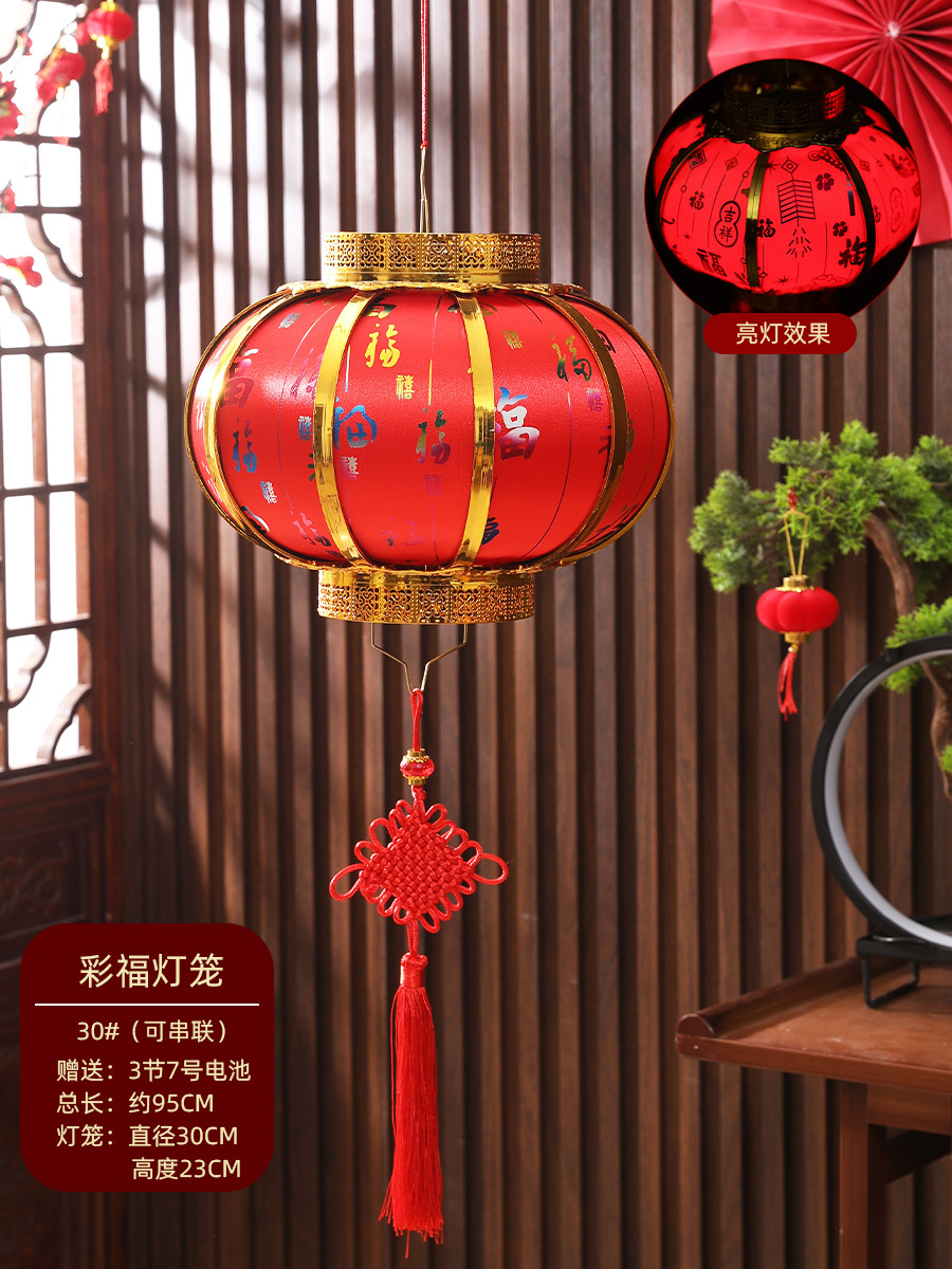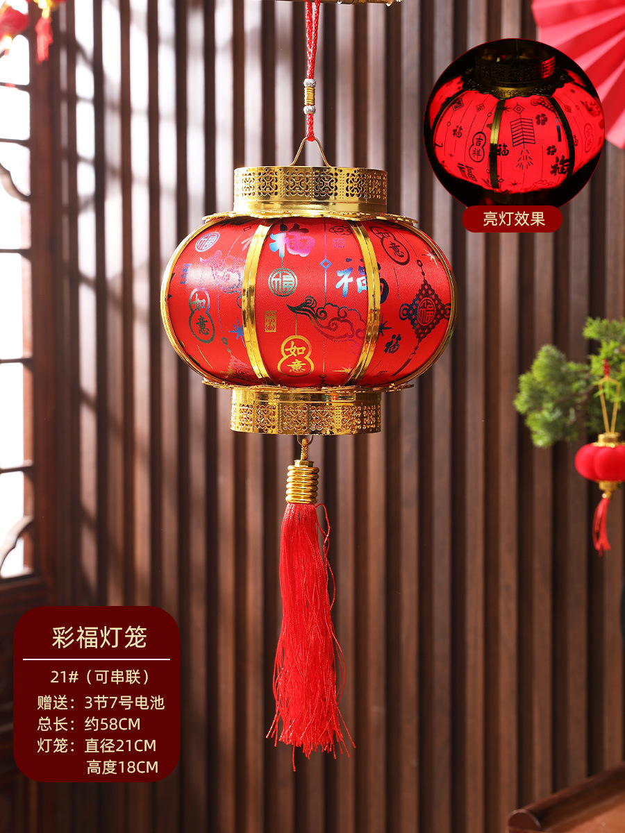 新年春节复古发光灯笼过年福字中式阳台大门大红灯笼元宵灯笼挂饰
