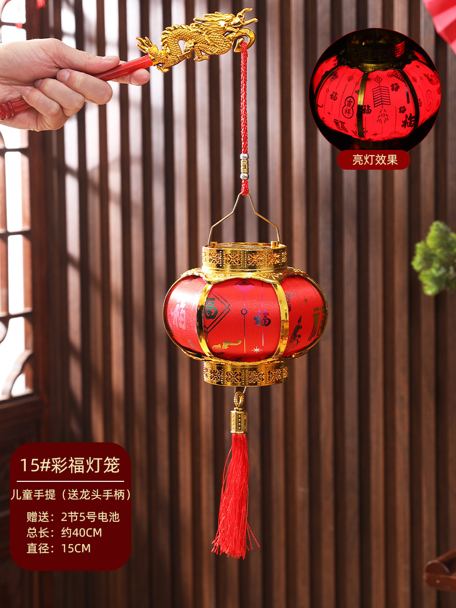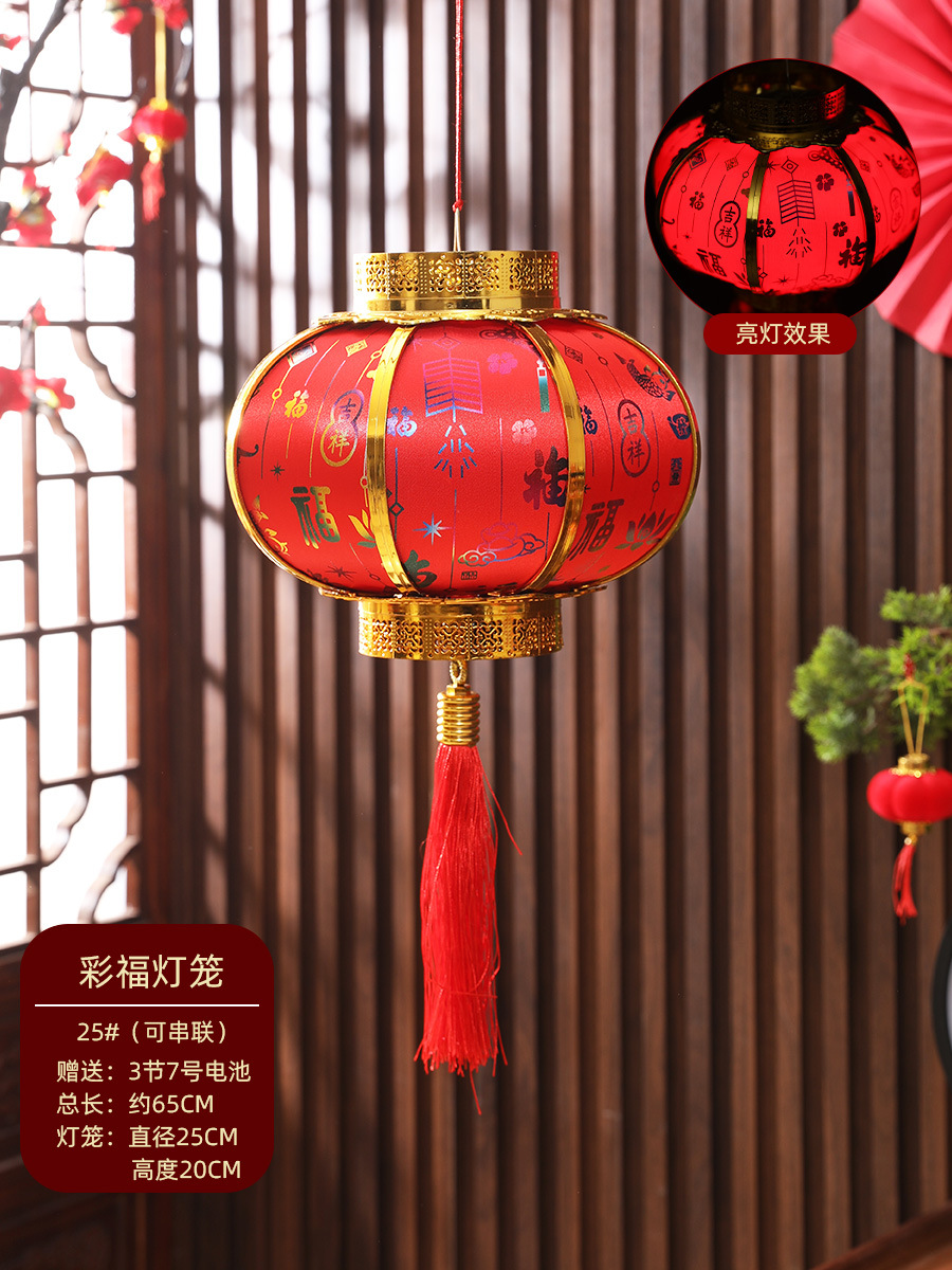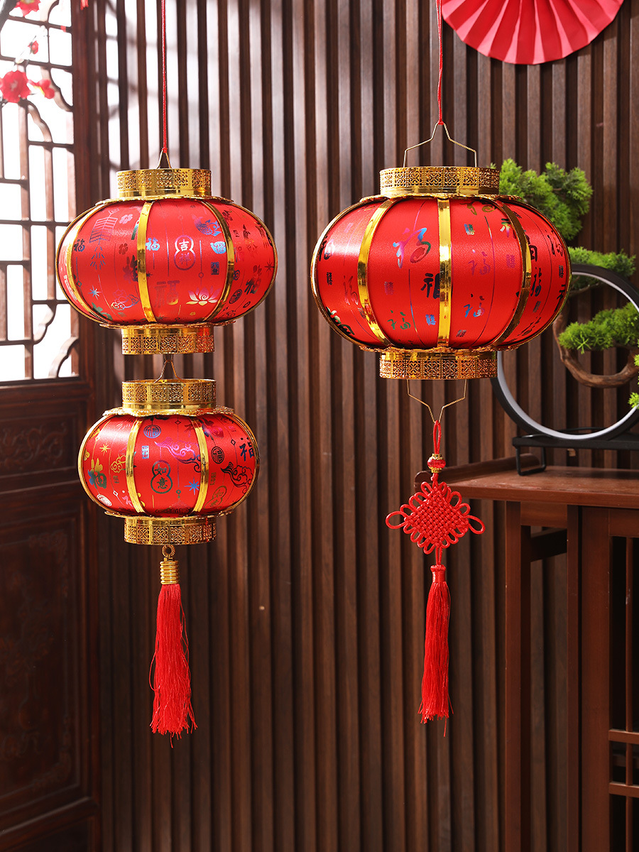 新年春节复古发光灯笼过年福字中式阳台大门大红灯笼元宵灯笼挂饰