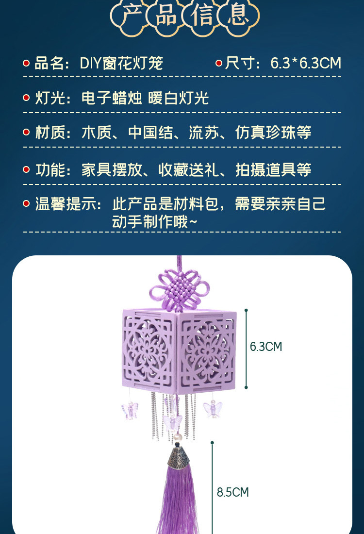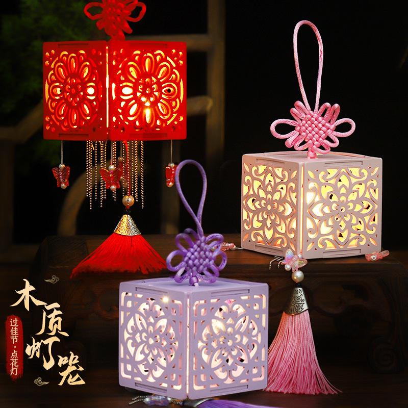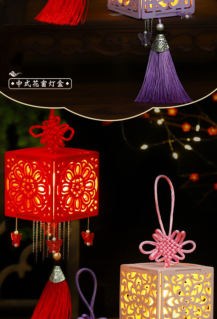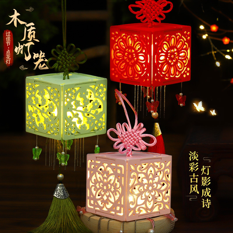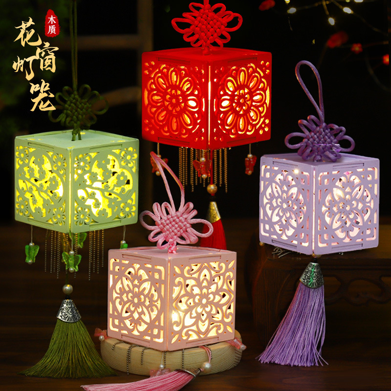 新春元宵灯笼创意仿古花窗儿童DIY木质灯笼材料马年手工元宵花灯