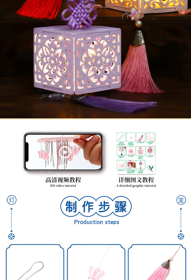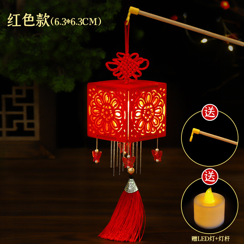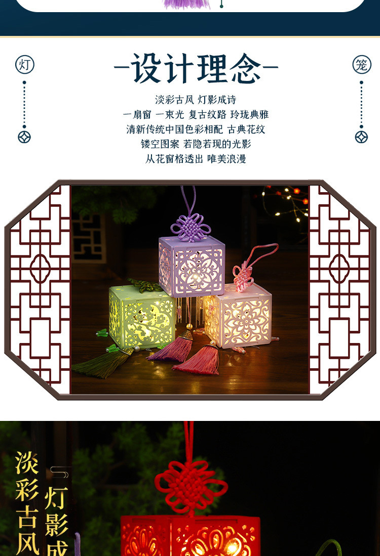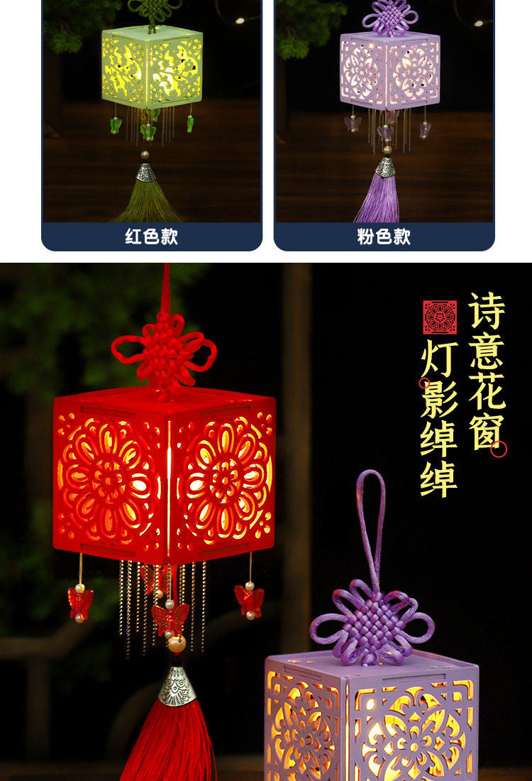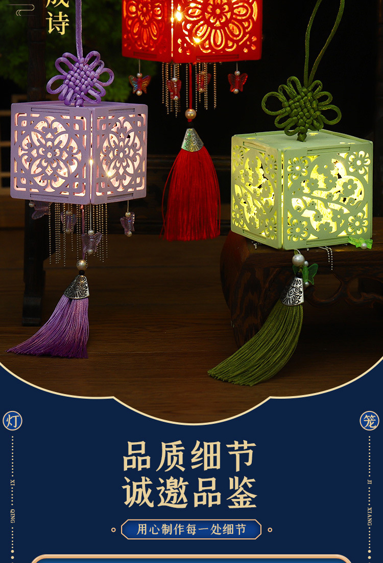 新春元宵灯笼创意仿古花窗儿童DIY木质灯笼材料马年手工元宵花灯
