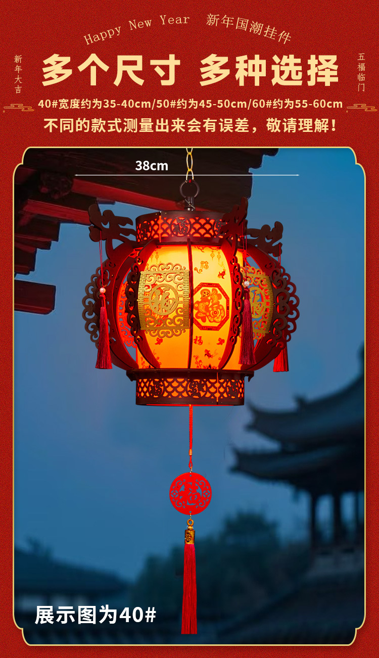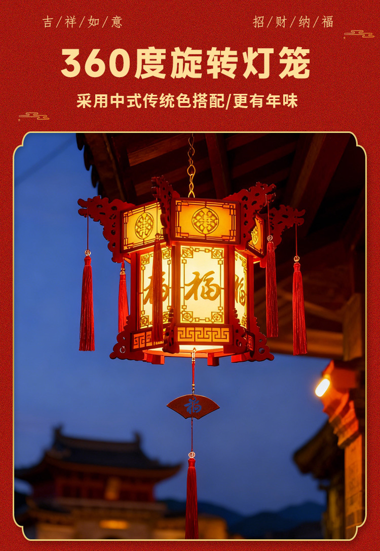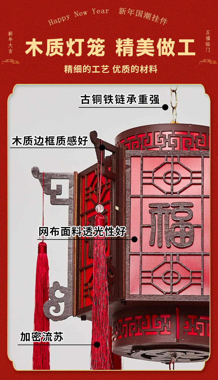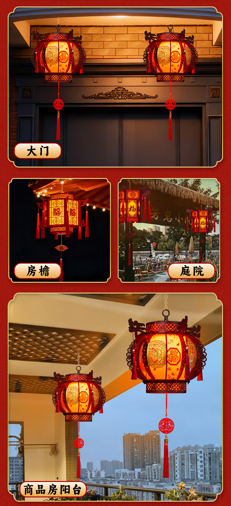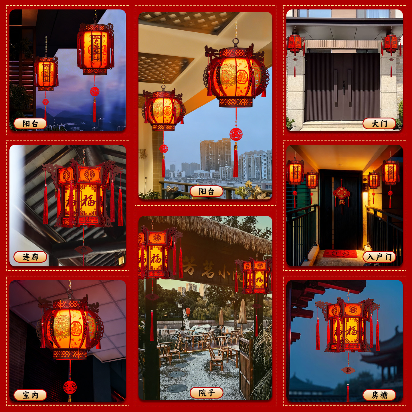 2026新年红灯笼旋转木质宫灯阳台古风圆形led灯马年大门装饰灯笼