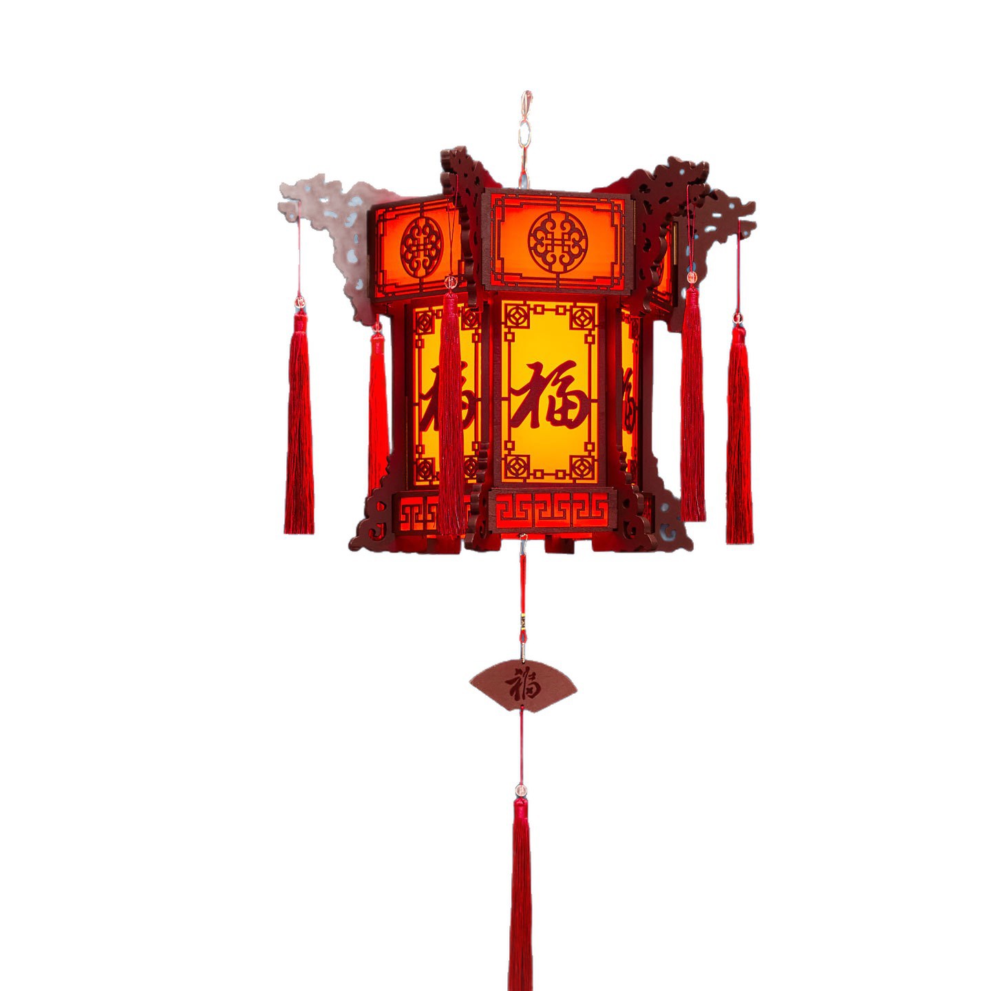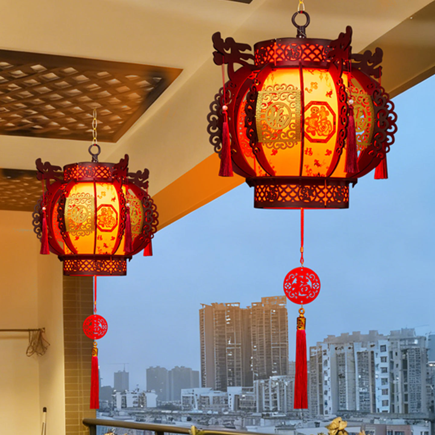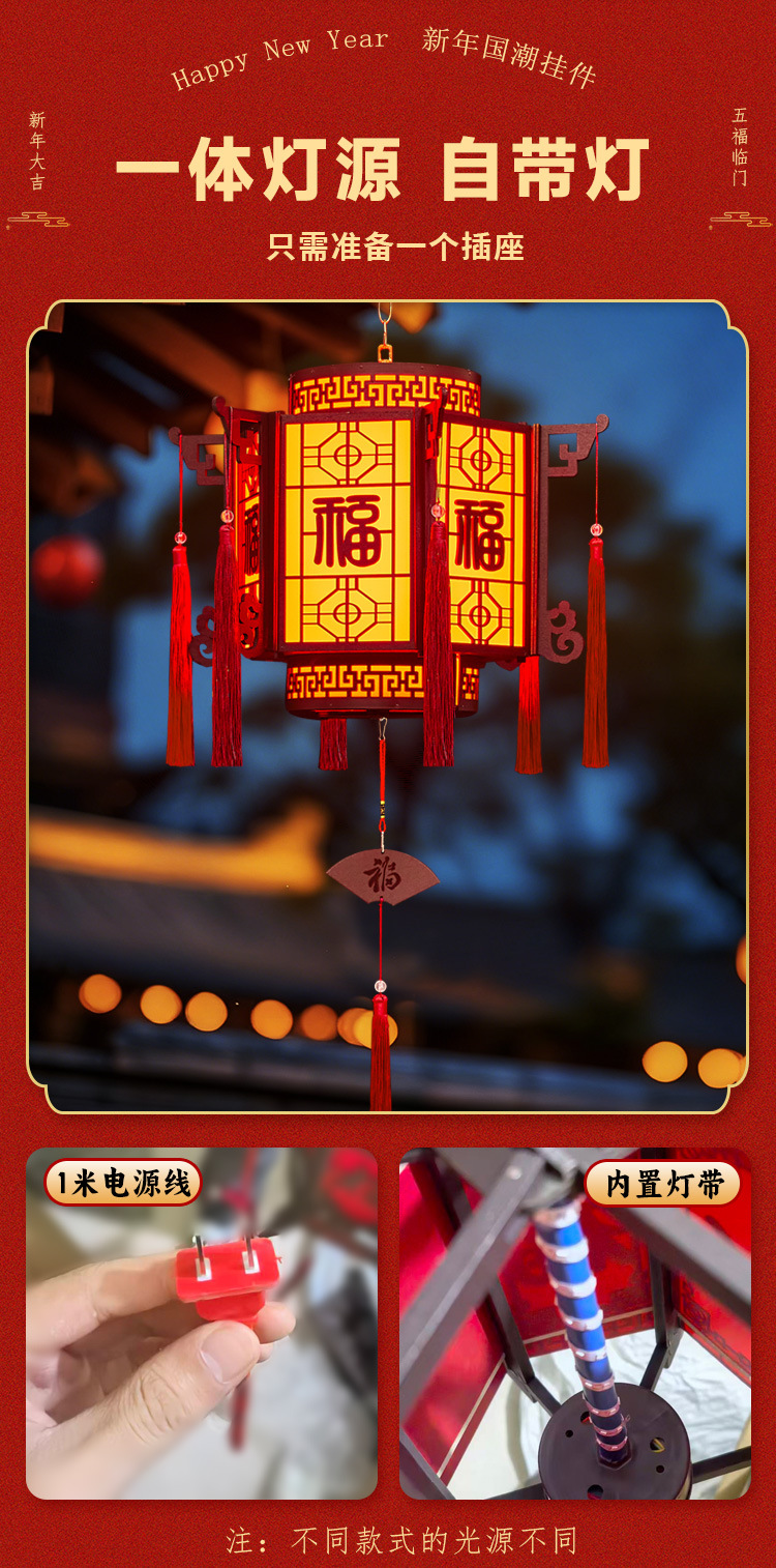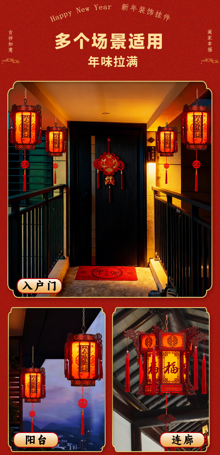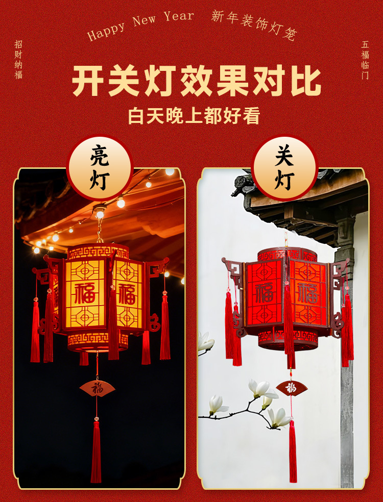 2026新年红灯笼旋转木质宫灯阳台古风圆形led灯马年大门装饰灯笼