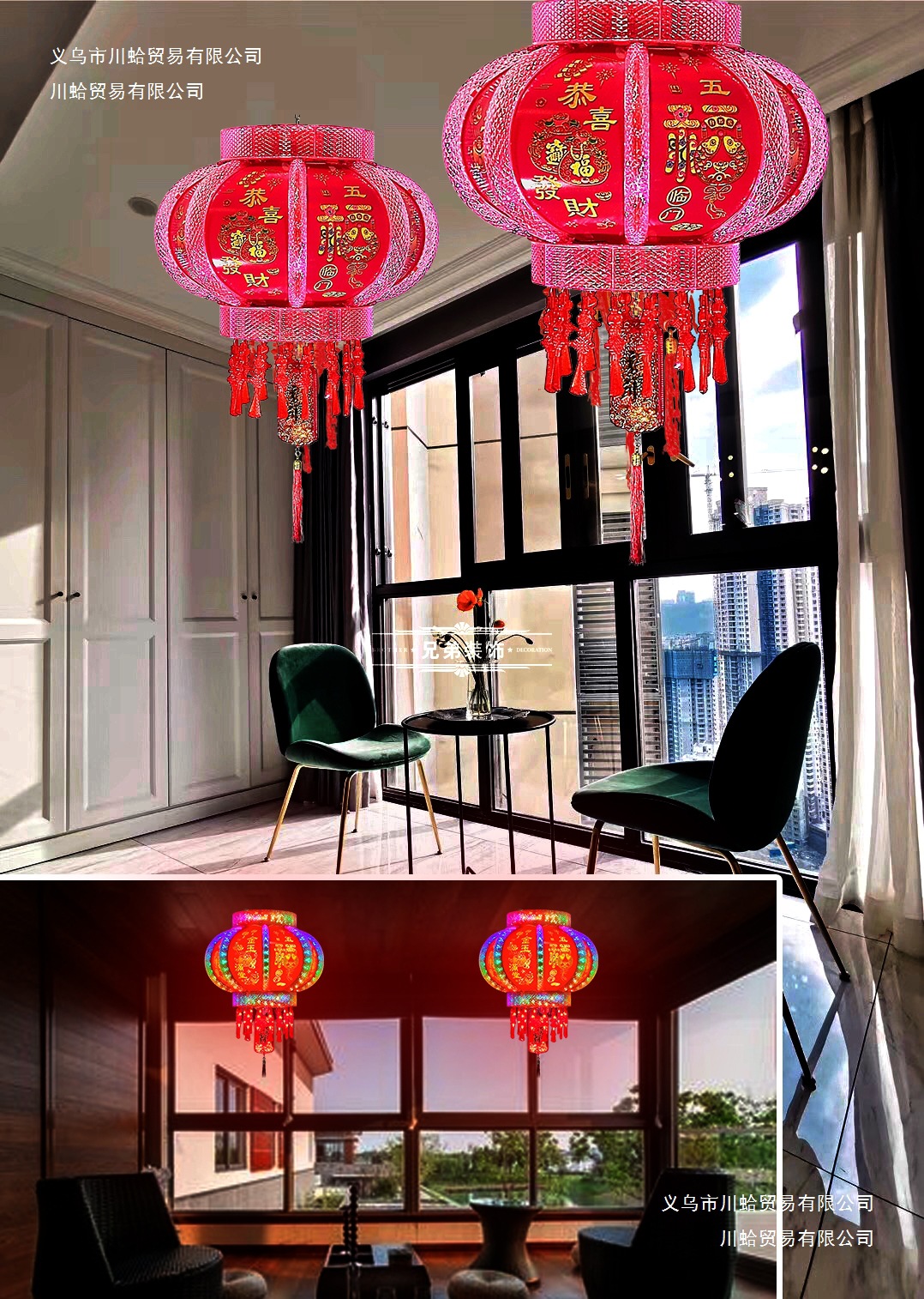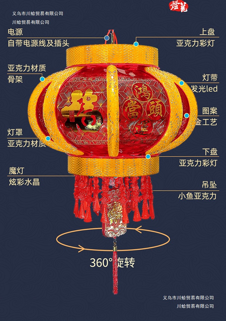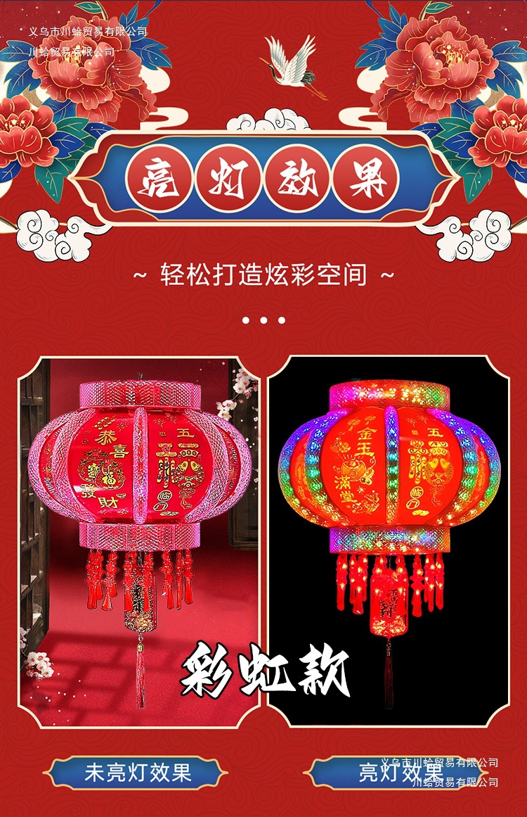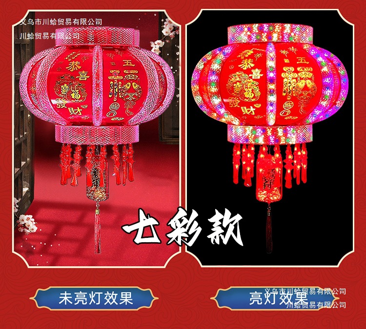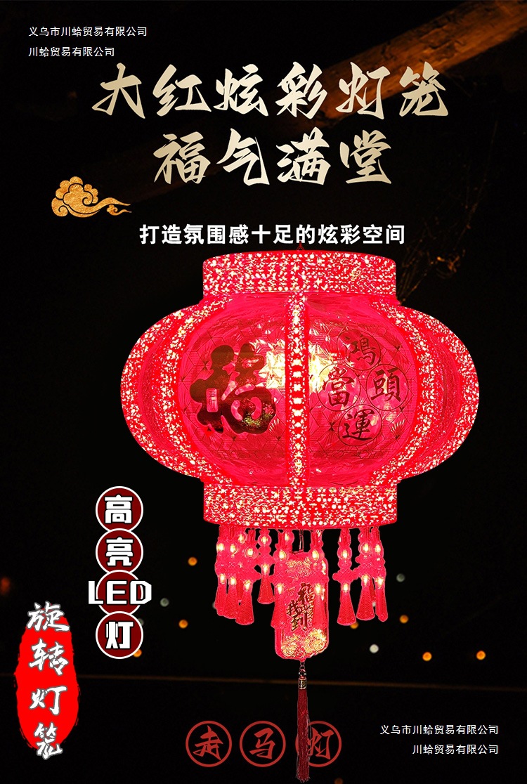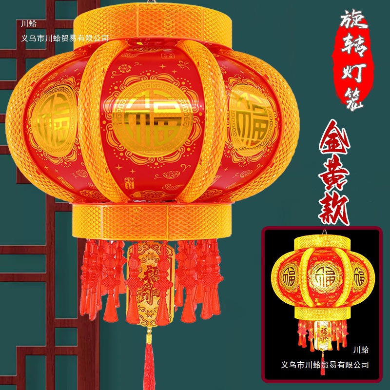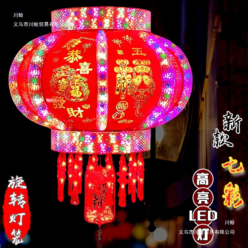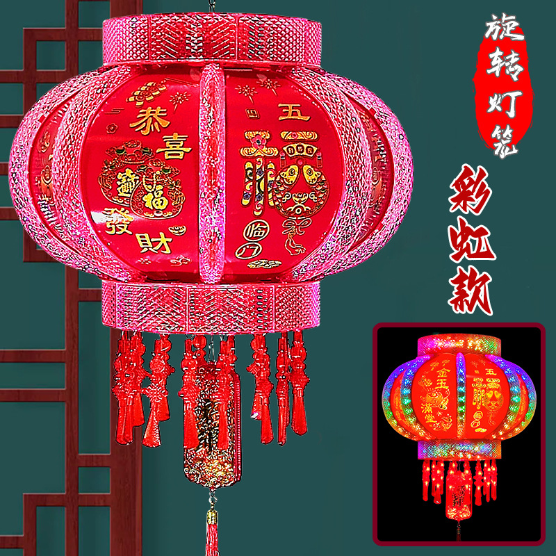 七彩发光旋转走马灯笼新年春节乔迁结婚阳台大门一对室内福字灯笼