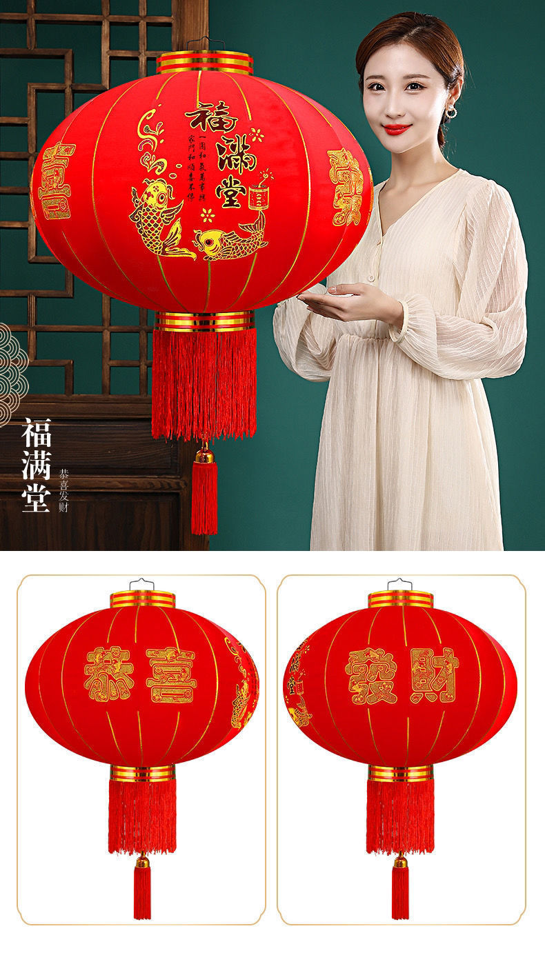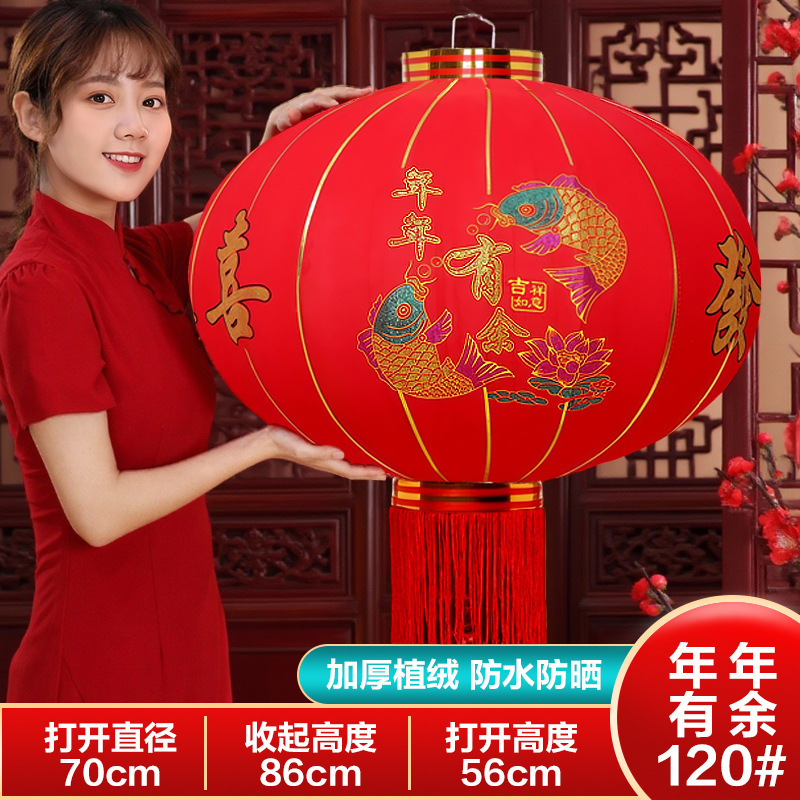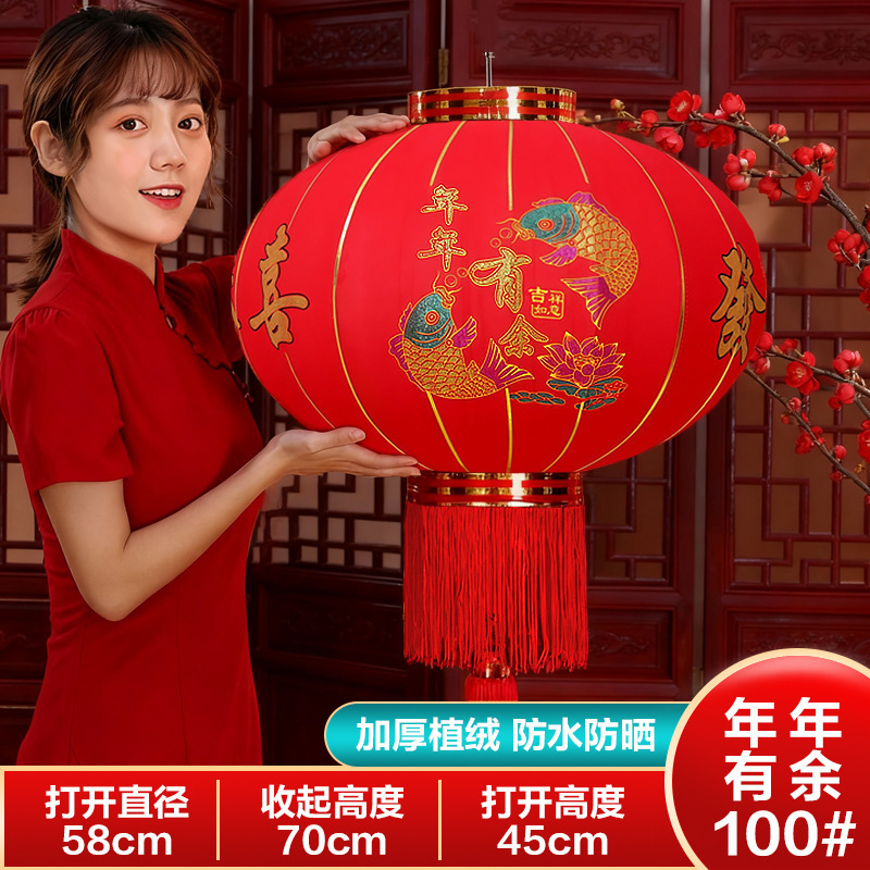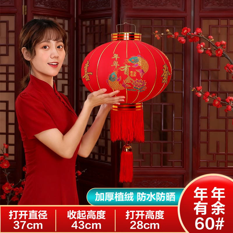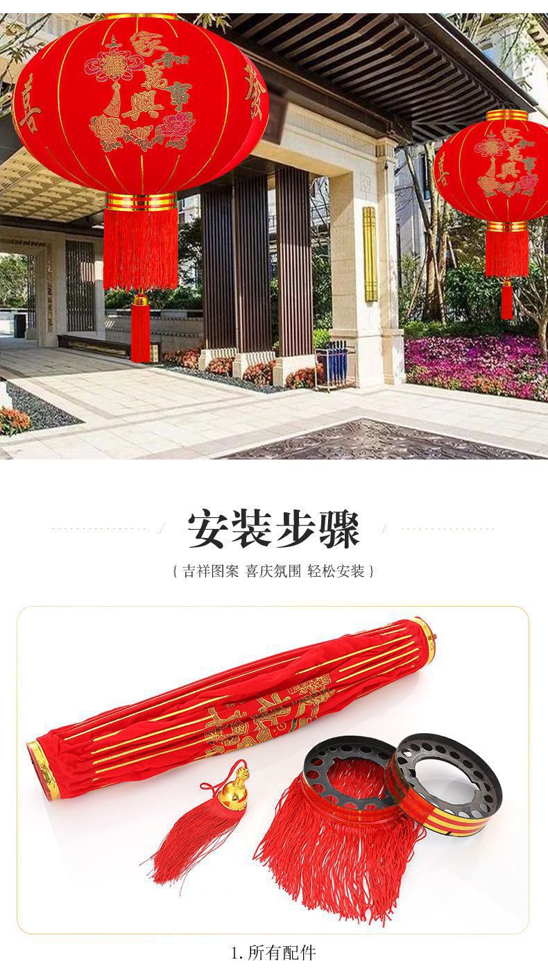 灯笼2025新款植绒新年户外春节农村过年大门装饰大红灯笼挂饰一对