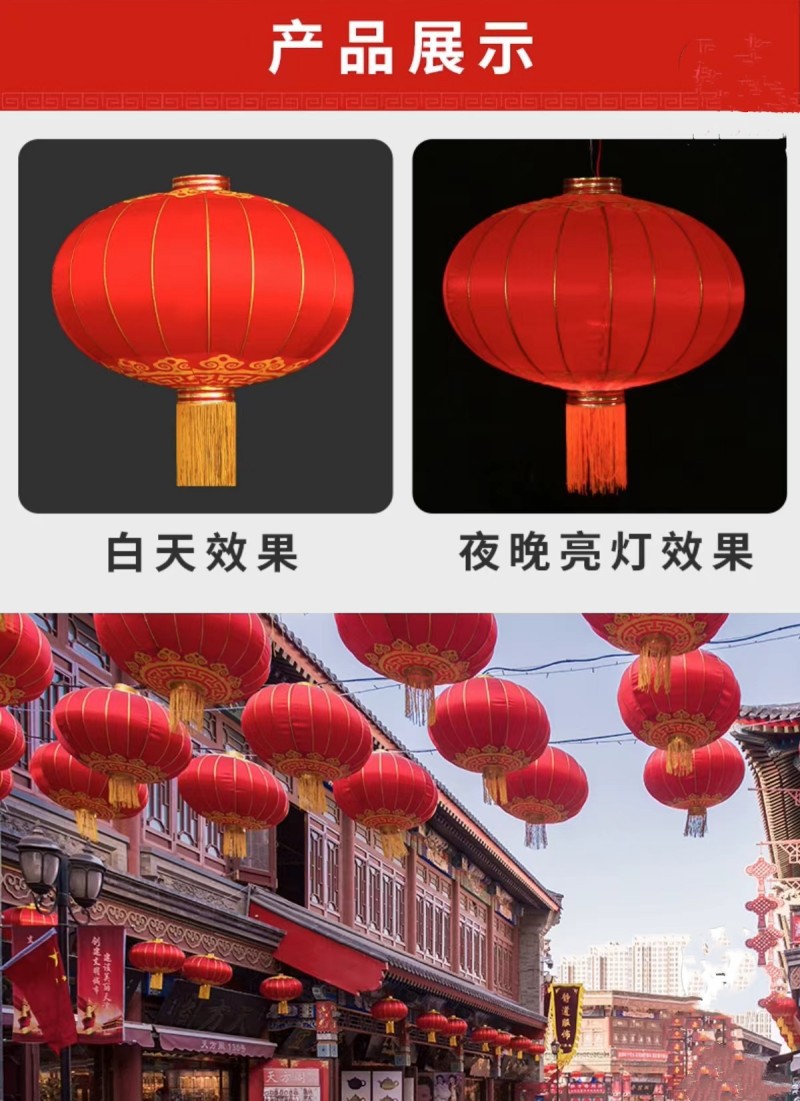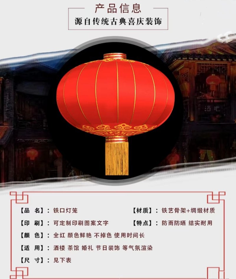 灯笼过年装饰大门景区灯笼户外防水铁口绸布广告印字宫灯发光装饰