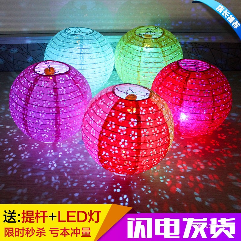幼儿园DIY手工制作材料包中秋节儿童手提LED发光镂空纸灯笼花灯