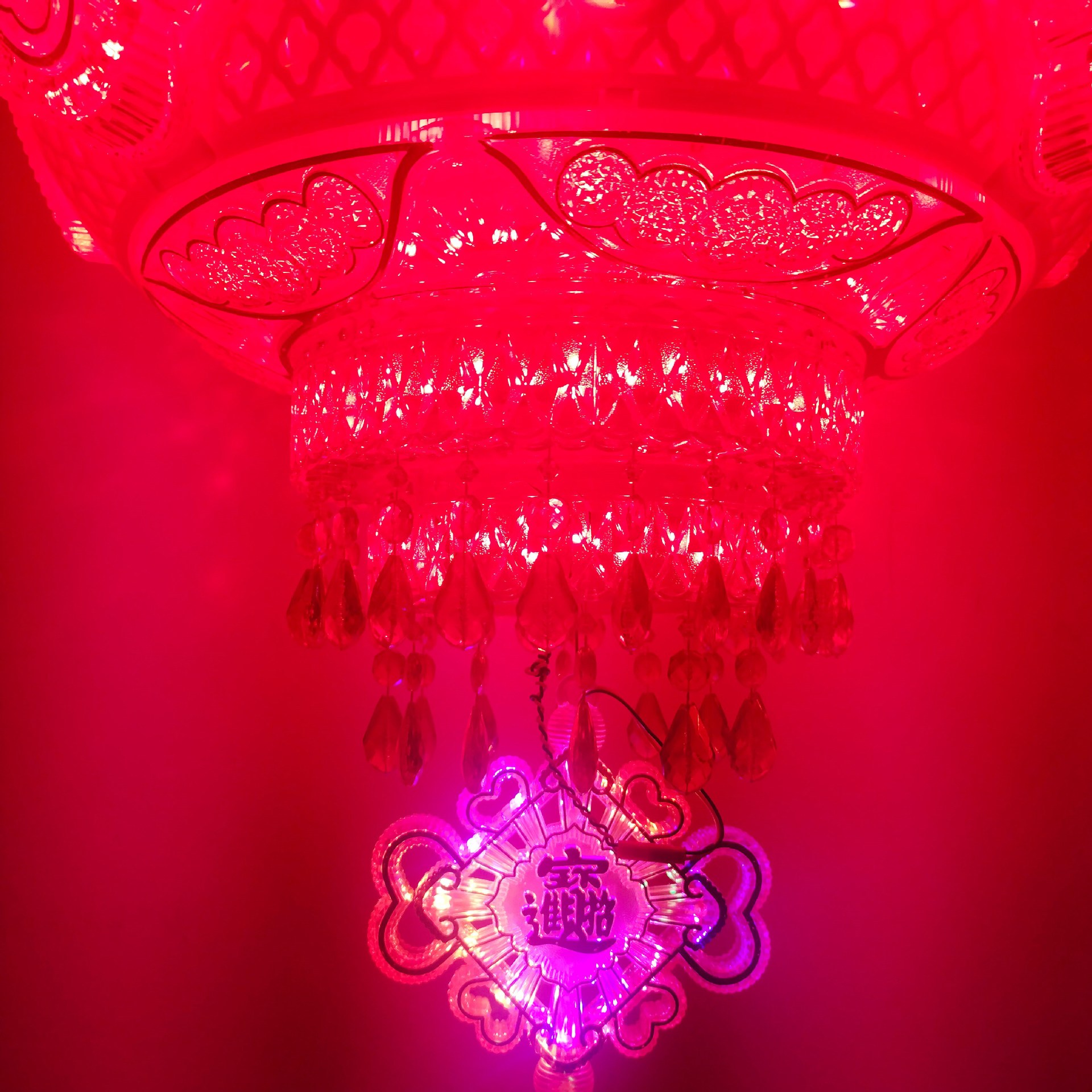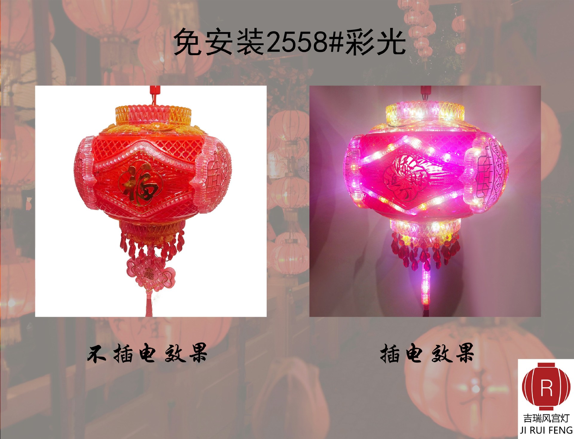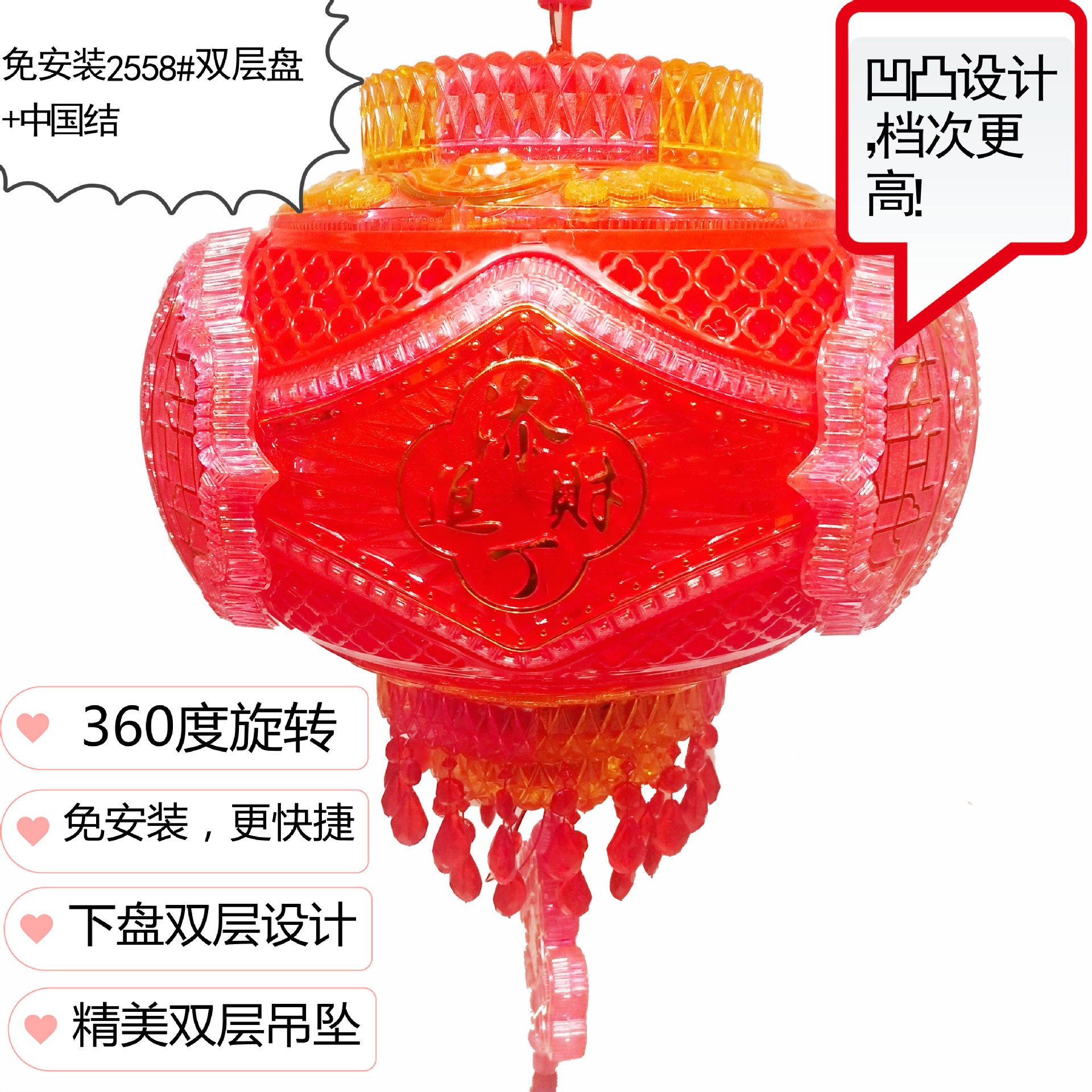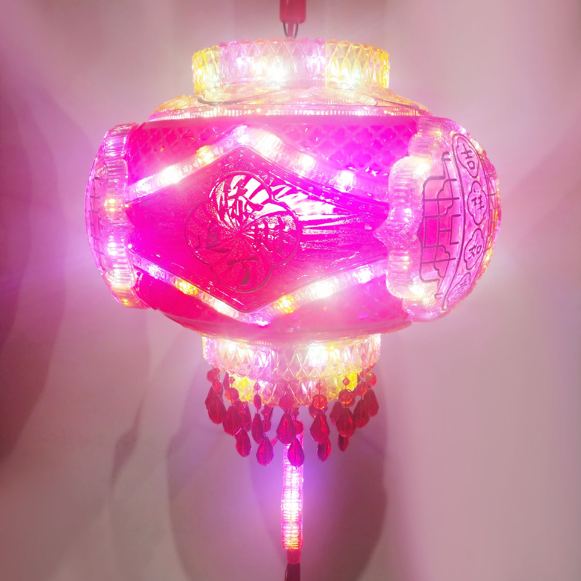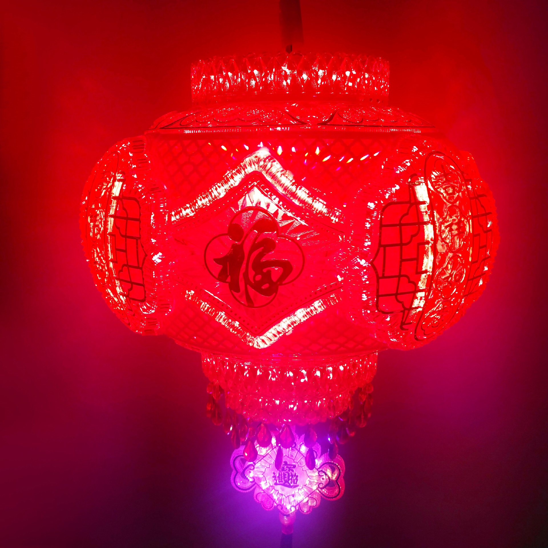 新年春节LED七彩旋转走马灯笼乔迁吊灯阳台大门红结婚喜福字灯笼