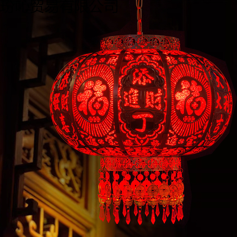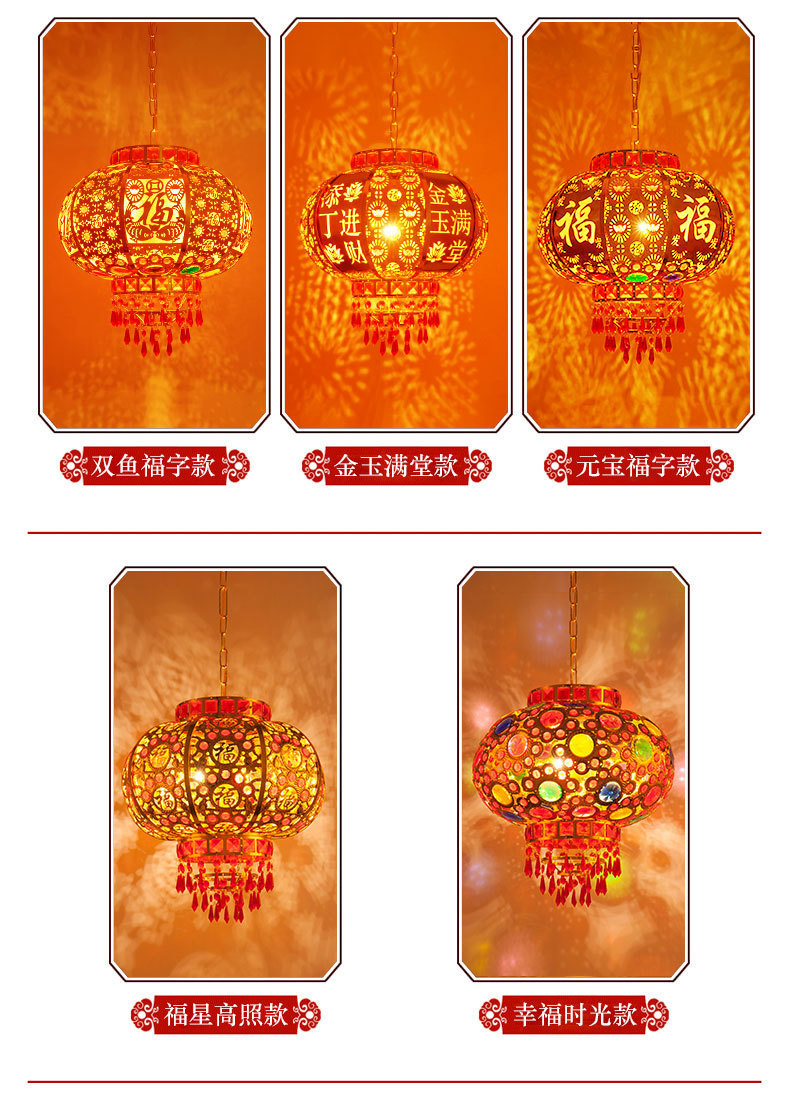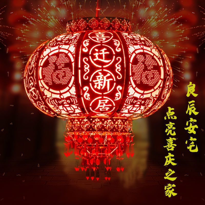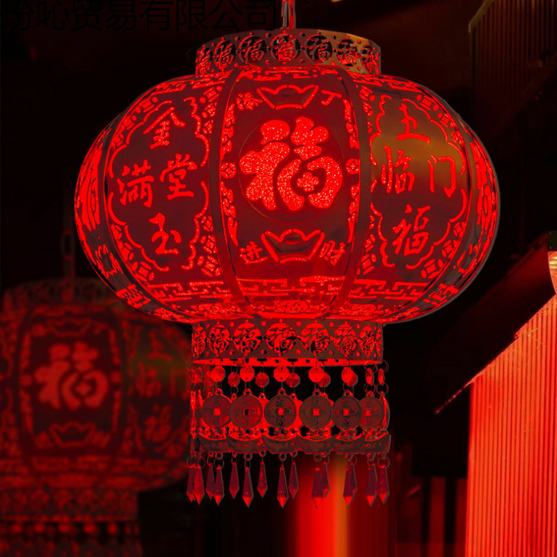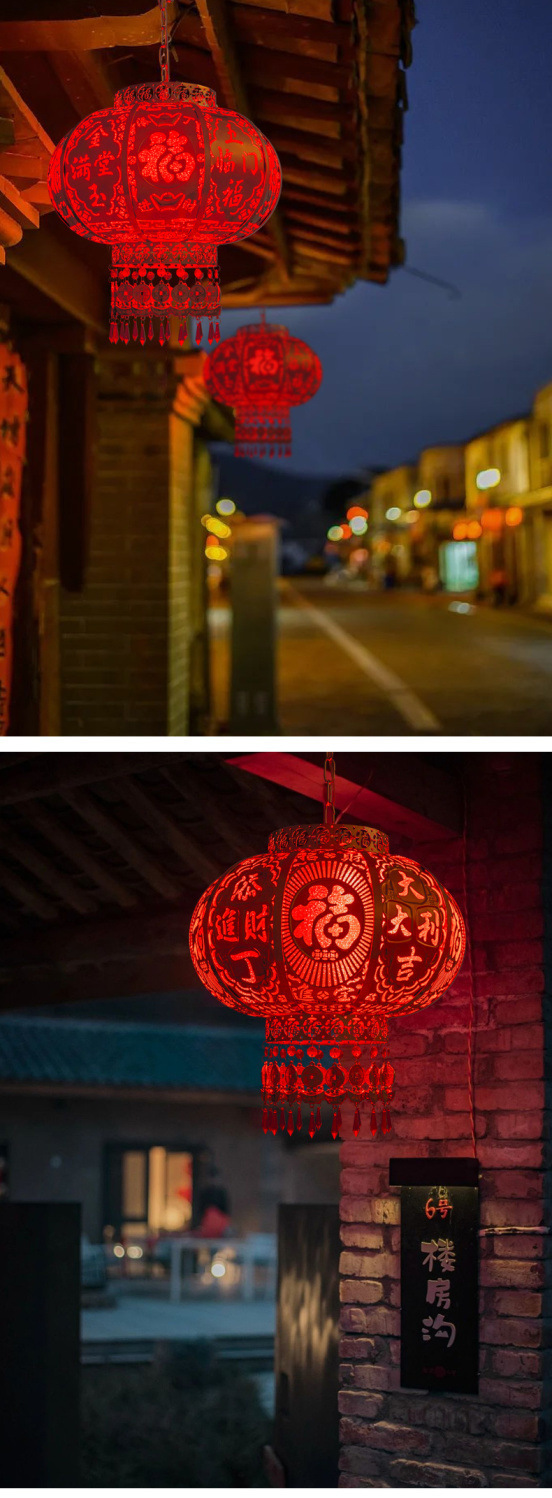 2025新款新年旋转红灯笼大门过年春节灯笼走马灯七彩阳台灯笼