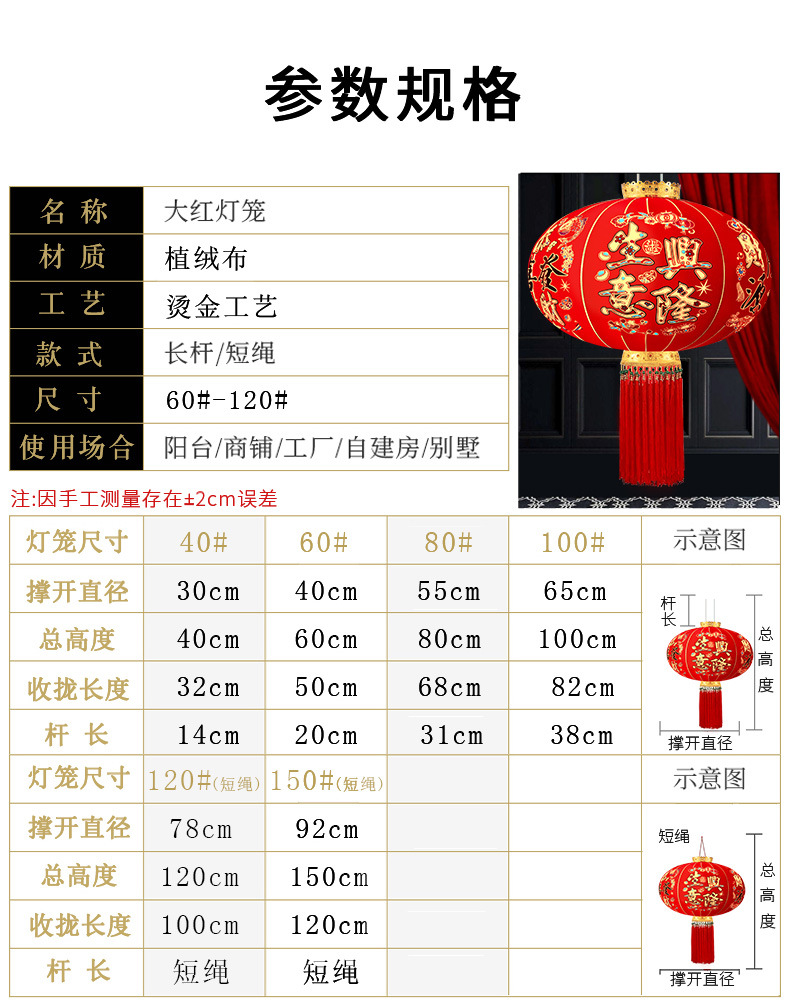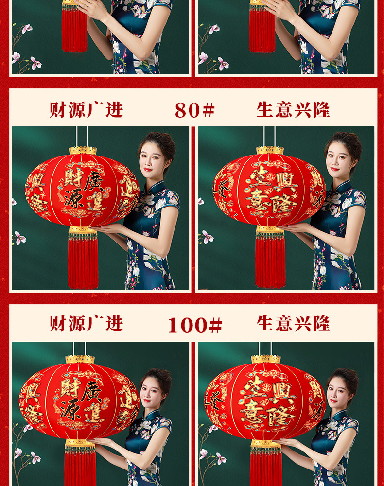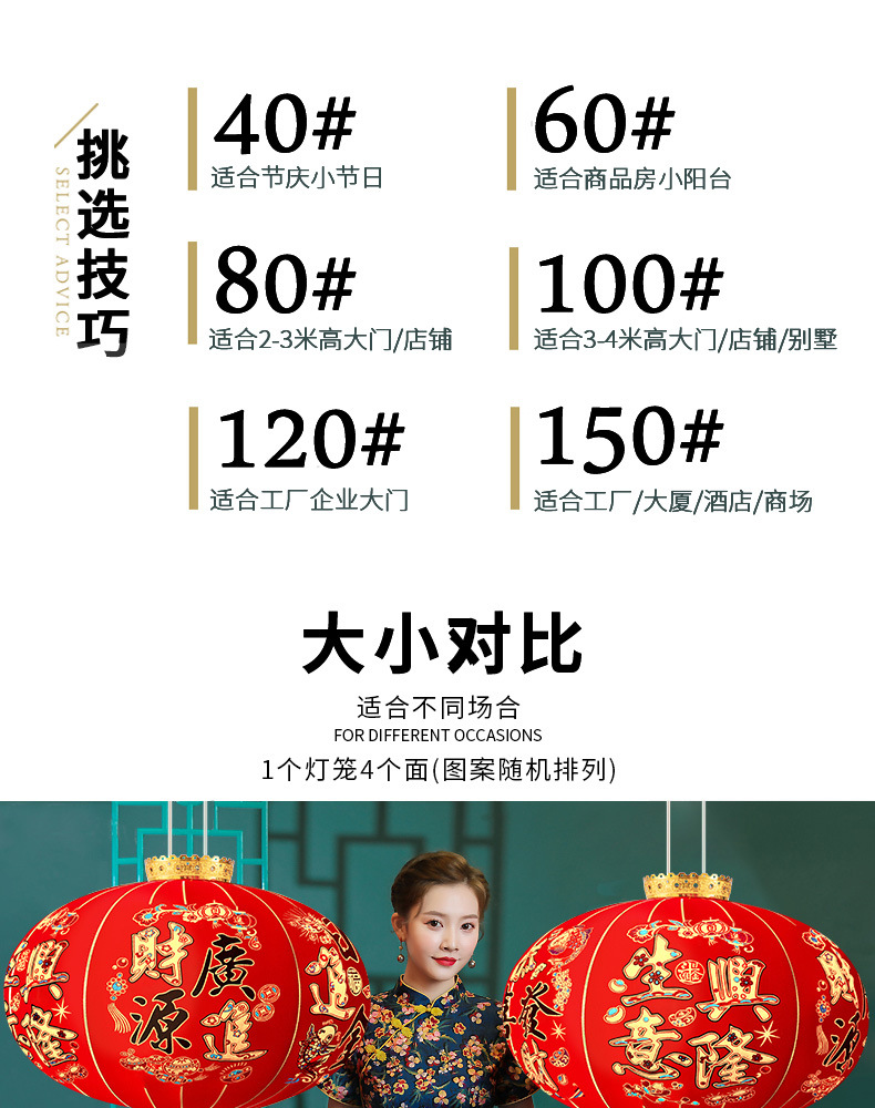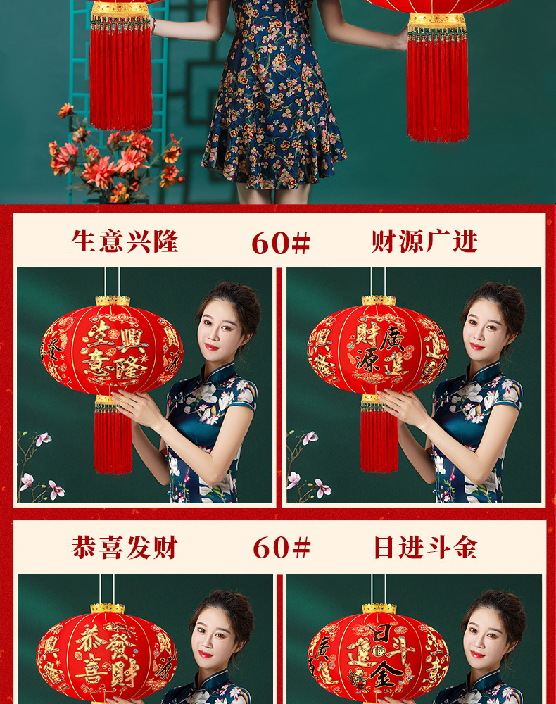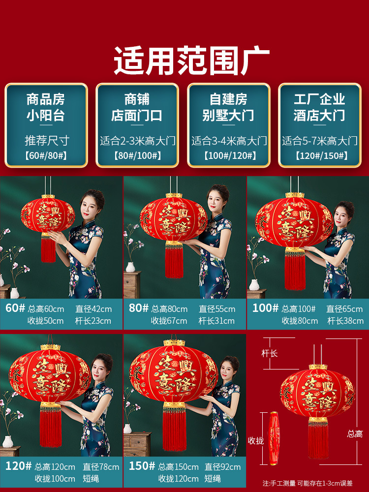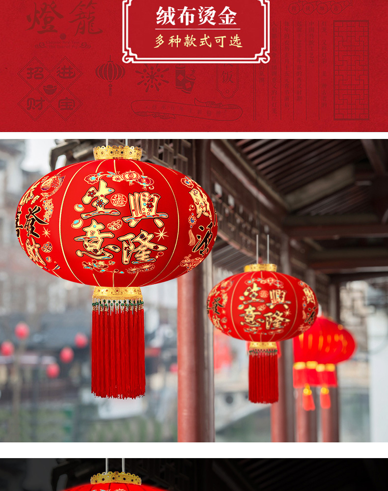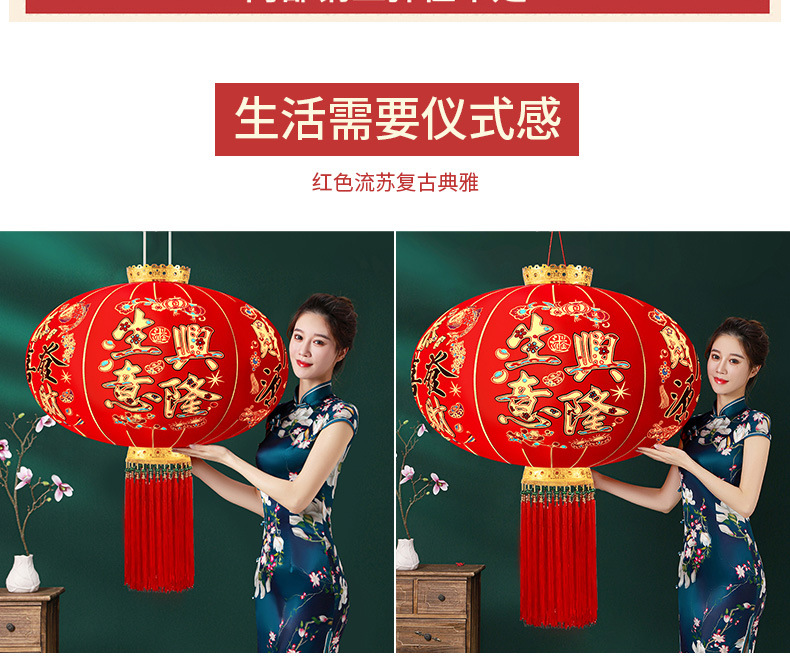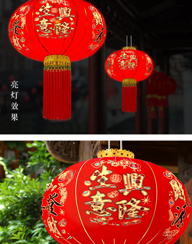 生意兴隆大红灯笼春节过年新年装饰阳台大门户外植绒福字灯笼批发