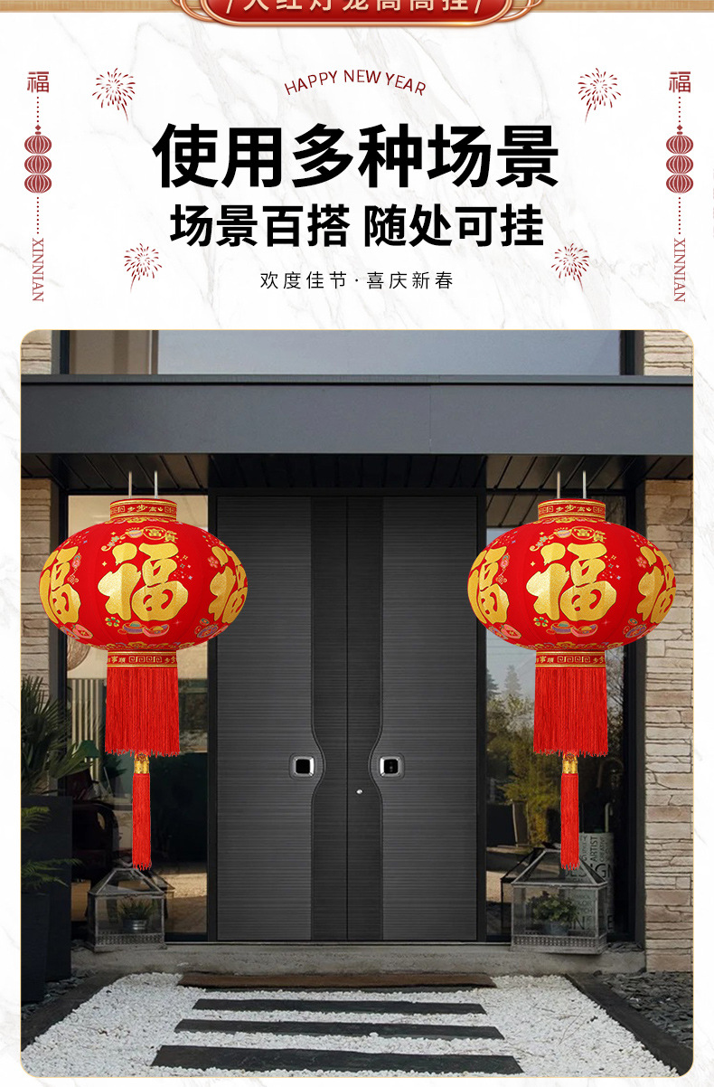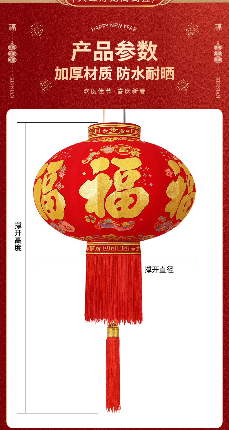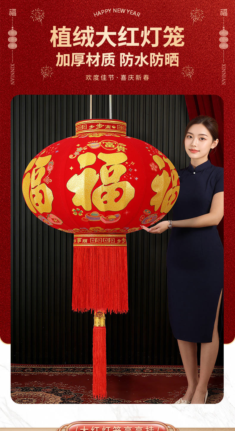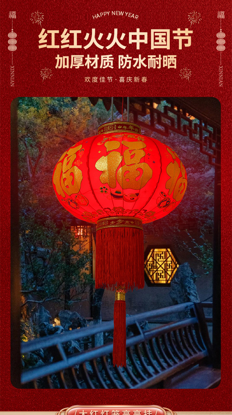 大红满图满版烫金植绒灯笼节日乔迁结婚户外春节新年阳台大门灯笼