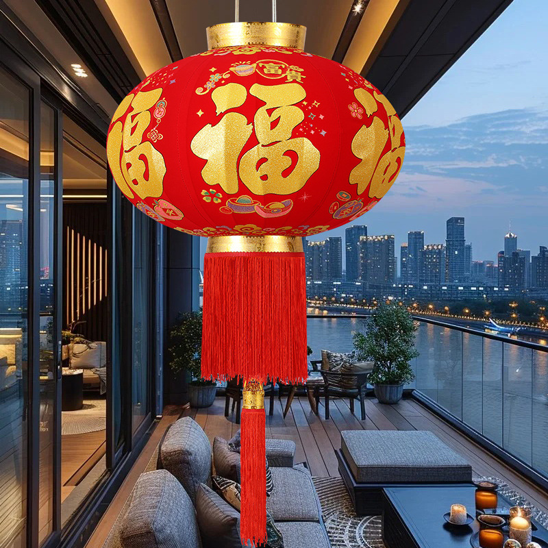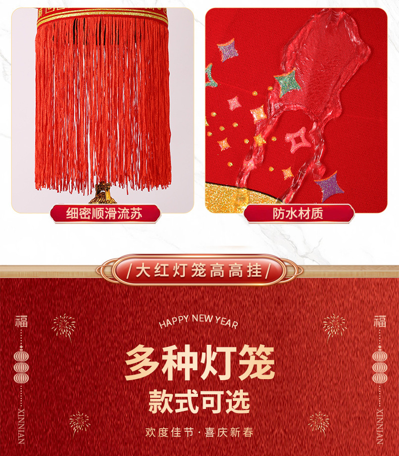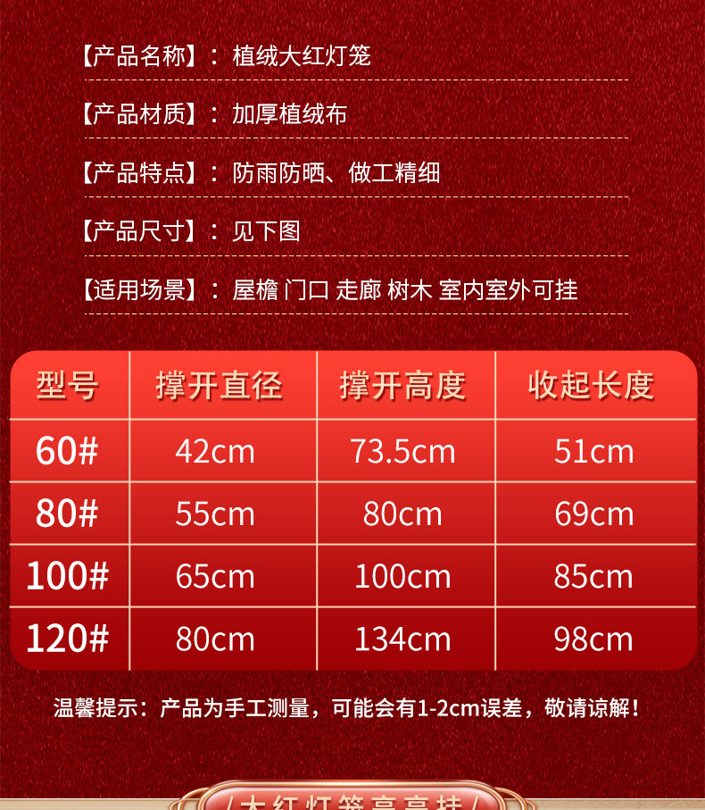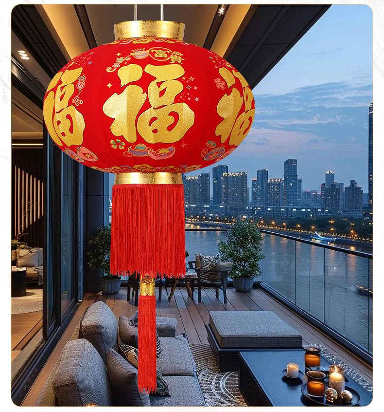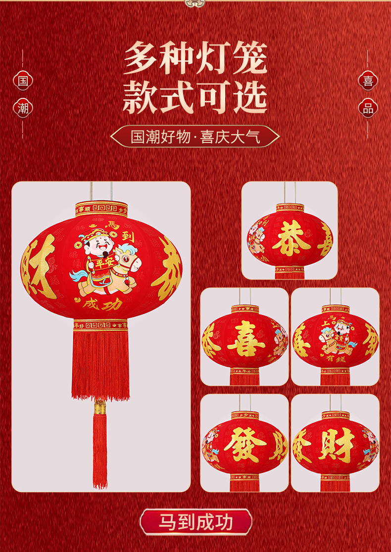 大红满图满版烫金植绒灯笼节日乔迁结婚户外春节新年阳台大门灯笼