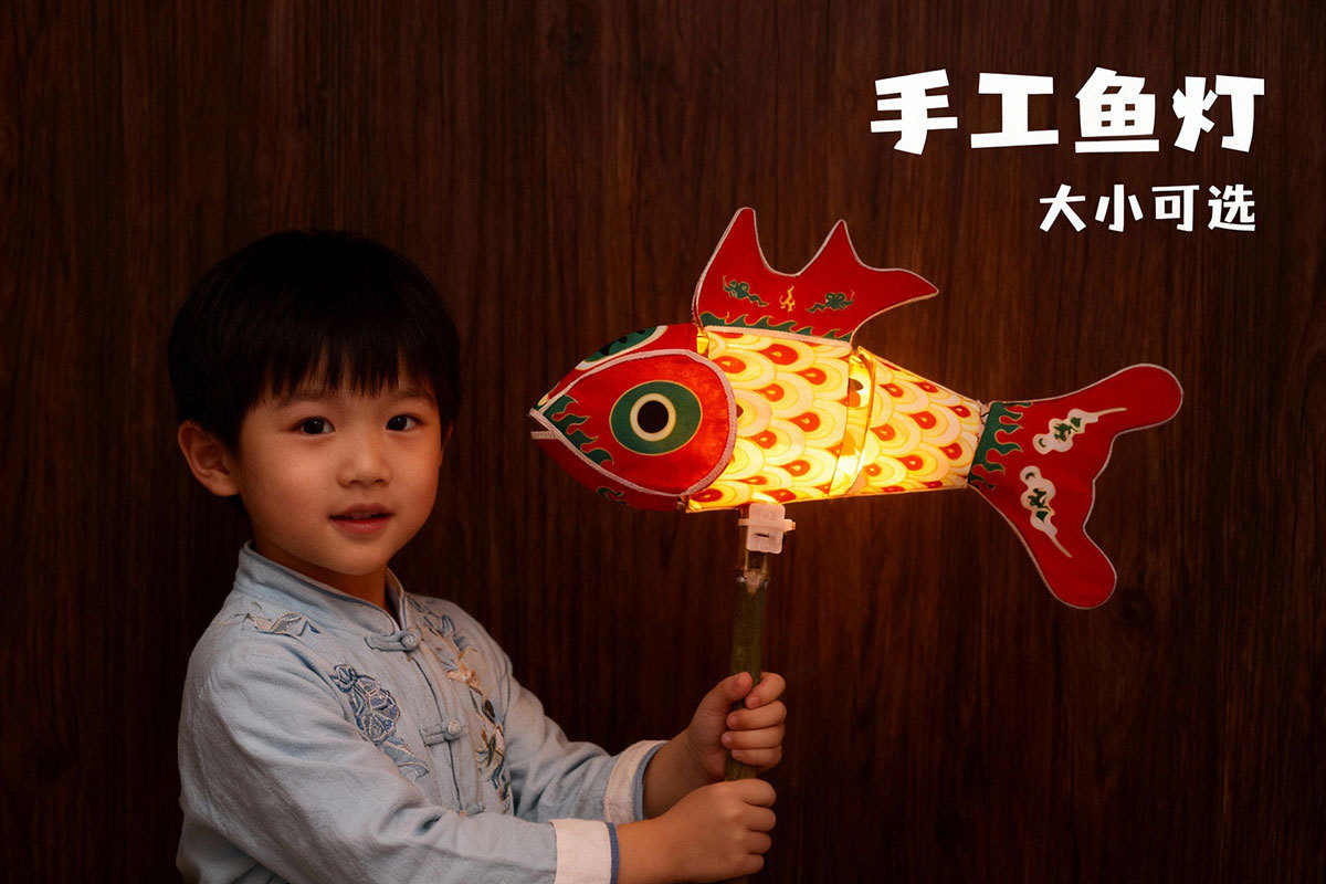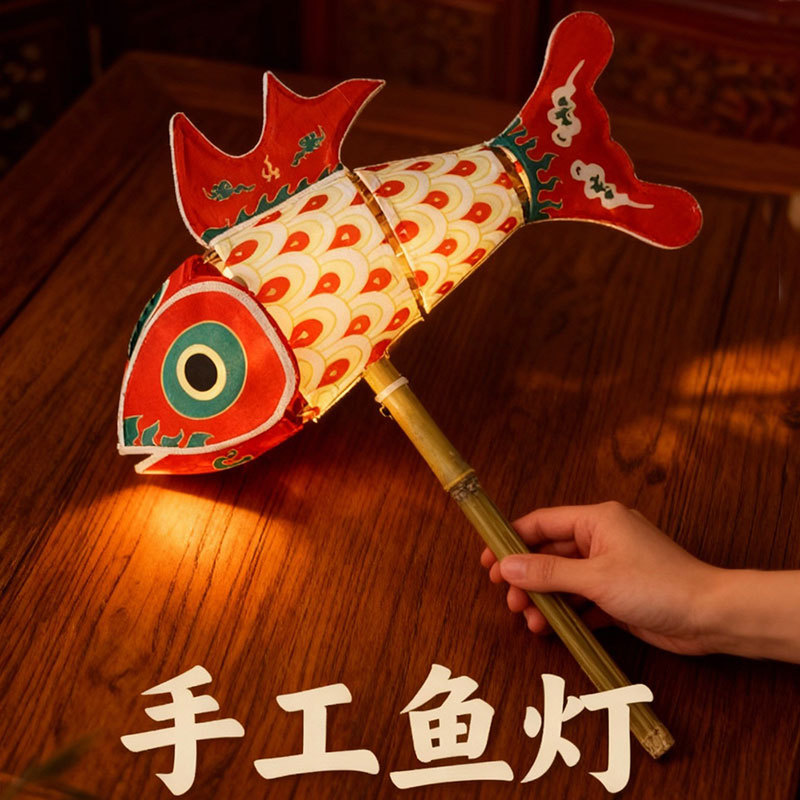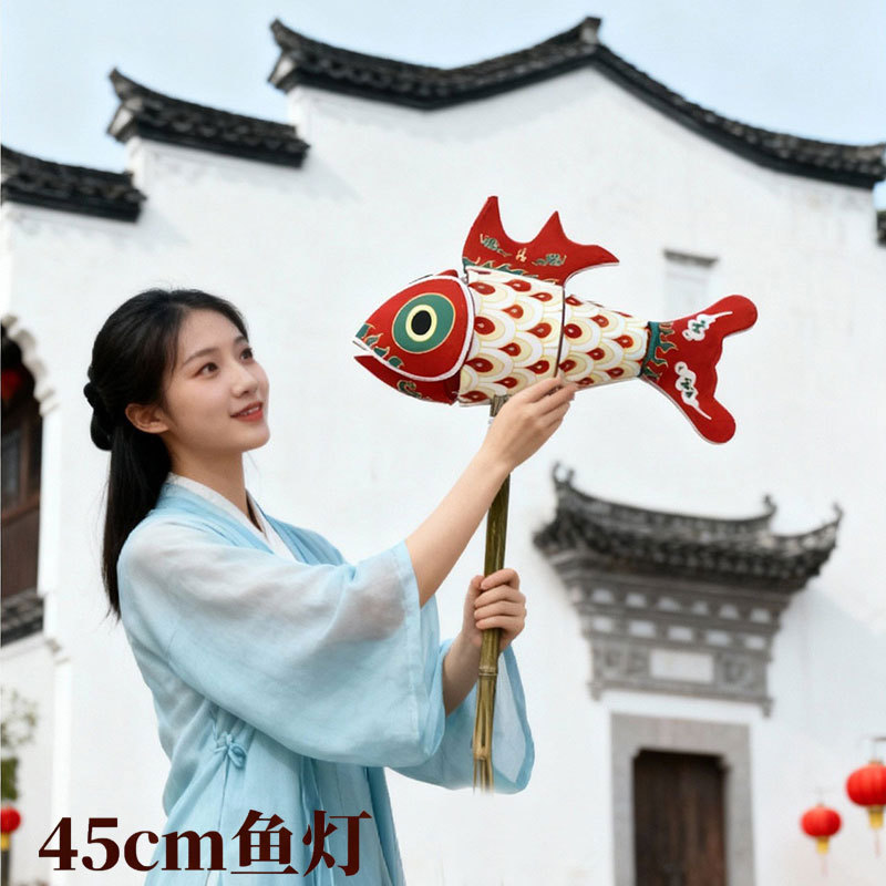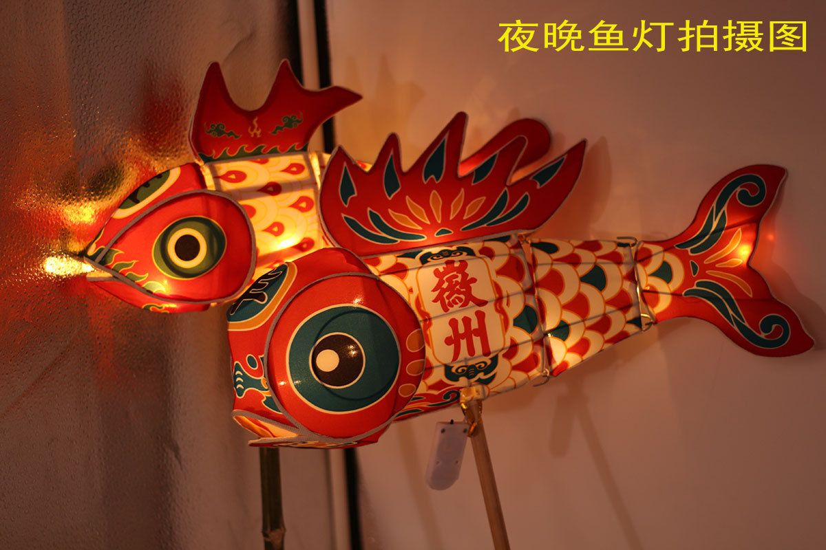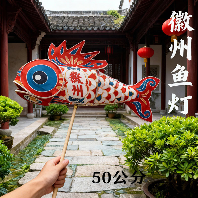 儿童手持发光徽州鱼灯笼非遗手工成品 传统舞龙演出道具节日装饰
