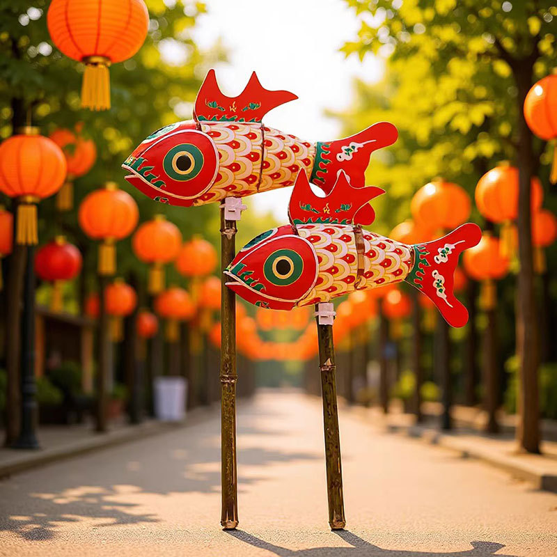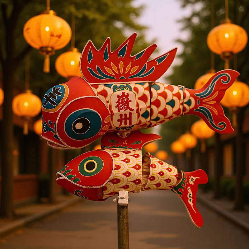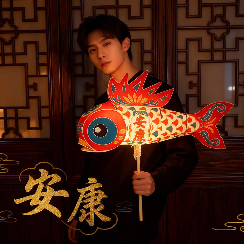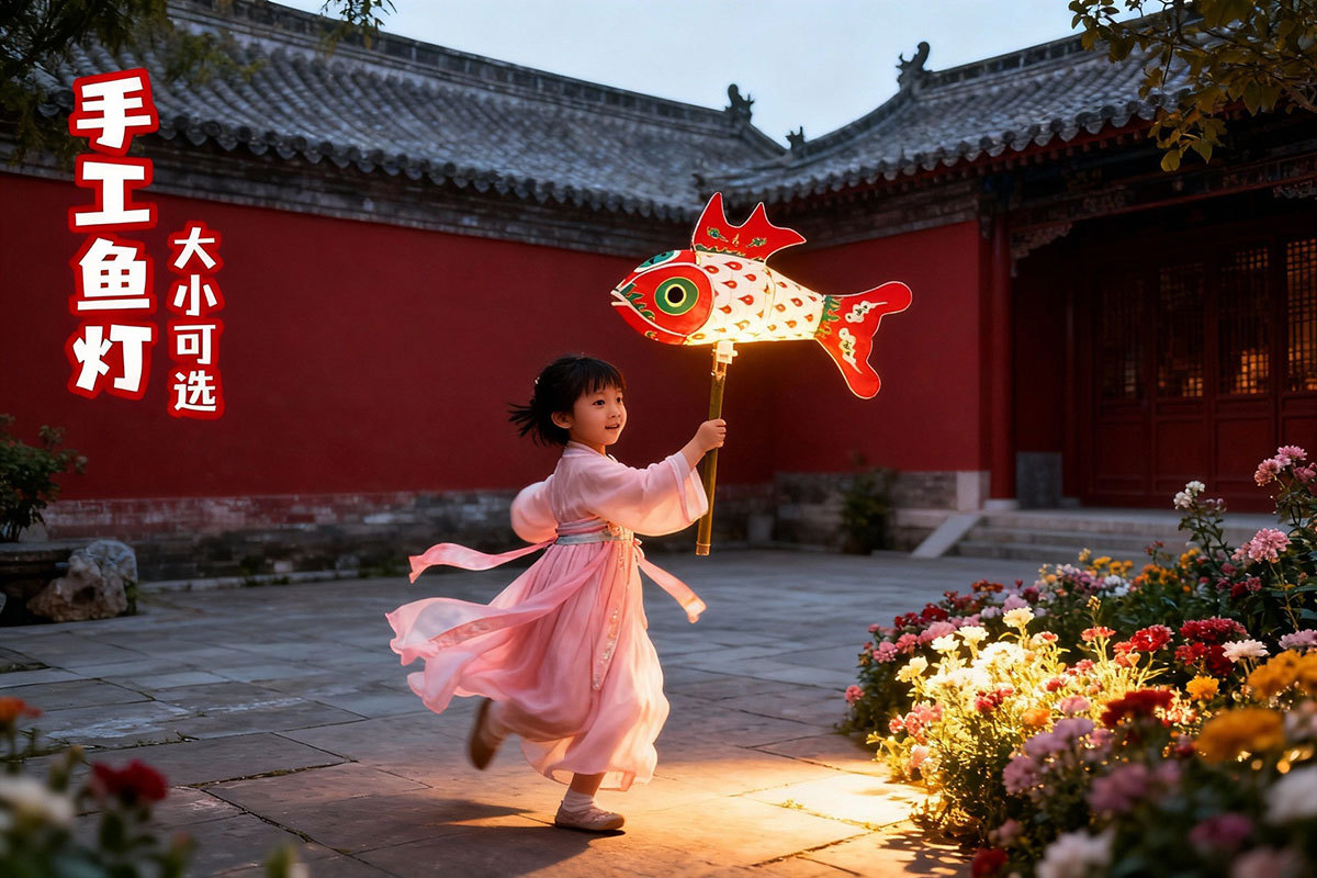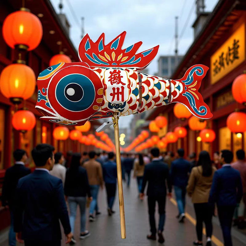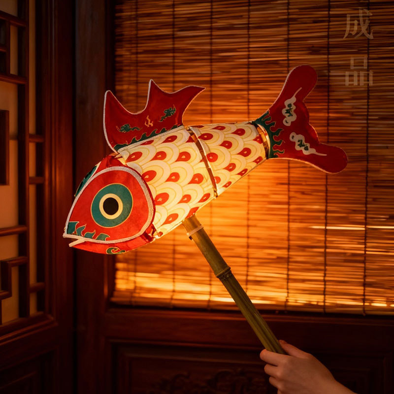 儿童手持发光徽州鱼灯笼非遗手工成品 传统舞龙演出道具节日装饰